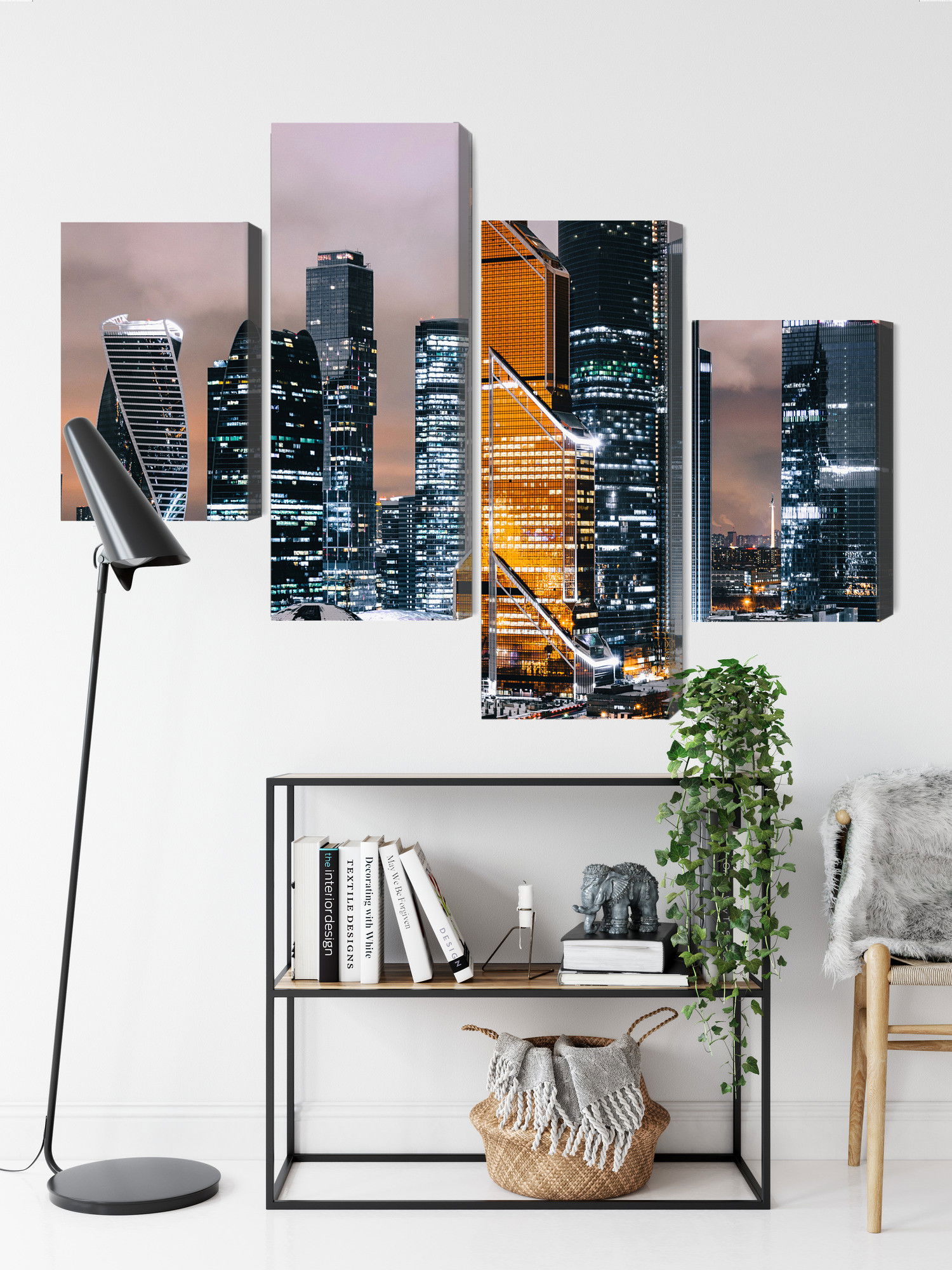 Motivet Panorama of moscow city återges med hög färgprecision och detaljrikedom tack vare HP Latex-teknologi. Trycket sker med vattenbaserade, luktfria och GREENGUARD Gold-certifierade bläck som ger en upplösning på upp till 300 DPI. Färgerna är UV-beständiga och behåller sin styrka även i ljusa rum, vilket gör tavlan lämplig för både hem- och offentliga miljöer.