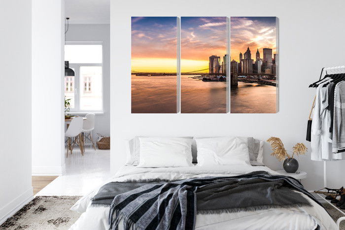 Varje tavla monteras på en massiv fururam. Format upp till 70×50 cm har en ram på 15 mm, medan format från 90×60 cm och uppåt har en ram på 20 mm. Den exakta dukspänningen gör att tavlan håller sin form över tid. Motivet Panorama of the brooklyn trycks runt hela ramen vilket ger ett stilrent galleriuttryck där tavlan är lika vacker från sidan som framifrån. Kombinationen av rak dukspänning, rena linjer och korrekt tryck ger en professionell finish.