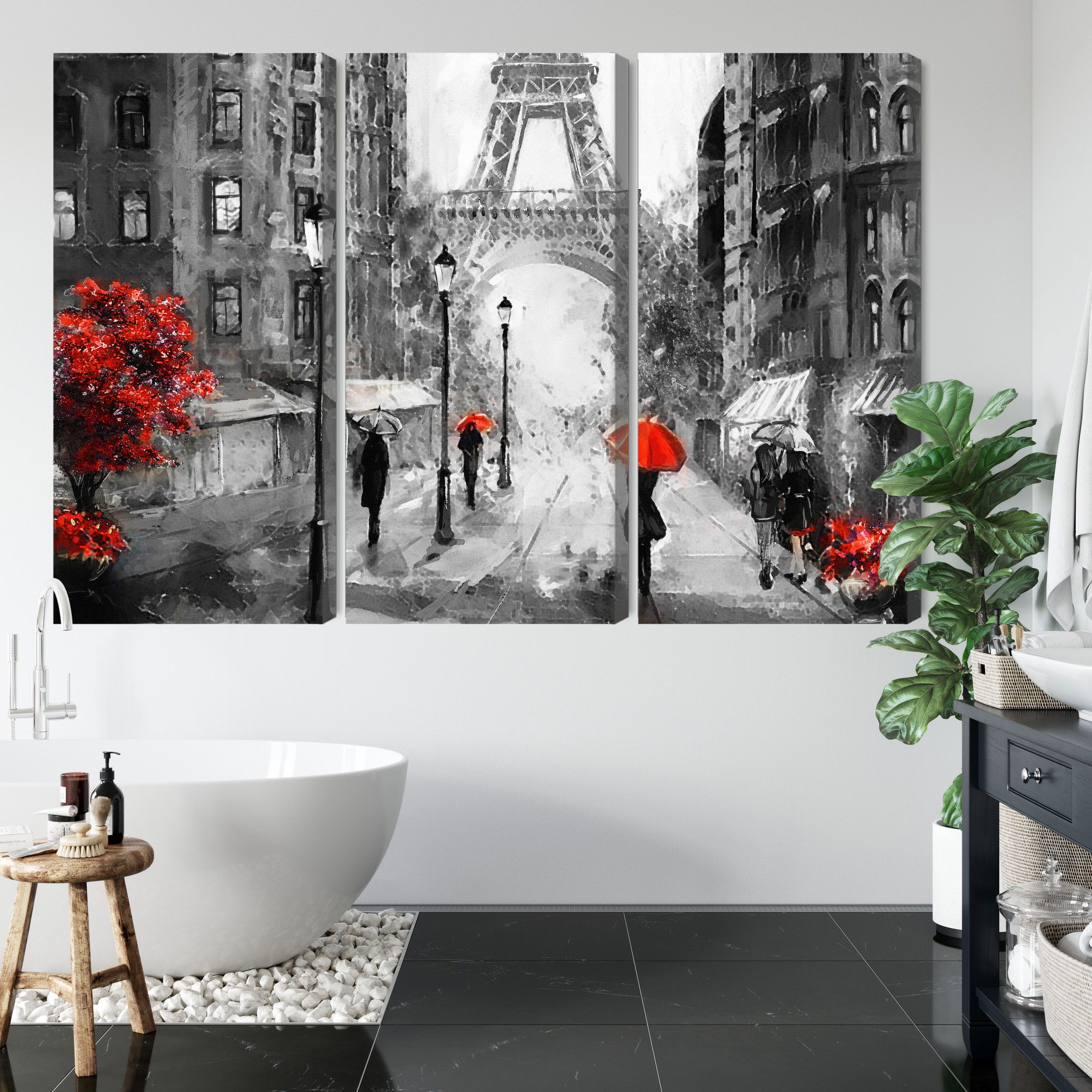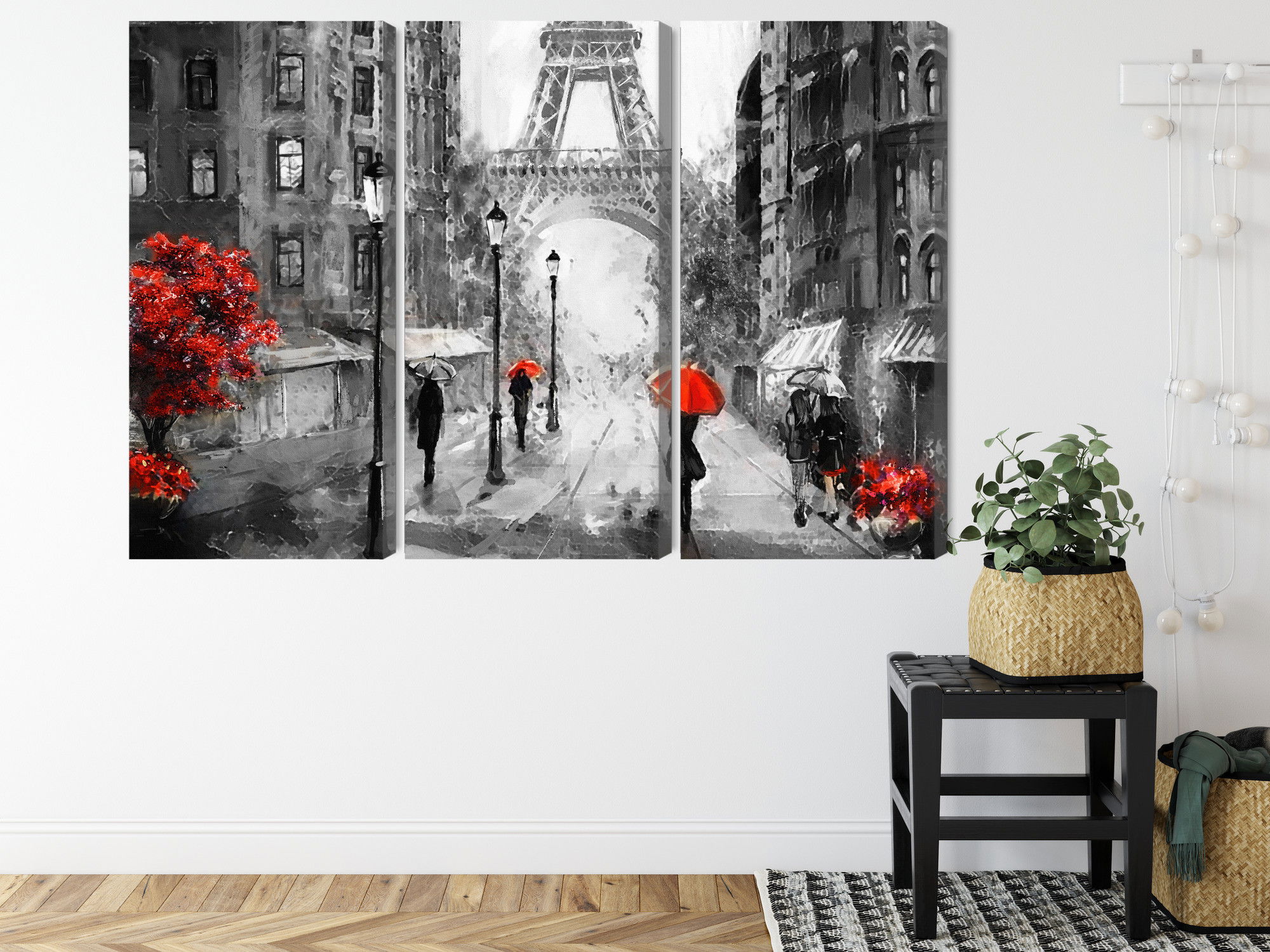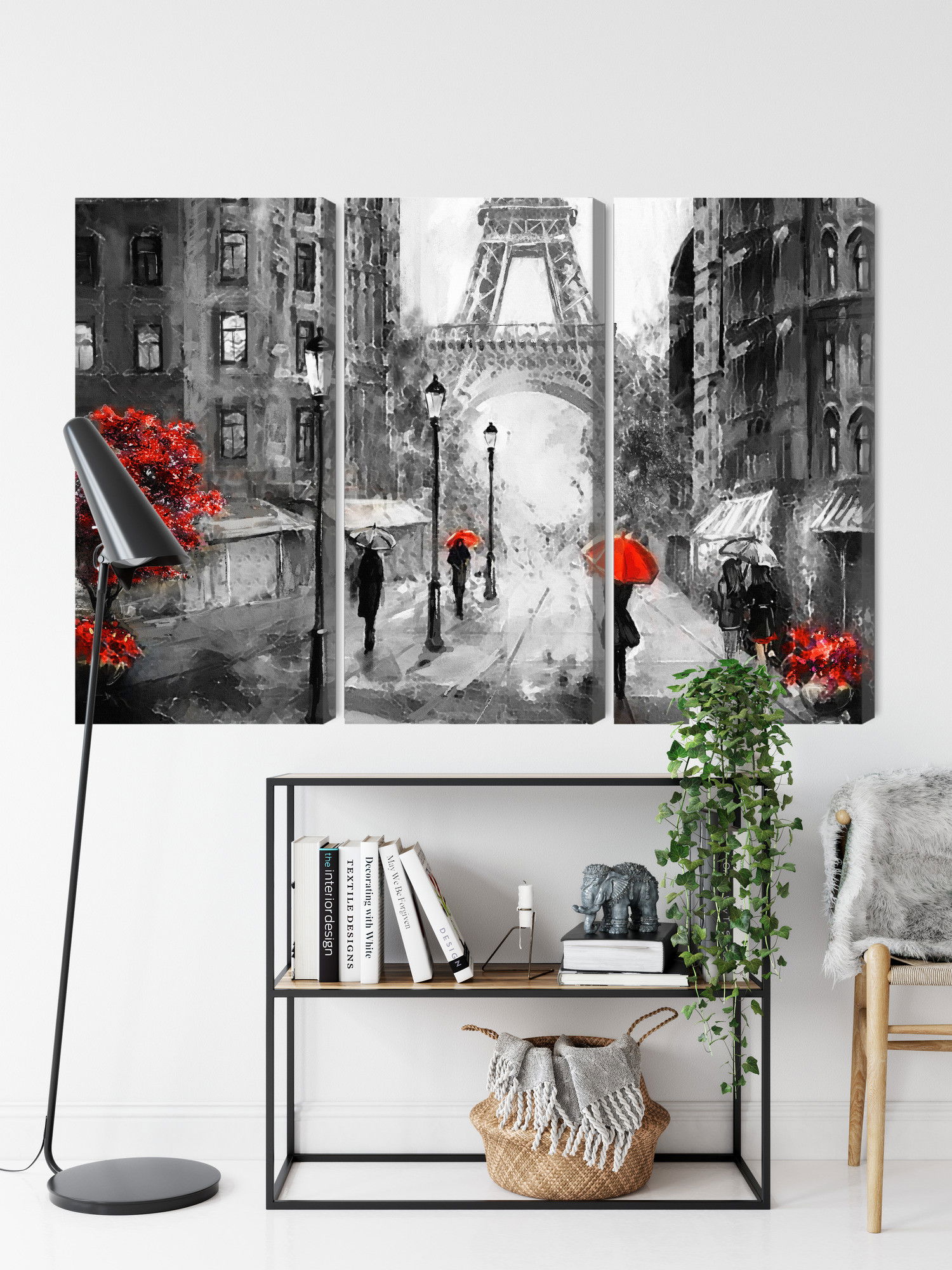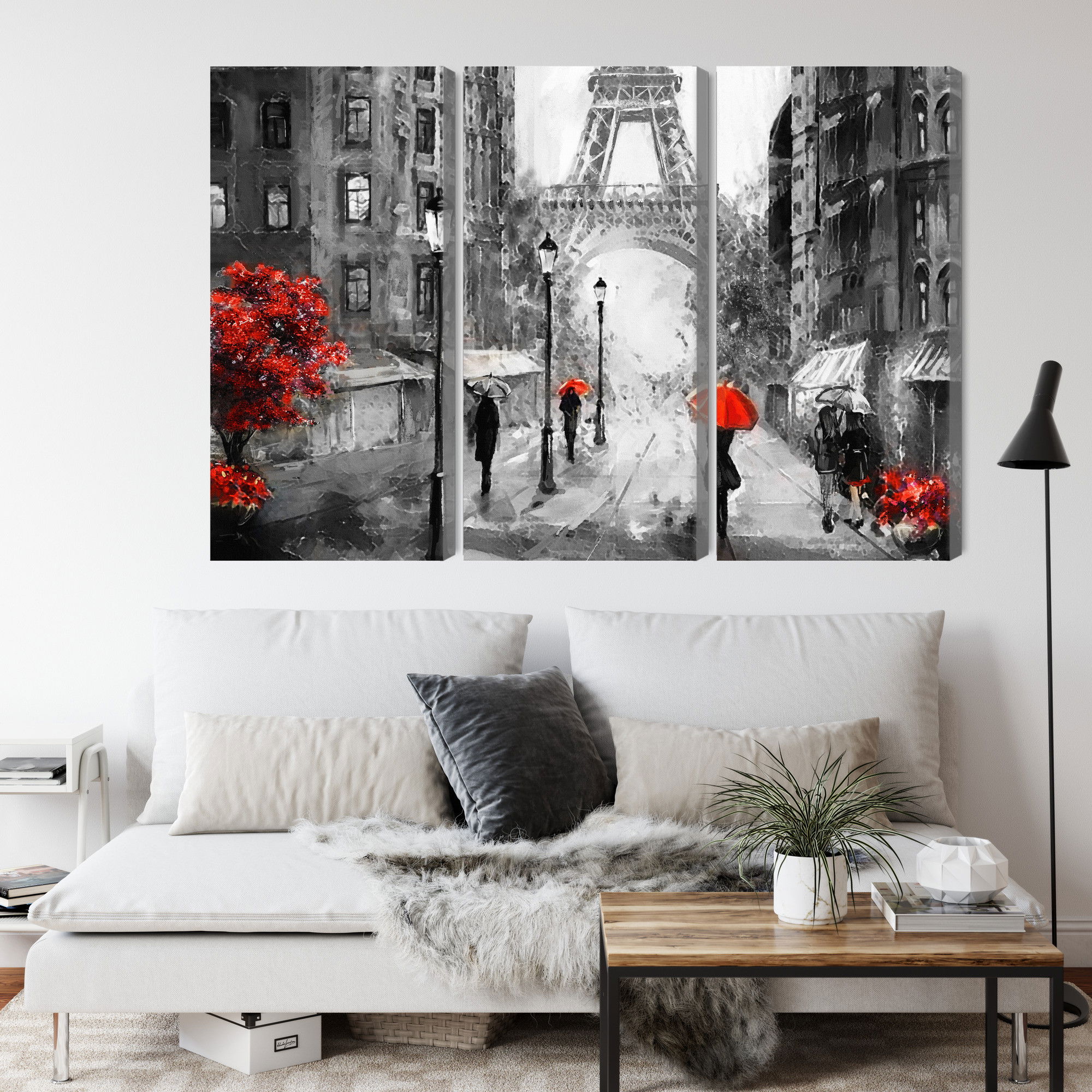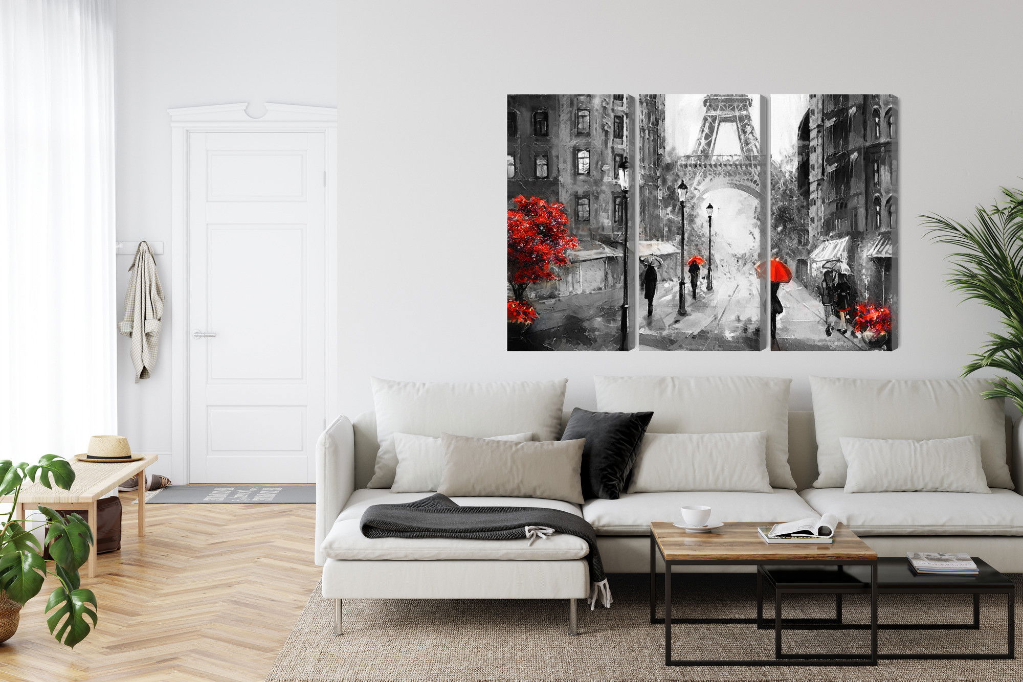 Ljuddämpande tavla – People with red umbrellas för lugnare rum och mjukare akustik
