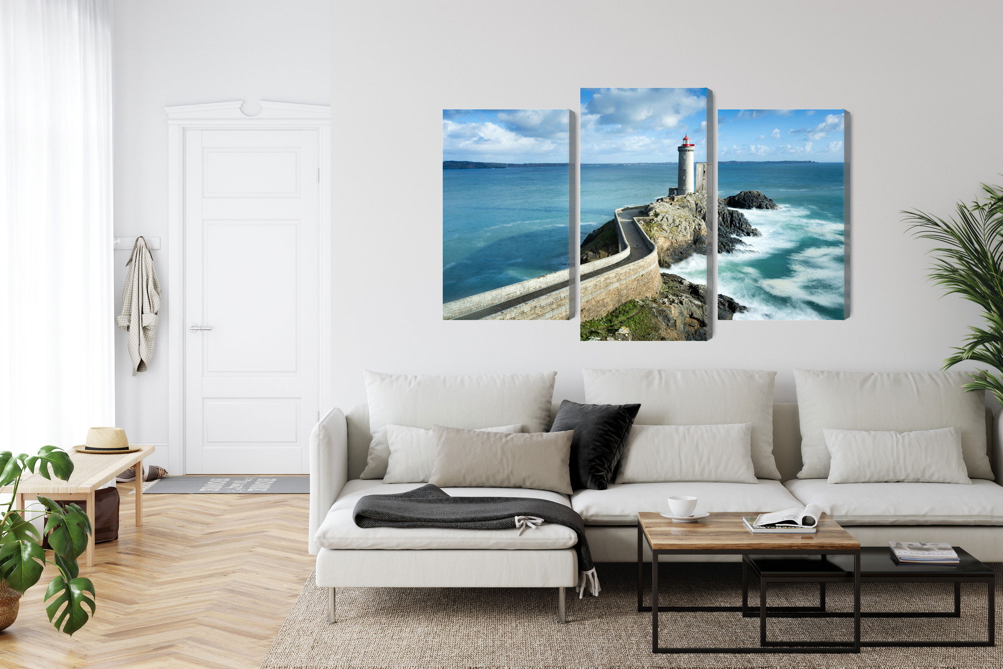 Varje tavla monteras på en massiv fururam. Format upp till 70×50 cm har en ram på 15 mm, medan format från 90×60 cm och uppåt har en ram på 20 mm. Den exakta dukspänningen gör att tavlan håller sin form över tid. Motivet Petit minou lighthouse trycks runt hela ramen vilket ger ett stilrent galleriuttryck där tavlan är lika vacker från sidan som framifrån. Kombinationen av rak dukspänning, rena linjer och korrekt tryck ger en professionell finish.