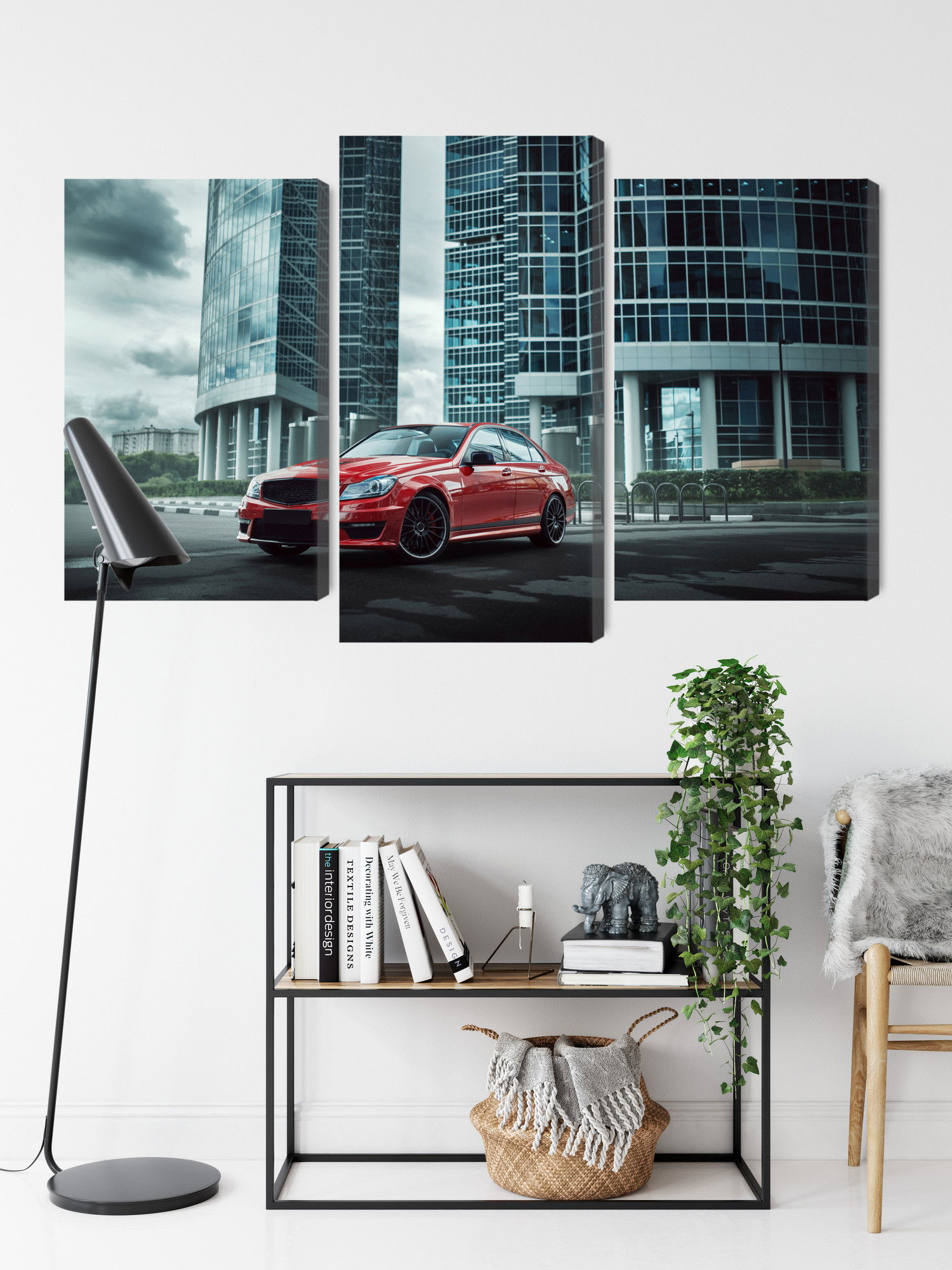 Ljuddämpande tavla – Red car on a background för lugnare rum och mjukare akustik