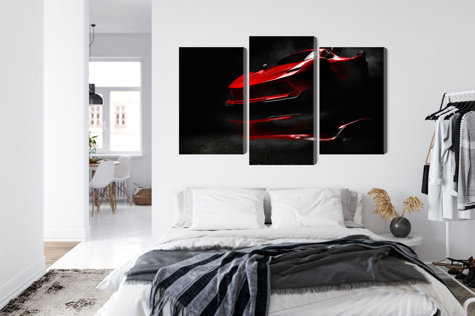 Ljuddämpande tavla – Red sports car 3d för lugnare rum och mjukare akustik