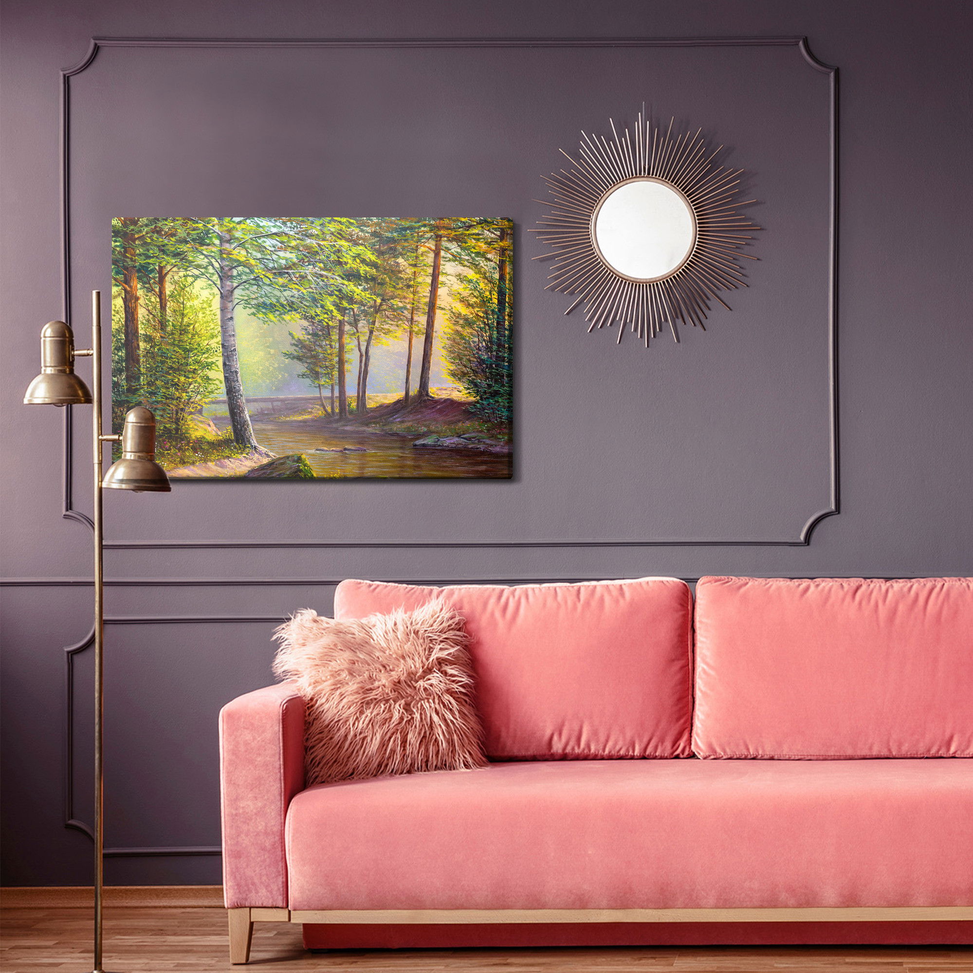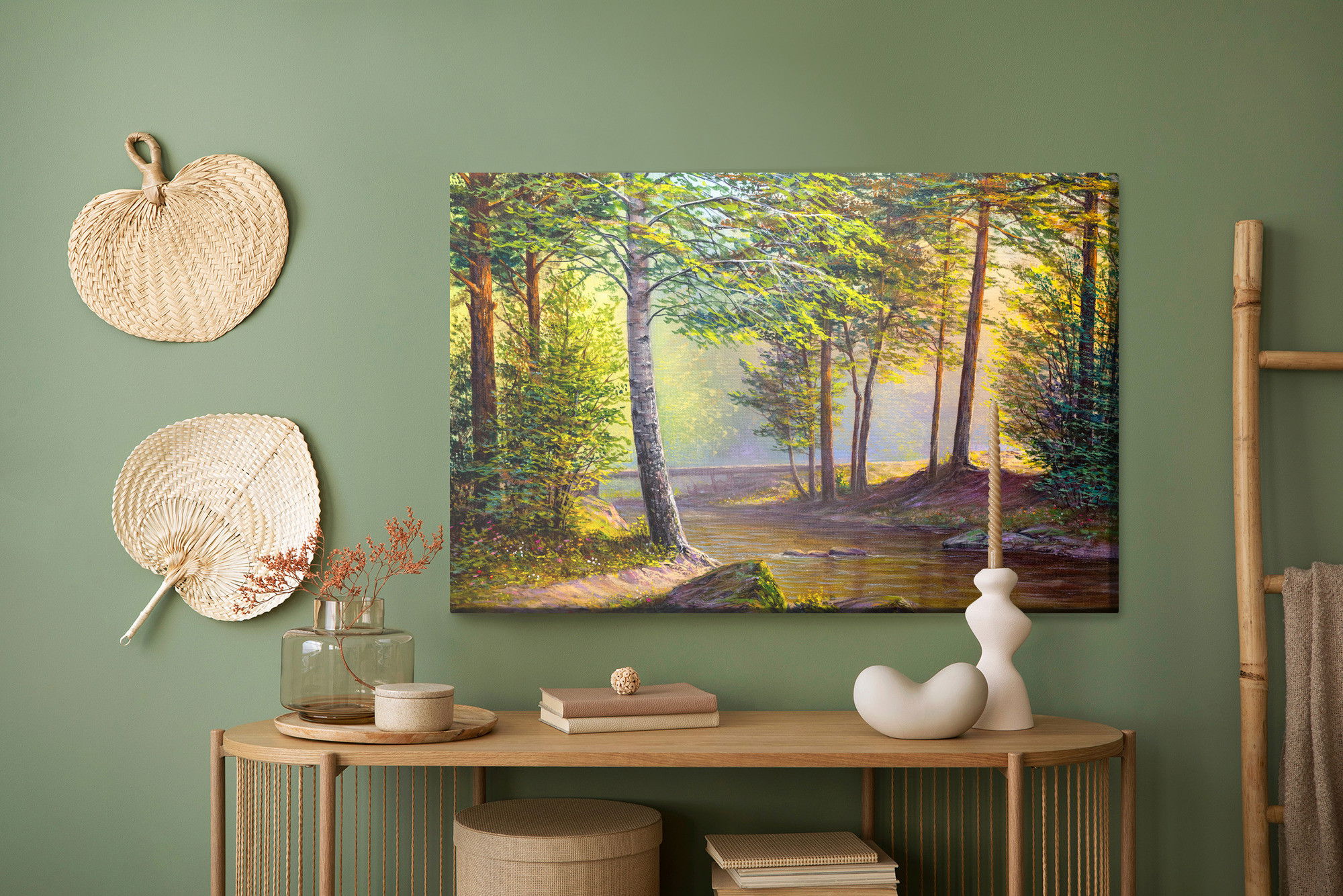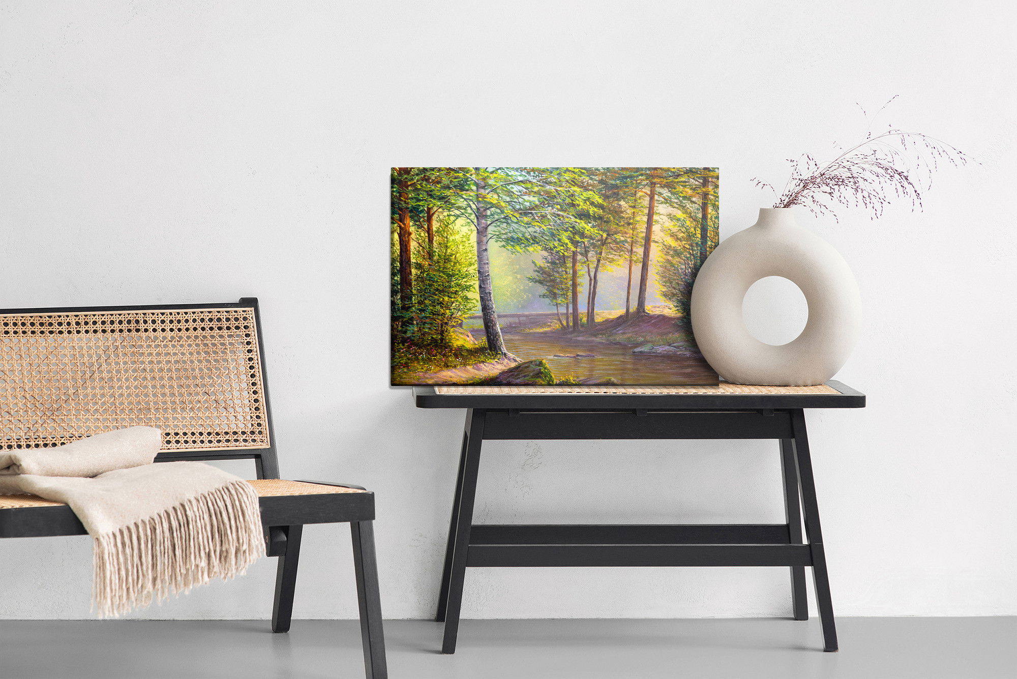 Ljuddämpande tavla – River in the summer forest för lugnare rum och mjukare akustik