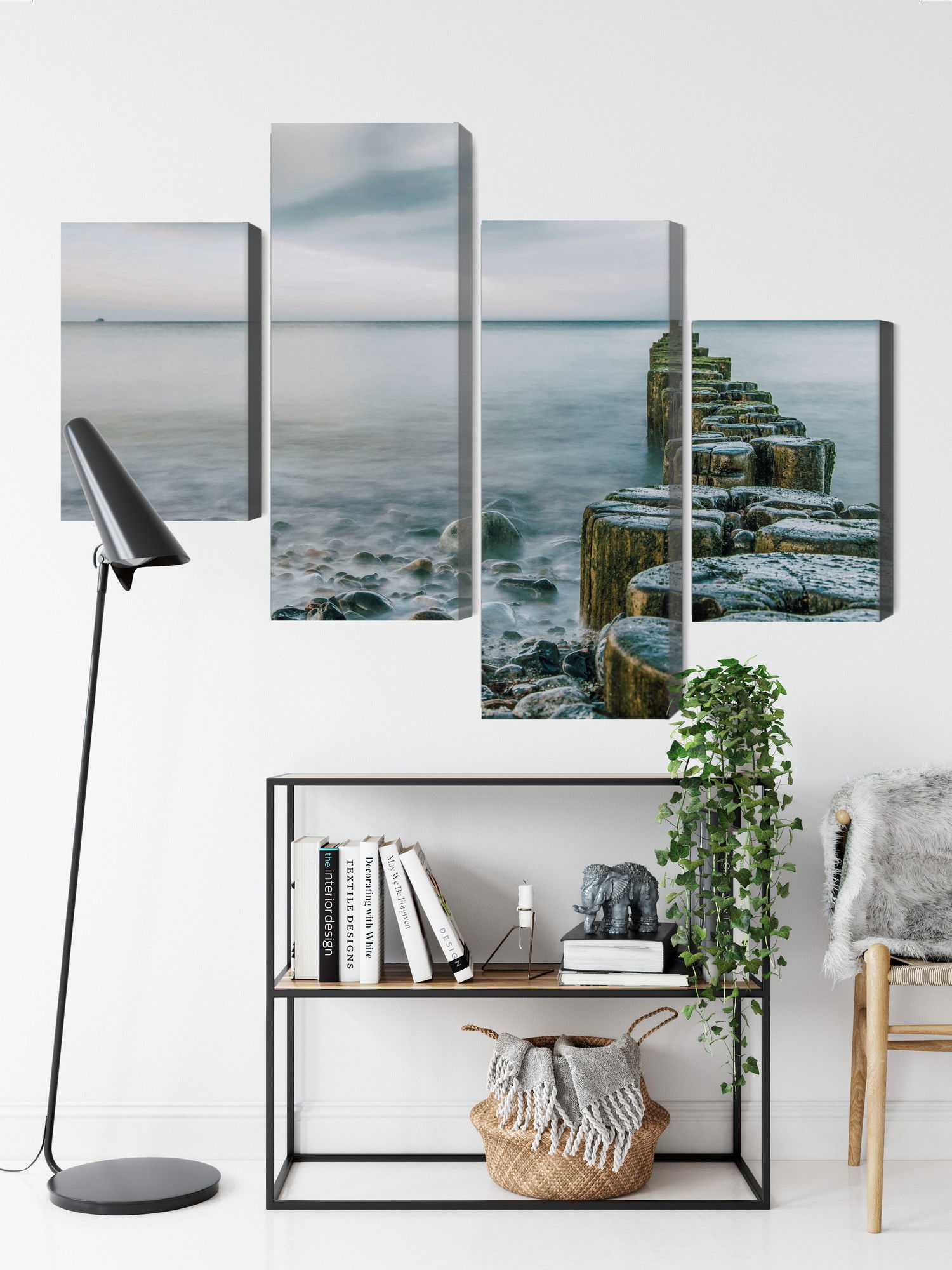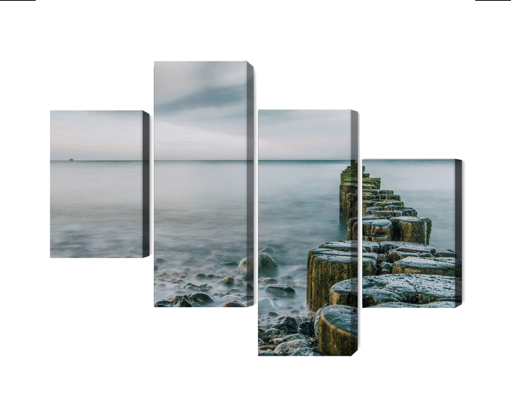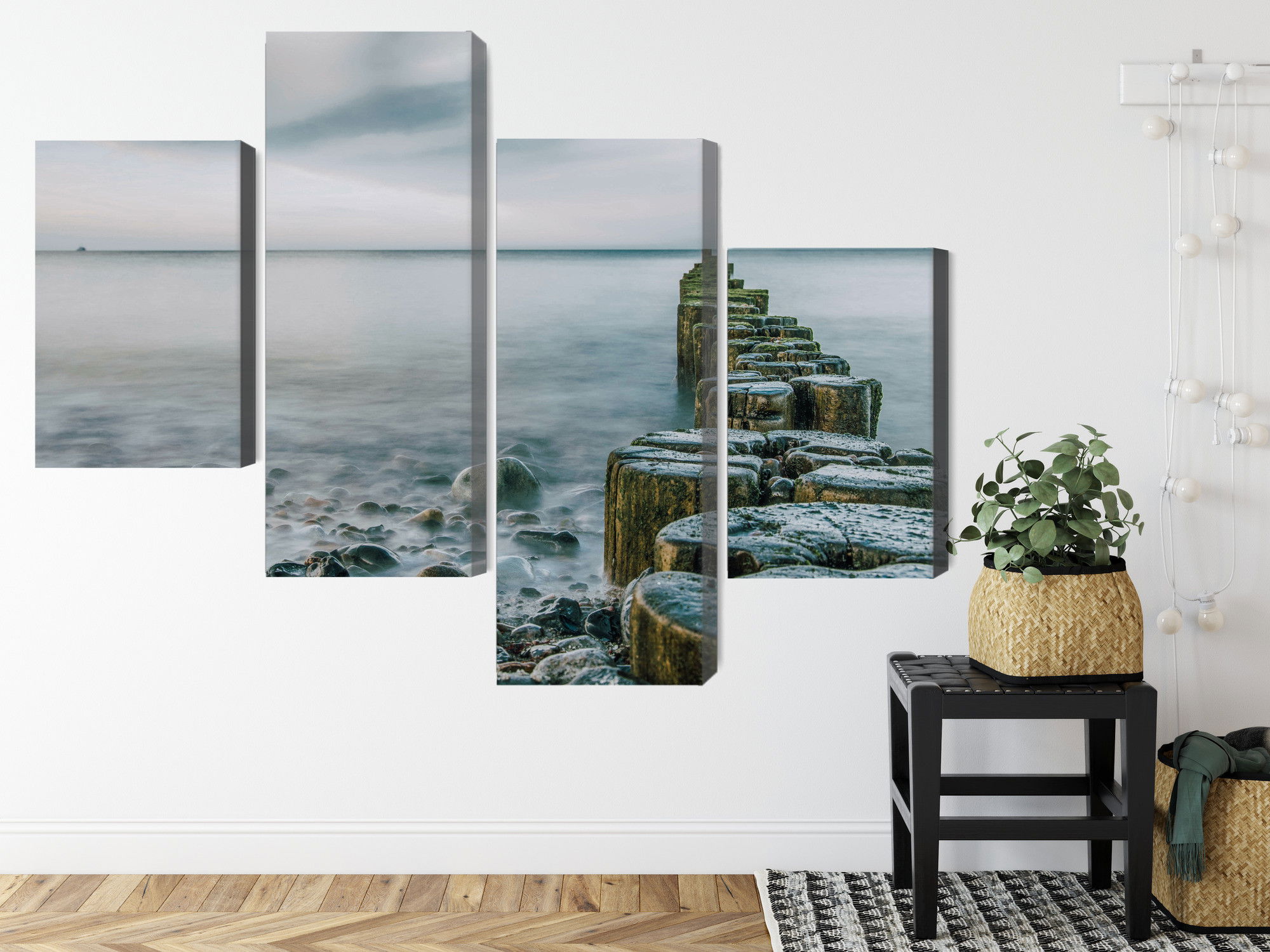 Ljuddämpande tavla – Rocky beach and 3d wooden för lugnare rum och mjukare akustik