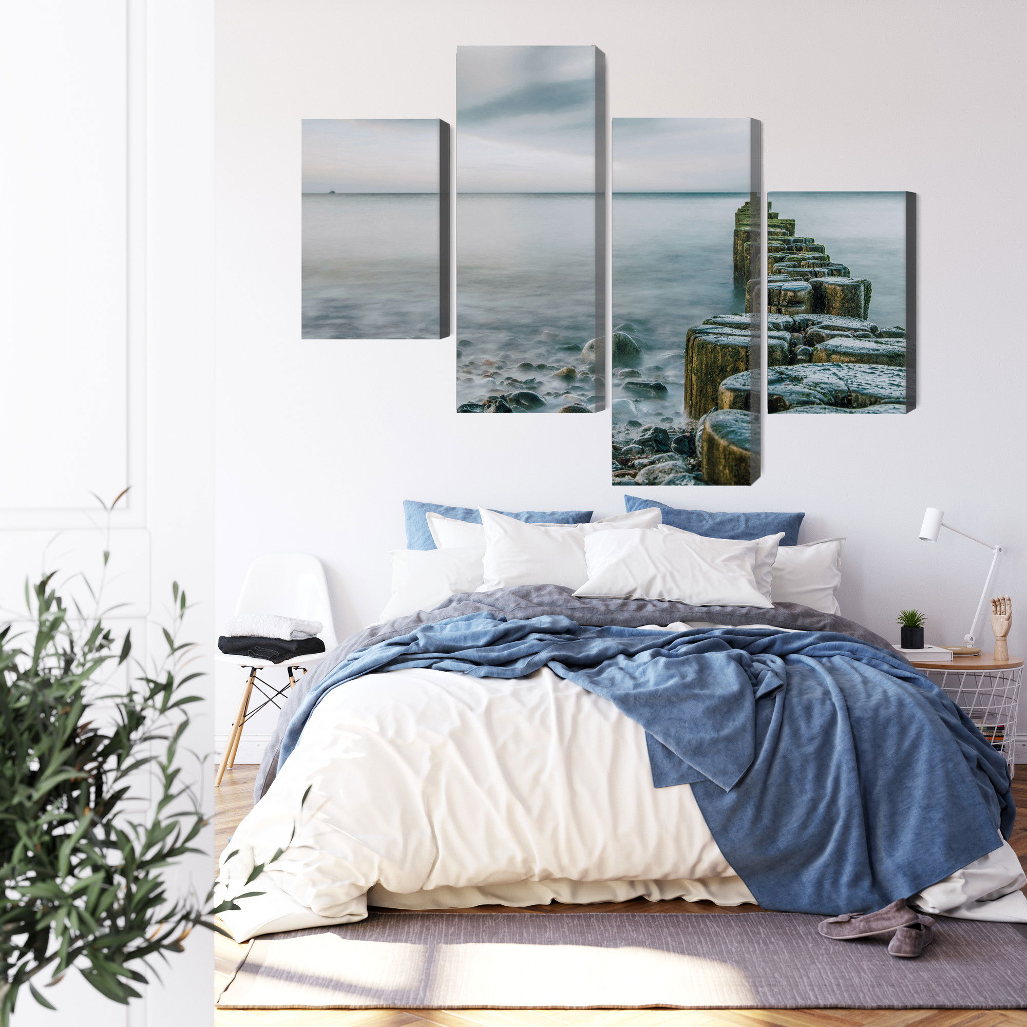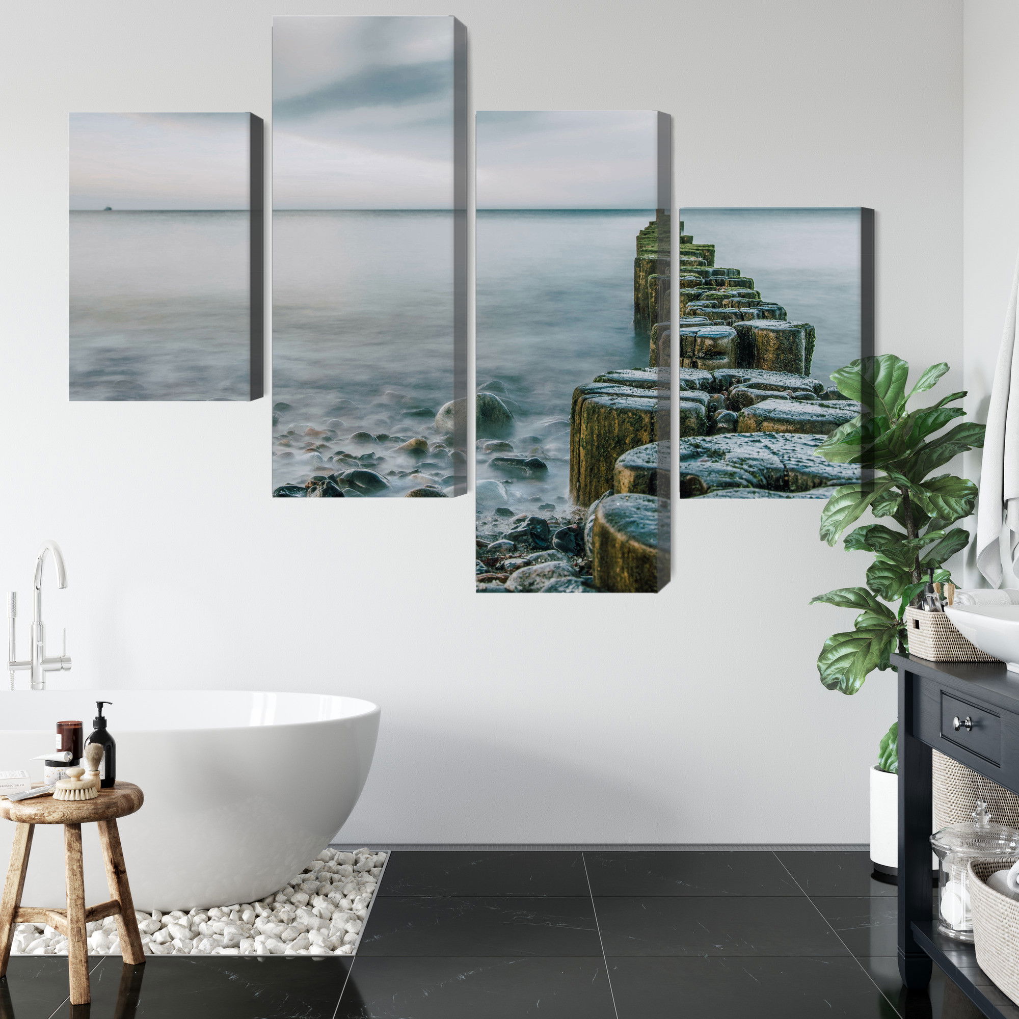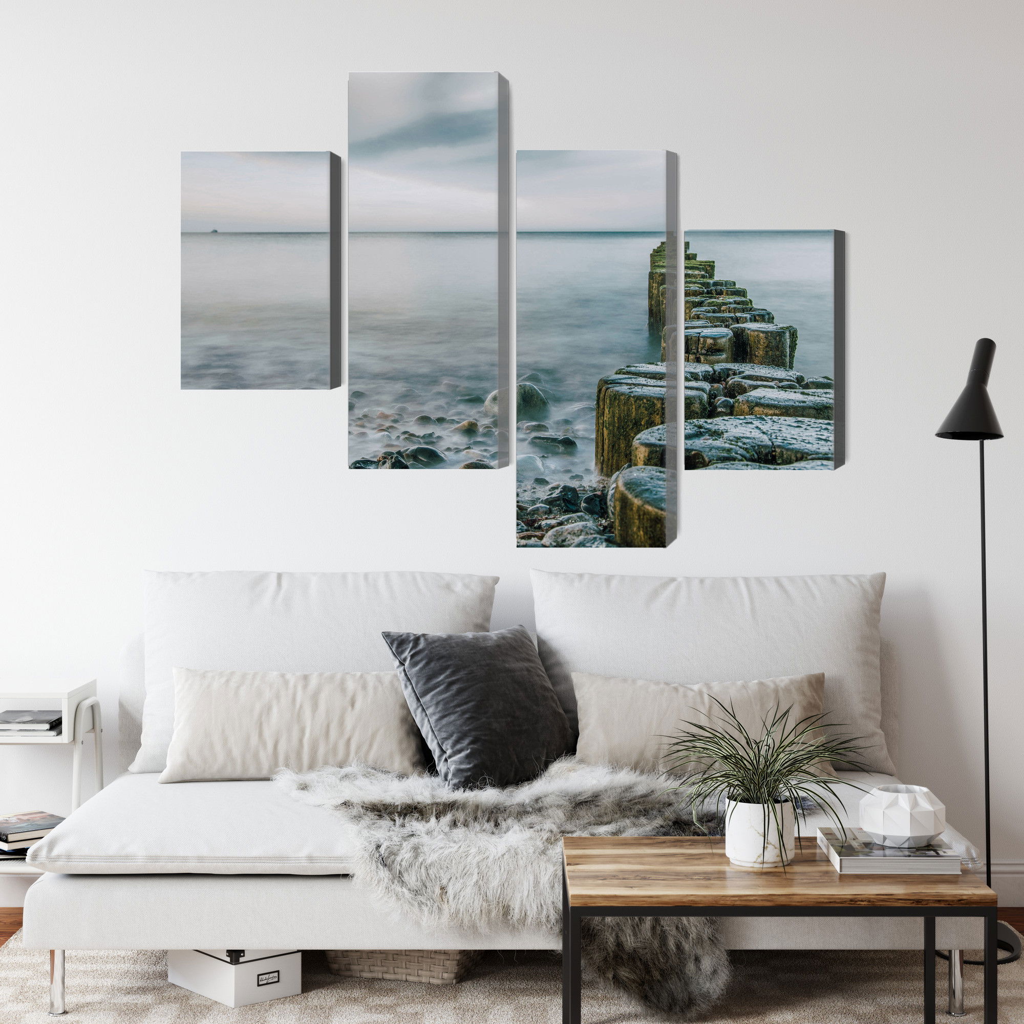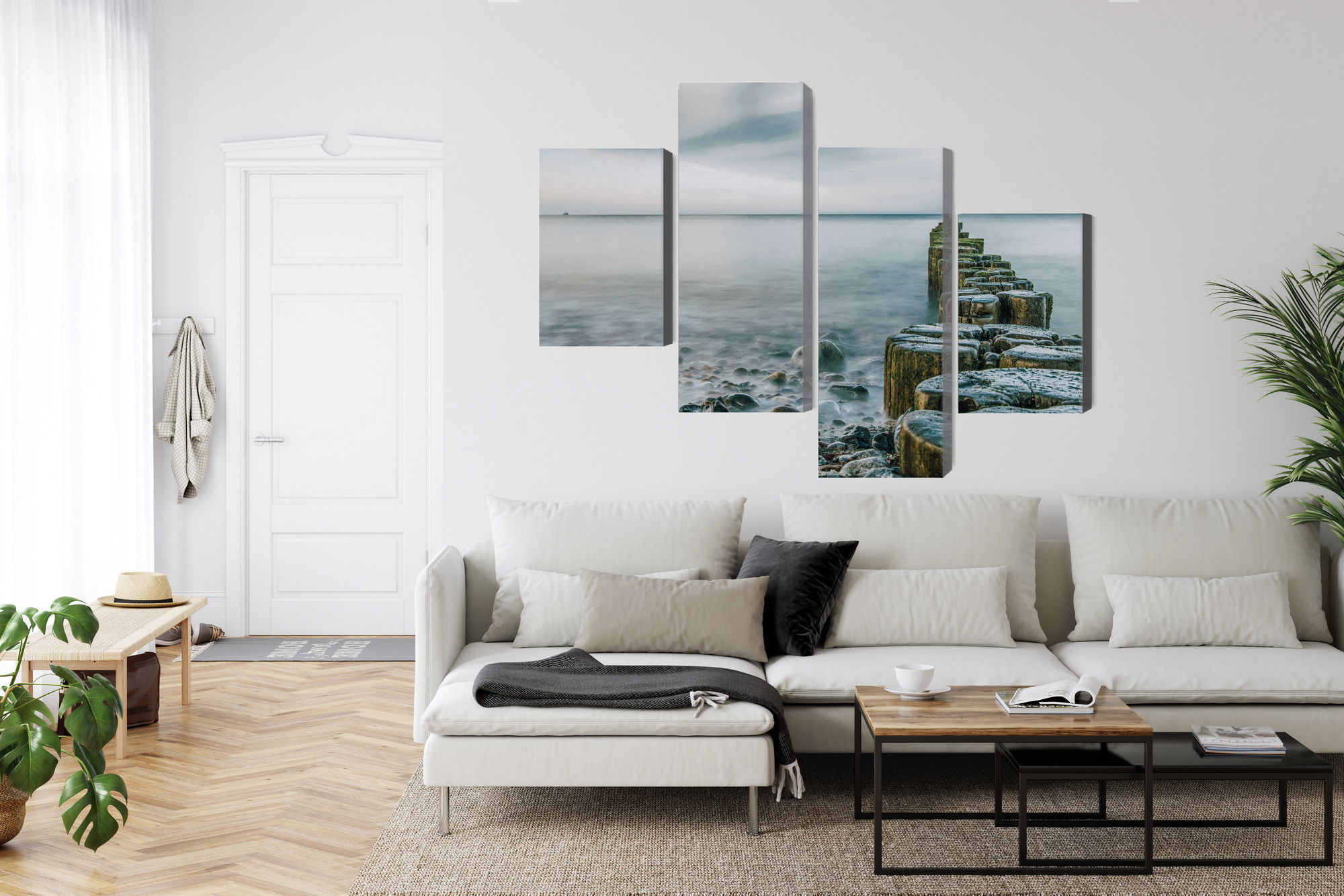 Ljuddämpande tavla – Rocky beach and 3d wooden för lugnare rum och mjukare akustik