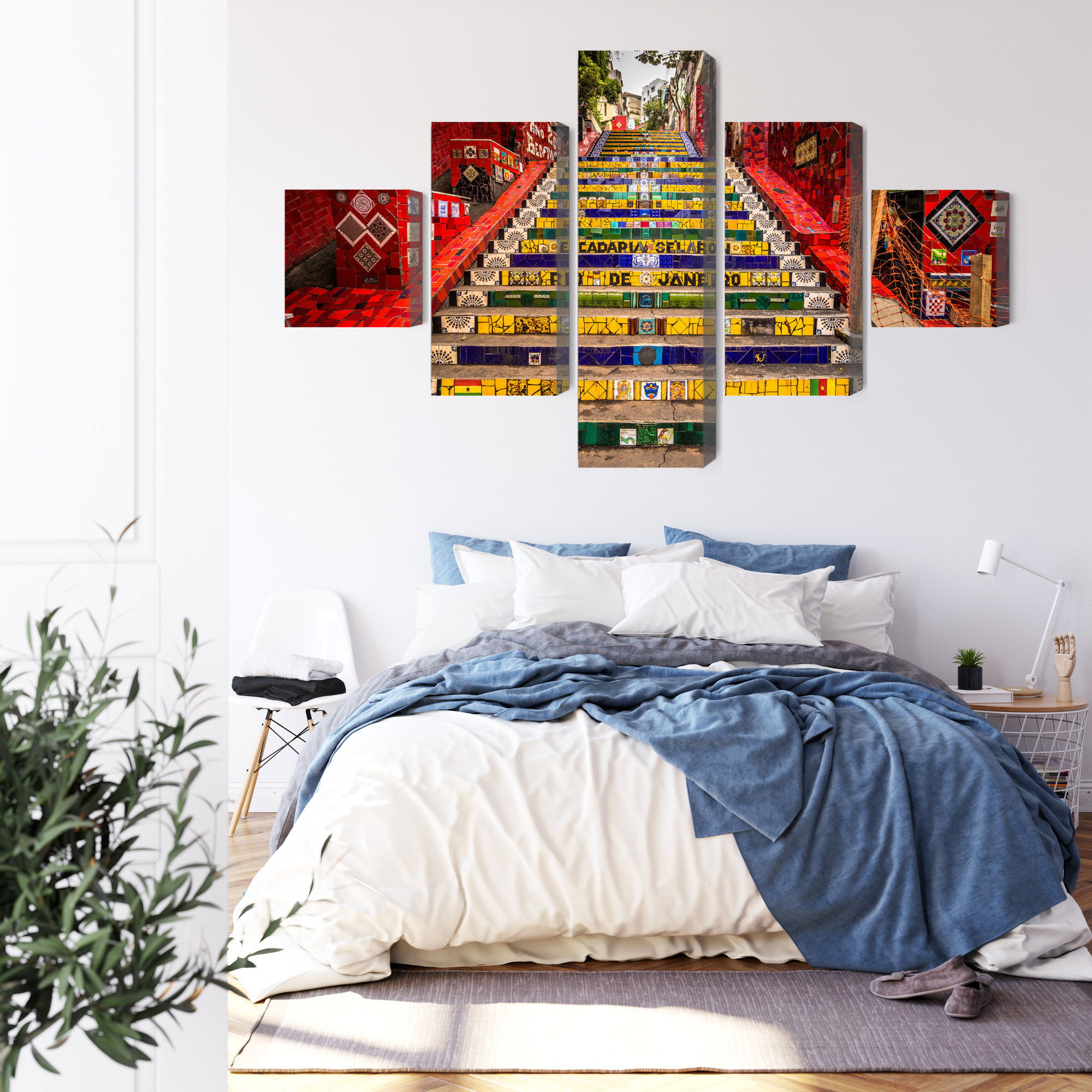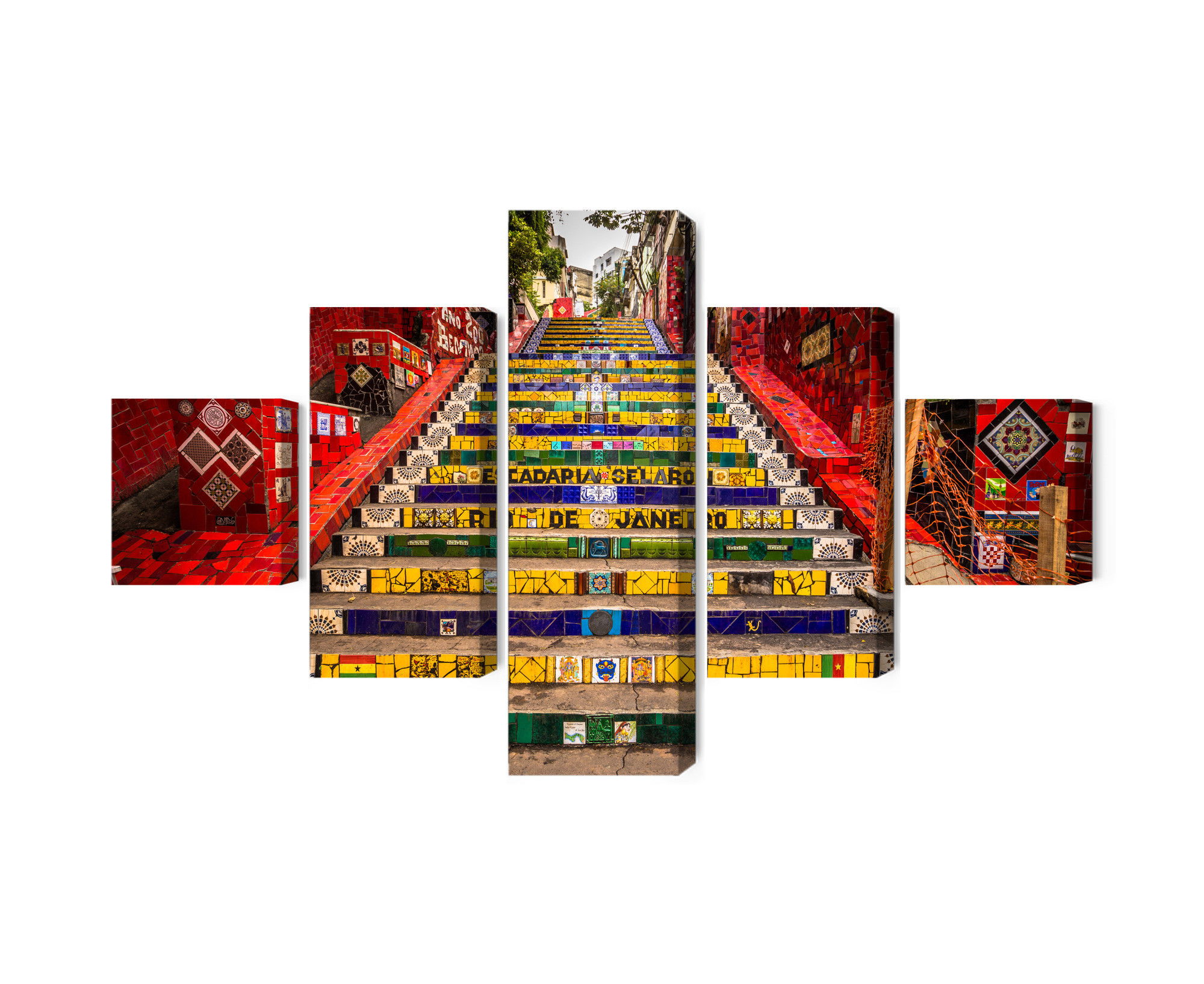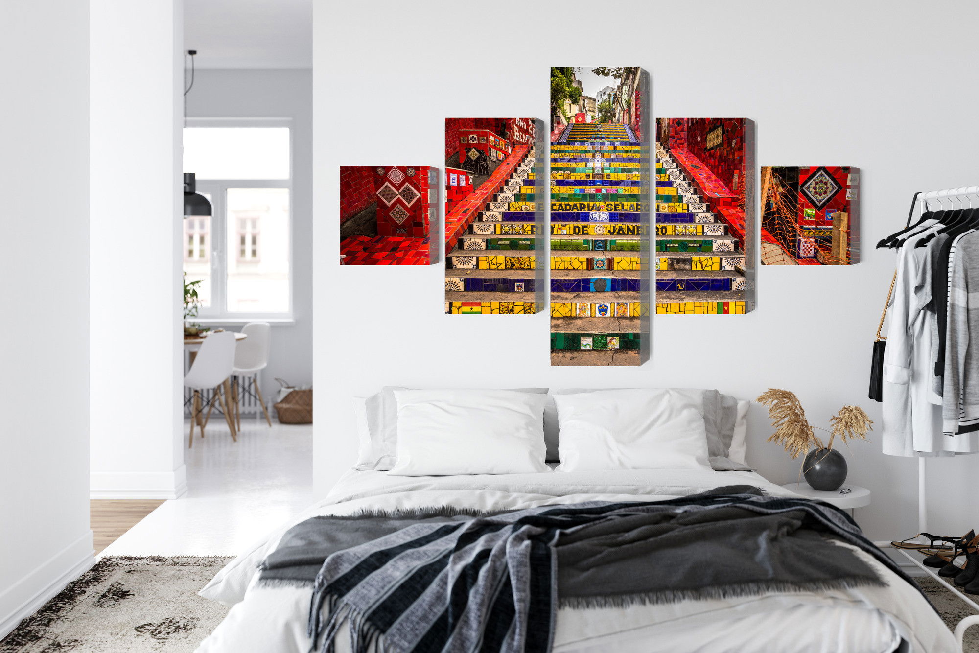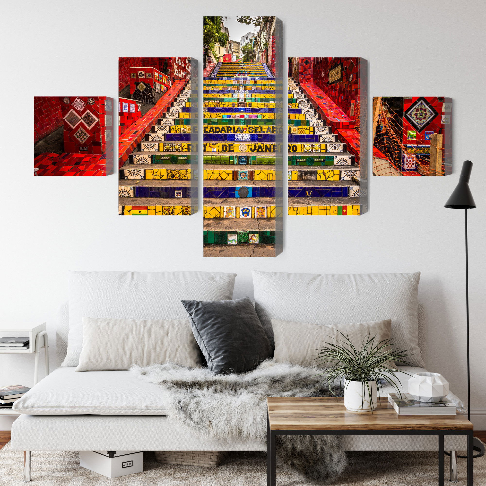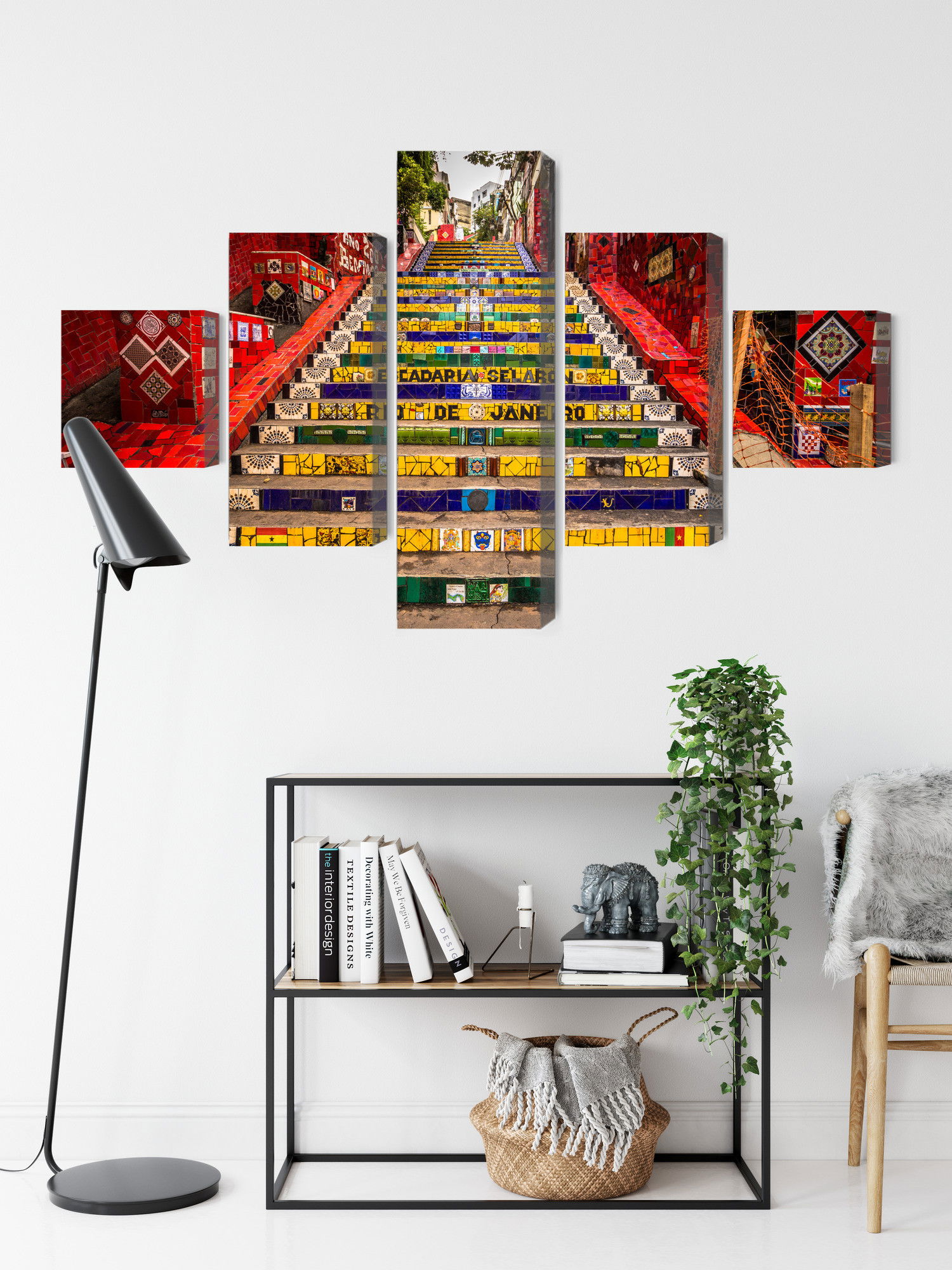 Varje tavla monteras på en massiv fururam. Format upp till 70×50 cm har en ram på 15 mm, medan format från 90×60 cm och uppåt har en ram på 20 mm. Den exakta dukspänningen gör att tavlan håller sin form över tid. Motivet Selaron stairs trycks runt hela ramen vilket ger ett stilrent galleriuttryck där tavlan är lika vacker från sidan som framifrån. Kombinationen av rak dukspänning, rena linjer och korrekt tryck ger en professionell finish.