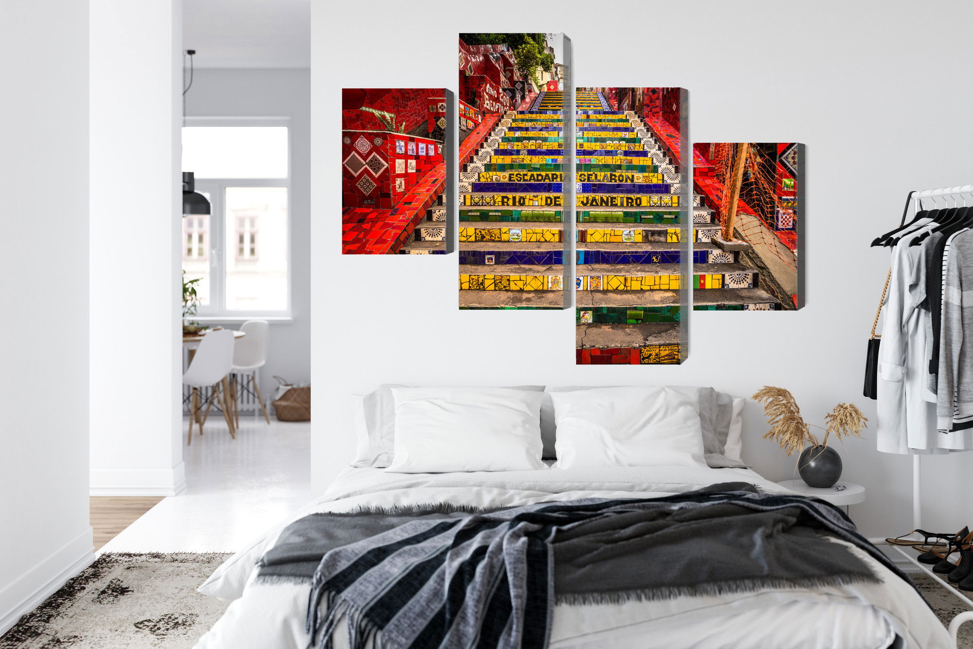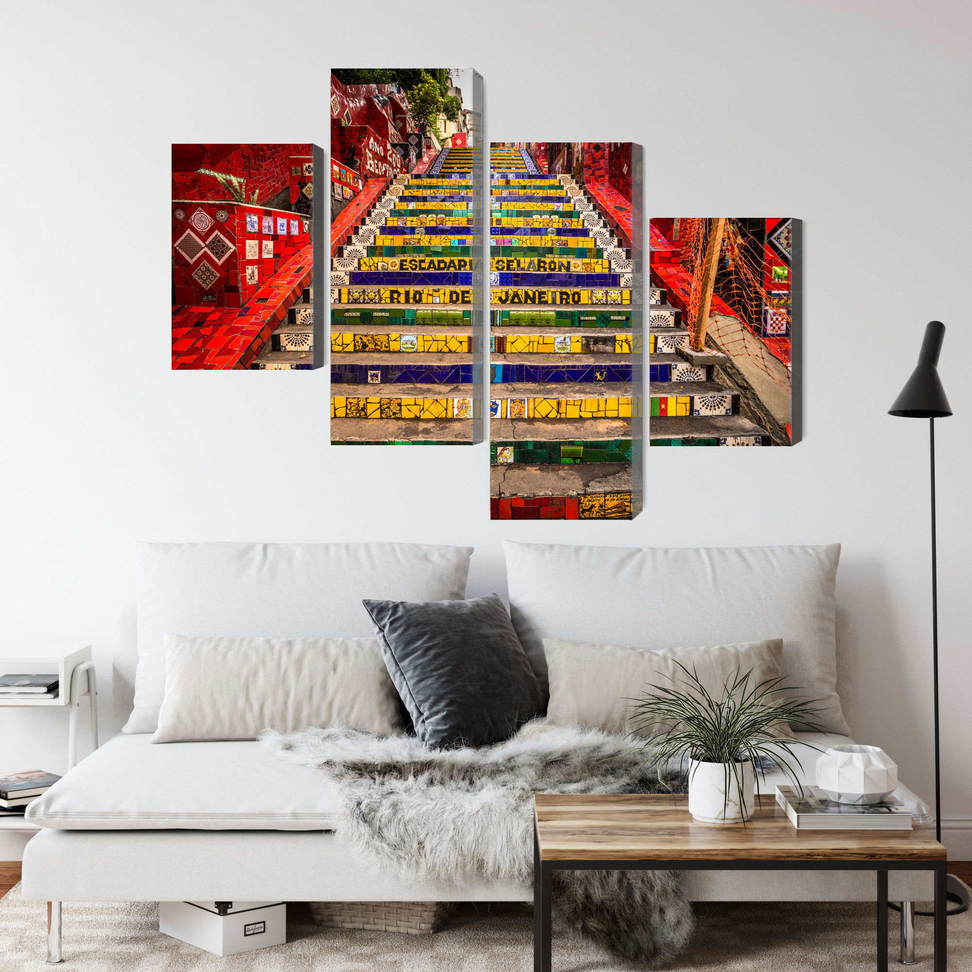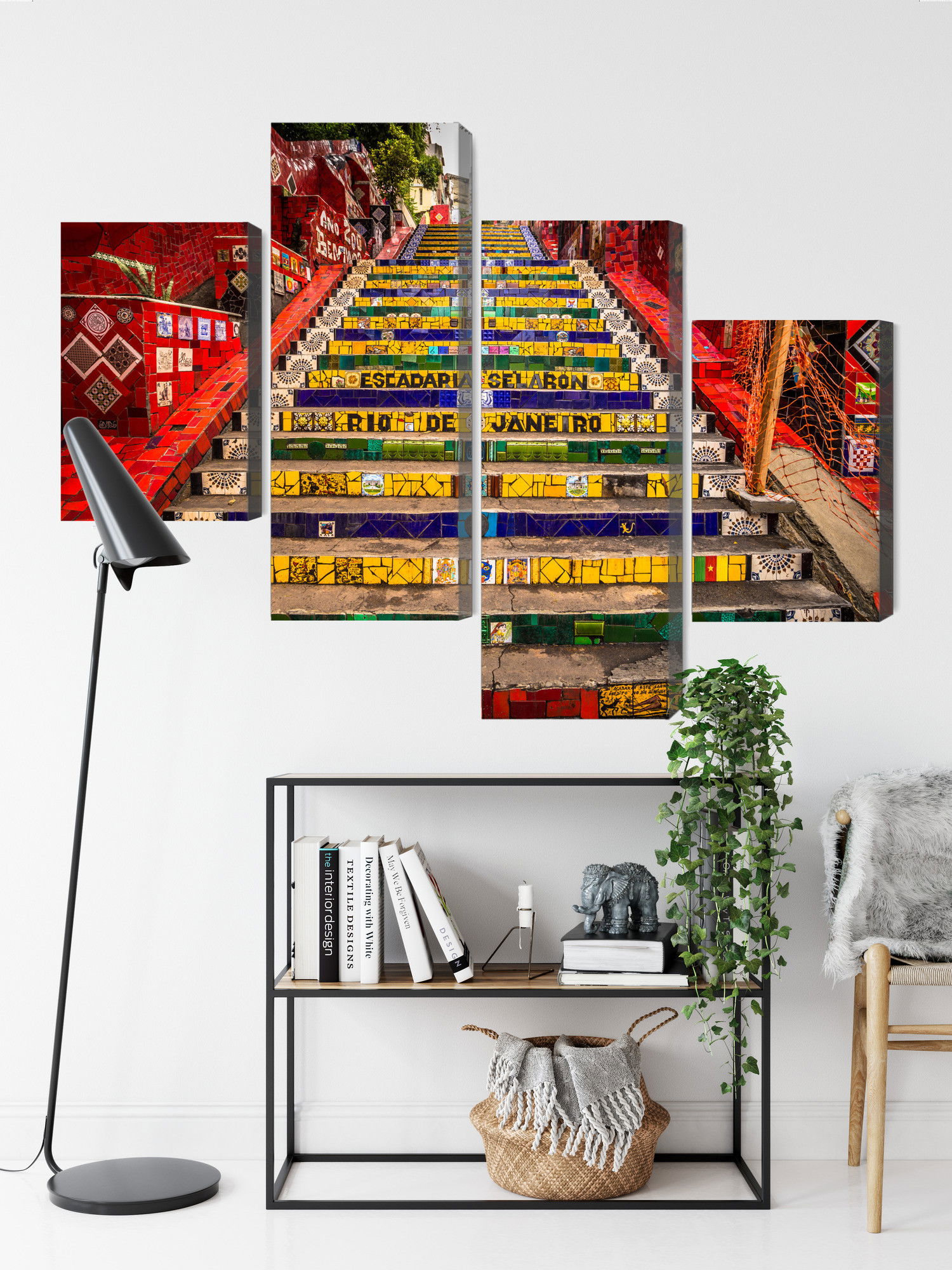 Motivet Selaron stairs återges med hög färgprecision och detaljrikedom tack vare HP Latex-teknologi. Trycket sker med vattenbaserade, luktfria och GREENGUARD Gold-certifierade bläck som ger en upplösning på upp till 300 DPI. Färgerna är UV-beständiga och behåller sin styrka även i ljusa rum, vilket gör tavlan lämplig för både hem- och offentliga miljöer.
