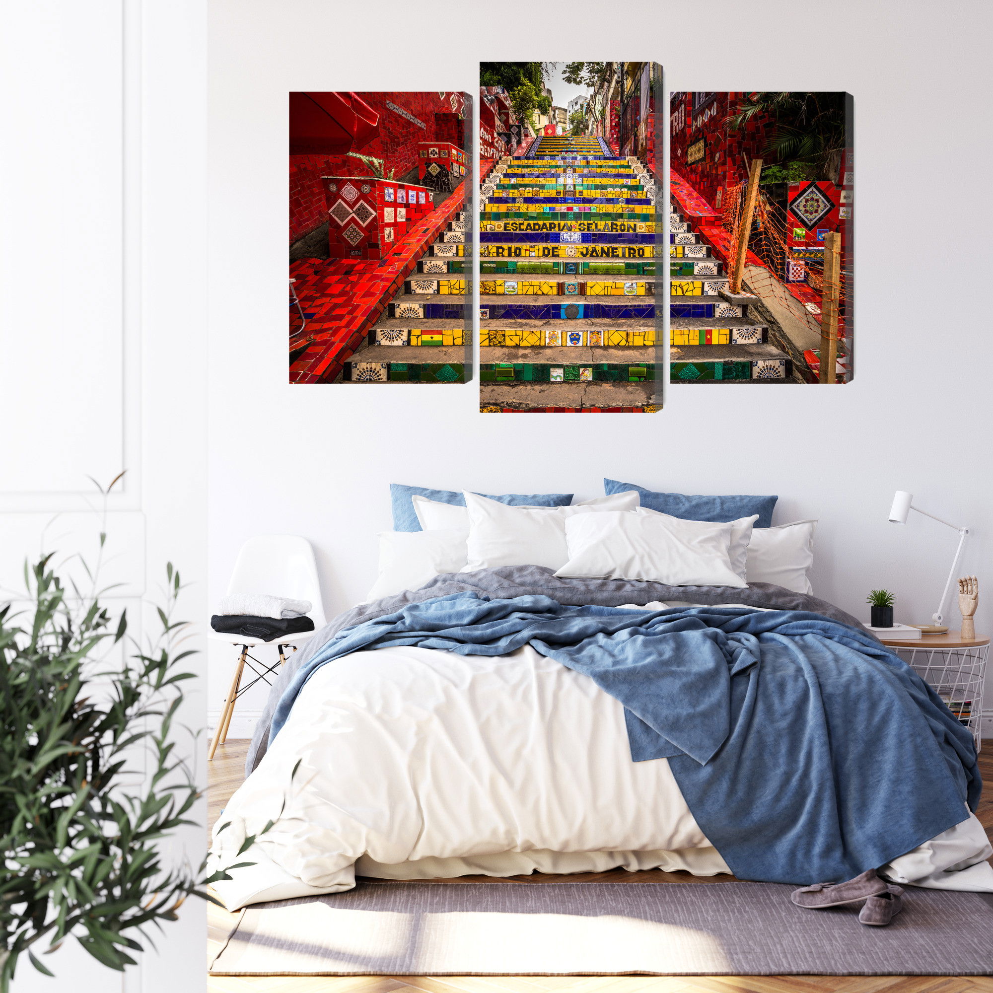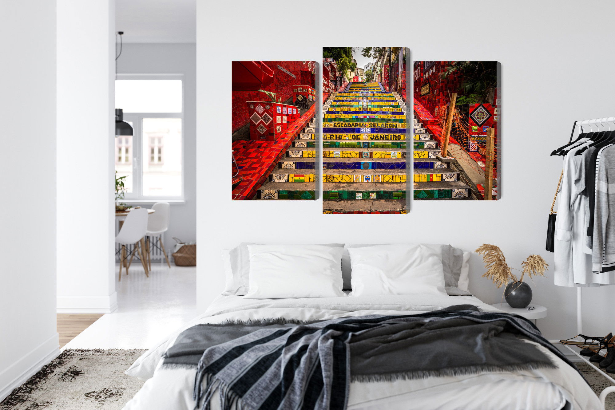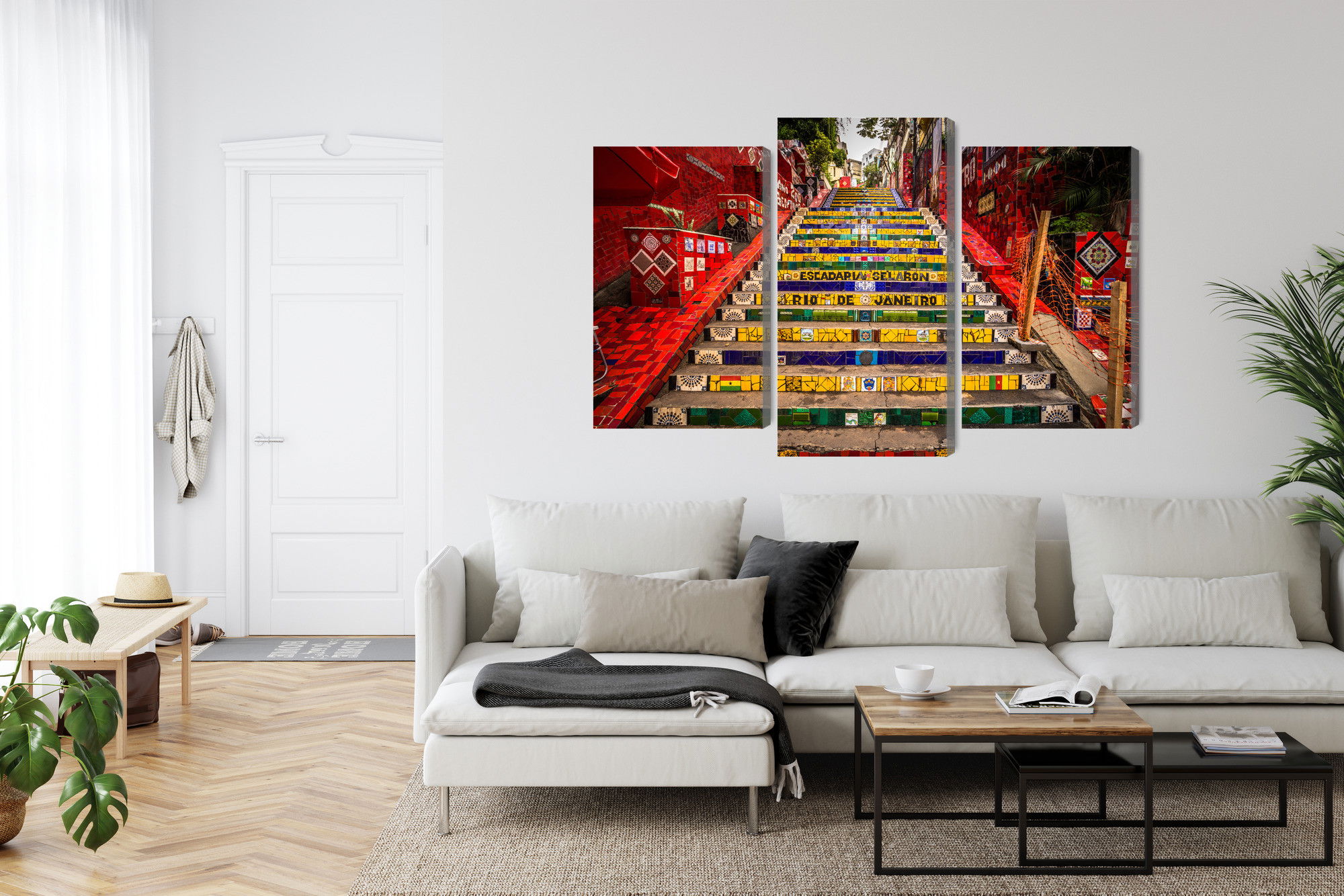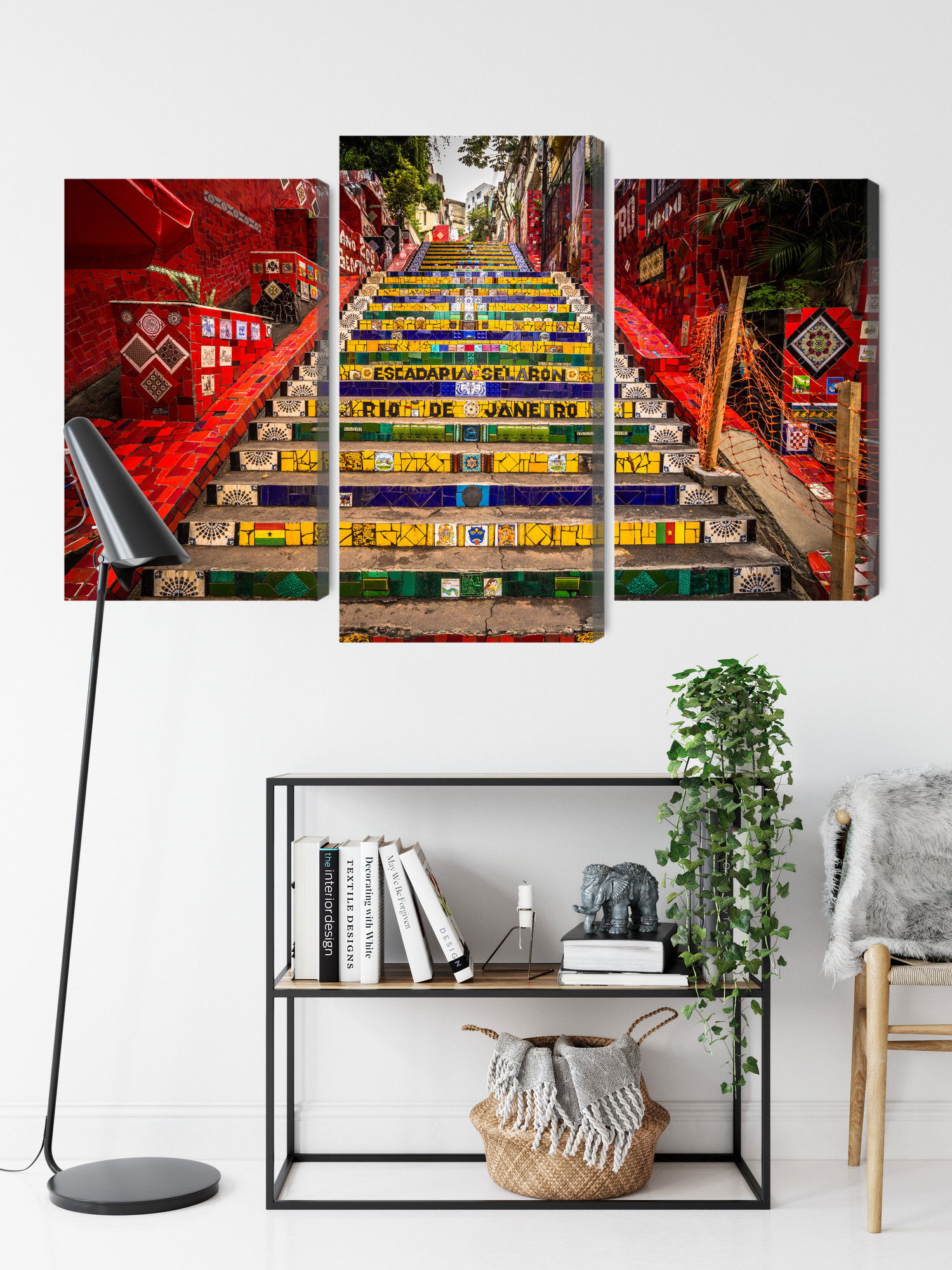 Varje tavla monteras på en massiv fururam. Format upp till 70×50 cm har en ram på 15 mm, medan format från 90×60 cm och uppåt har en ram på 20 mm. Den exakta dukspänningen gör att tavlan håller sin form över tid. Motivet Selaron stairs trycks runt hela ramen vilket ger ett stilrent galleriuttryck där tavlan är lika vacker från sidan som framifrån. Kombinationen av rak dukspänning, rena linjer och korrekt tryck ger en professionell finish.