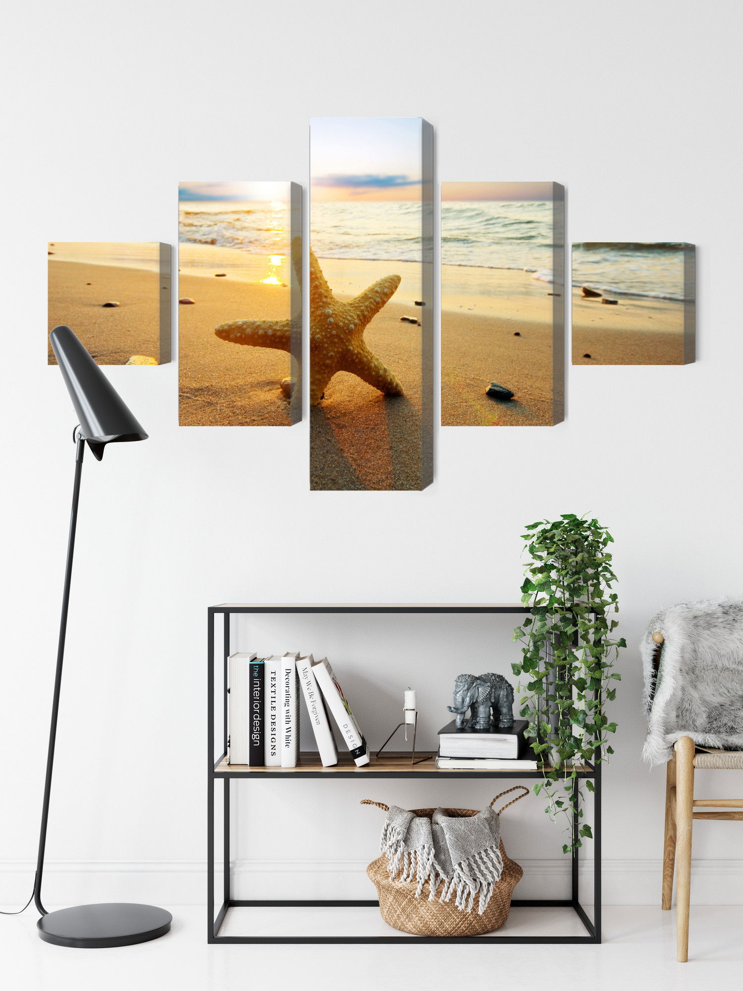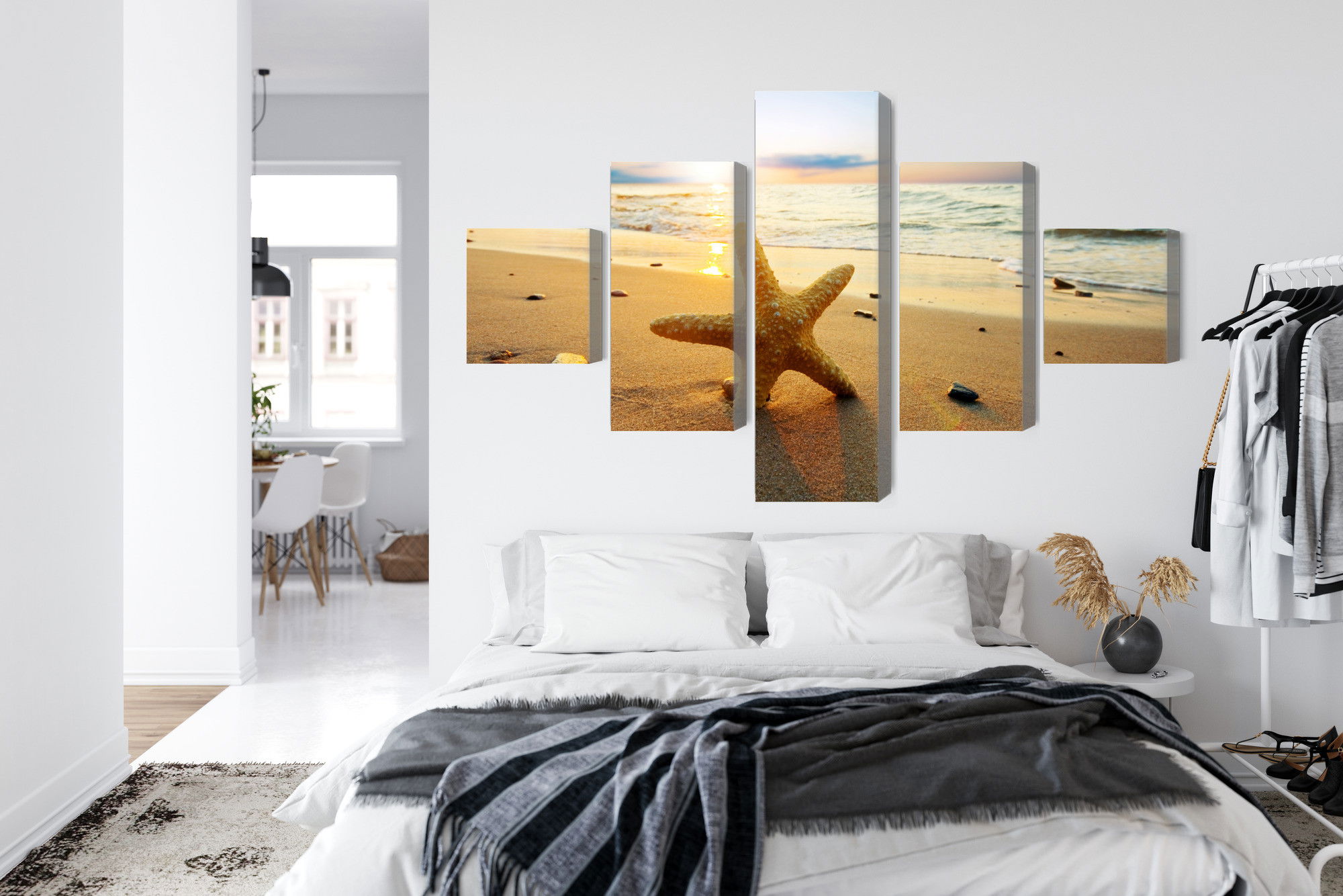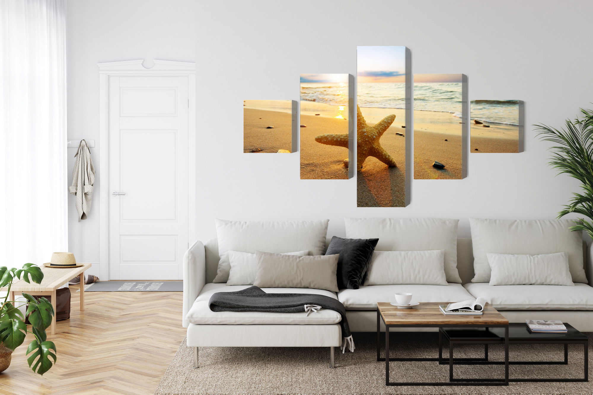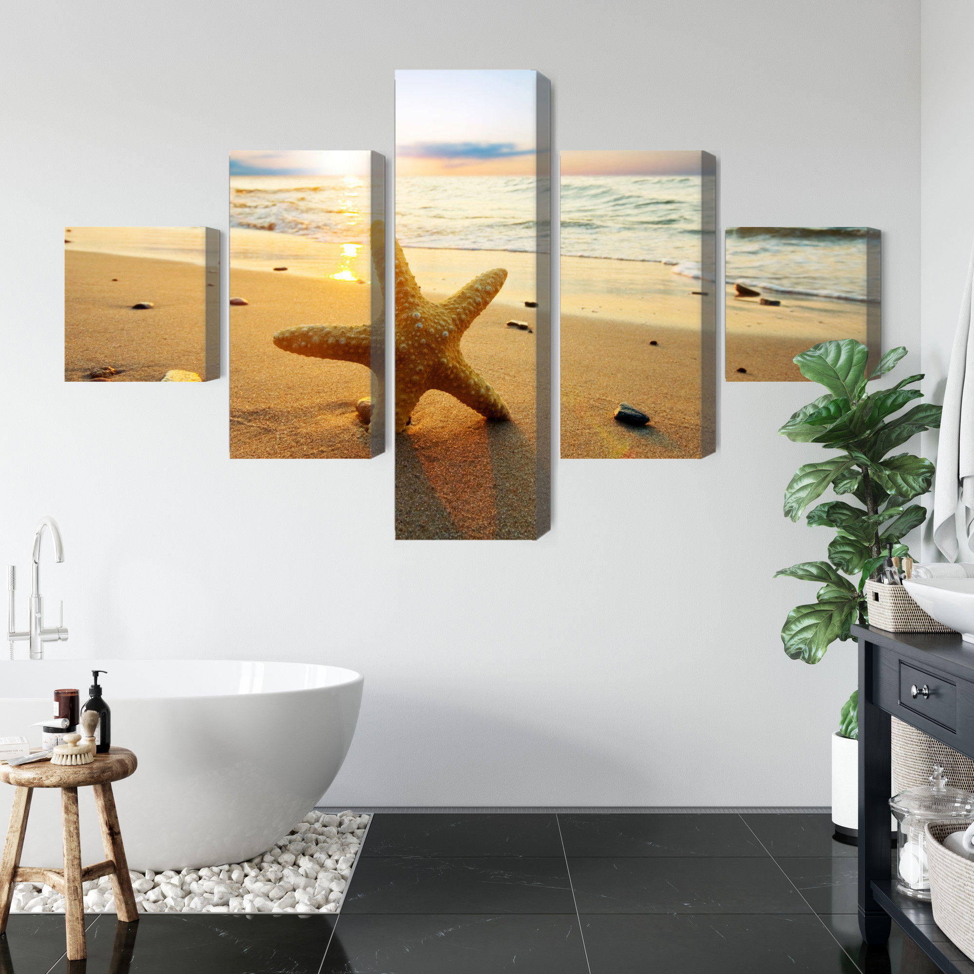 Ljuddämpande tavla – Starfish on the beach 3d för lugnare rum och mjukare akustik