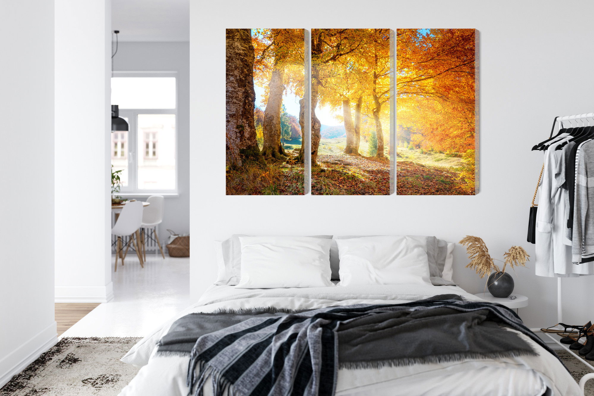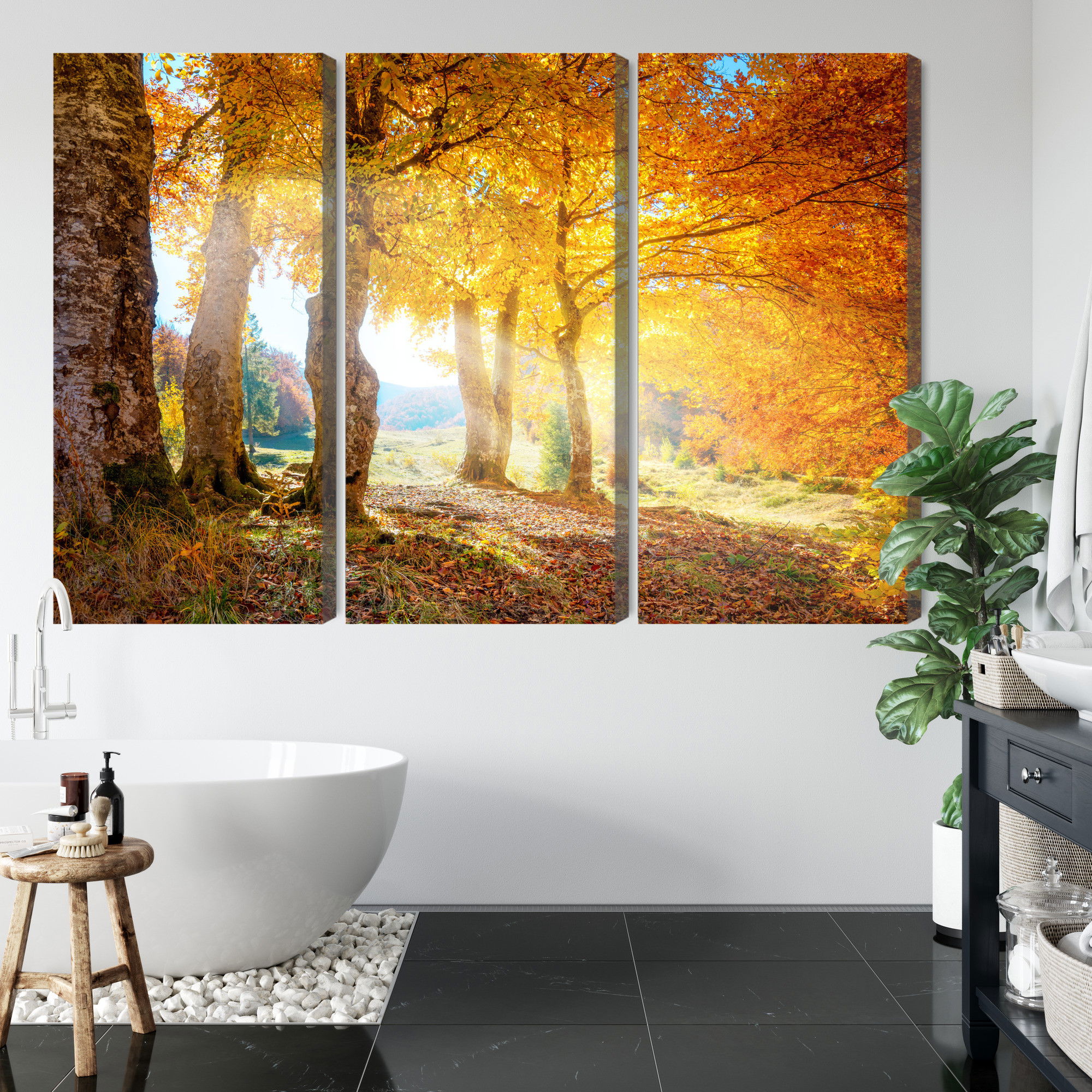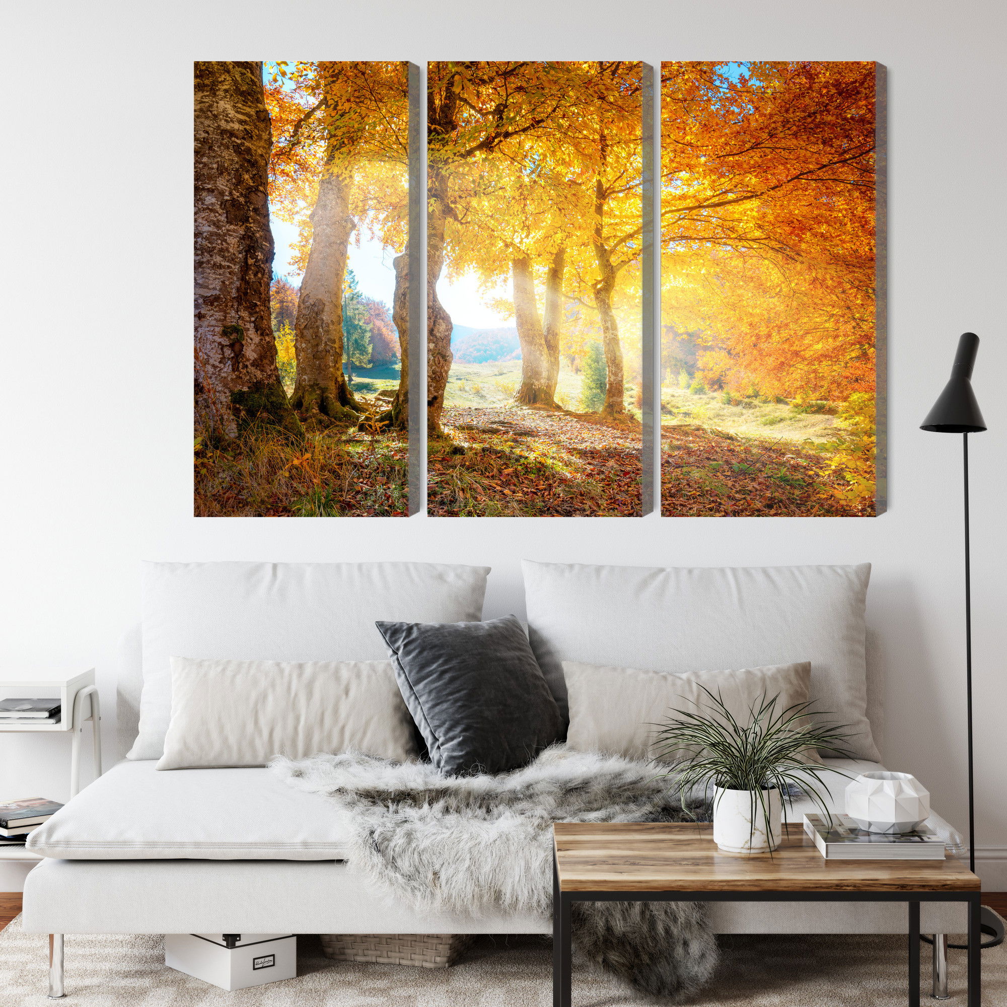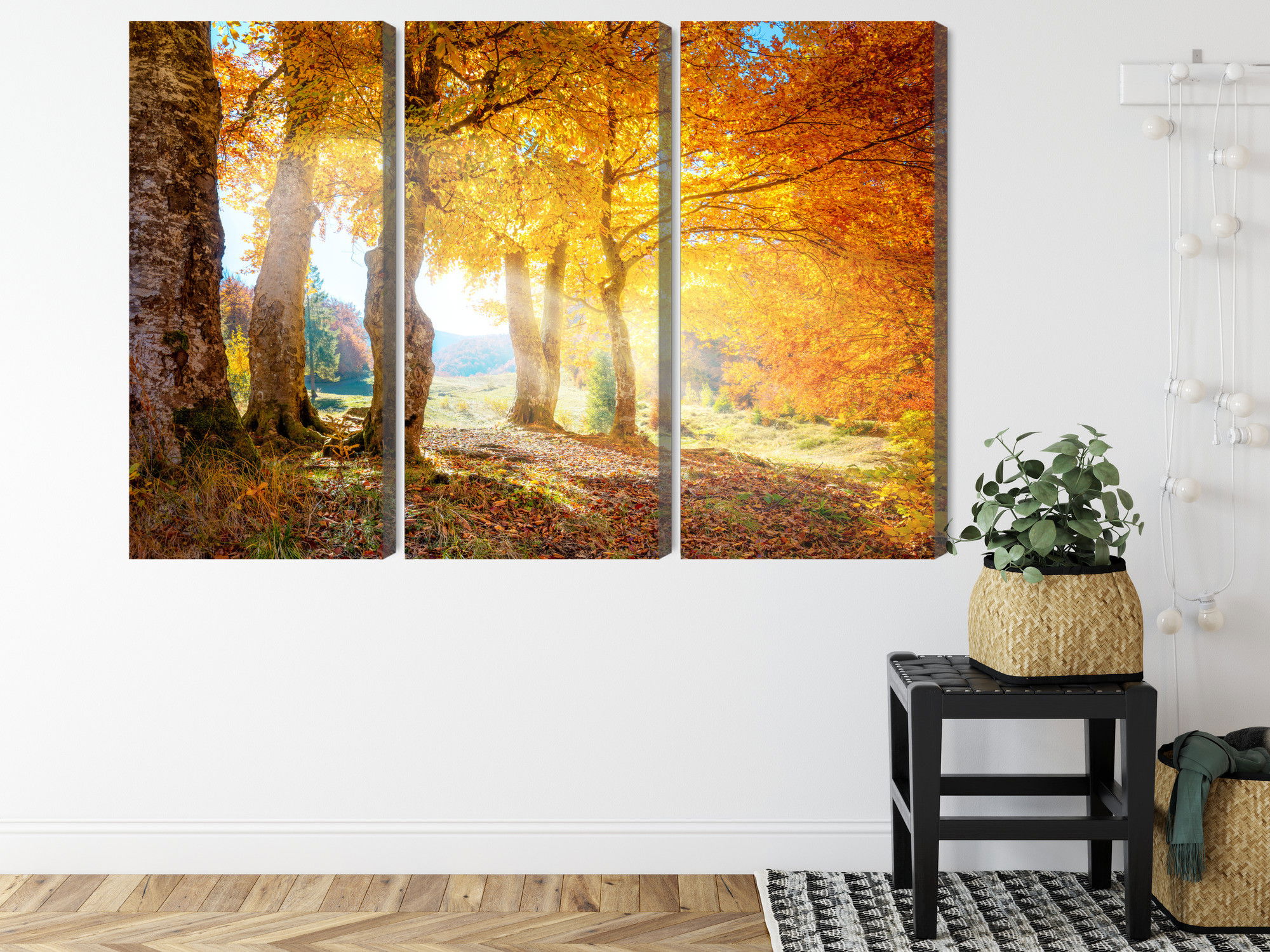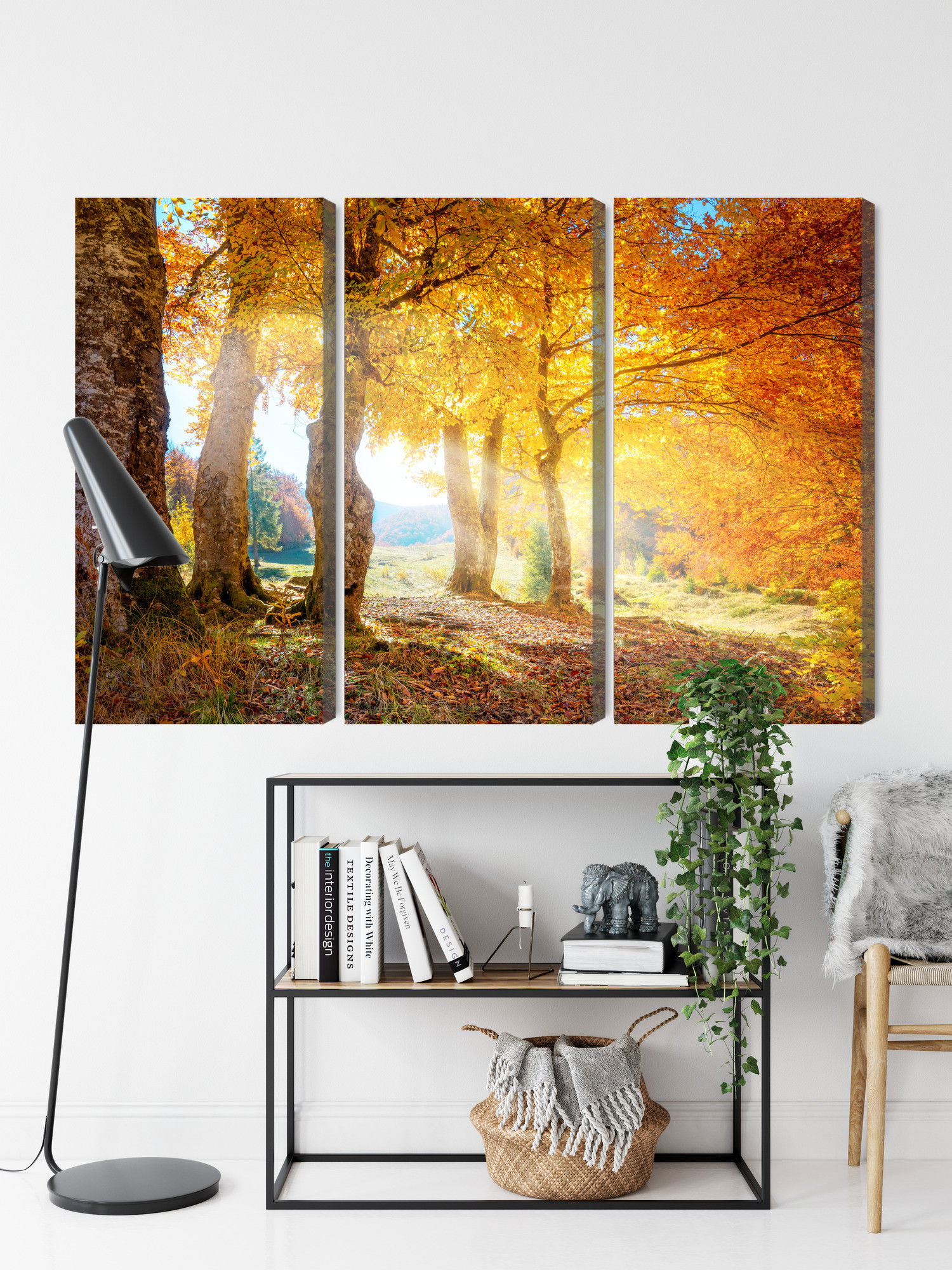 Ljuddämpande tavla – Sunny autumn forest för lugnare rum och mjukare akustik