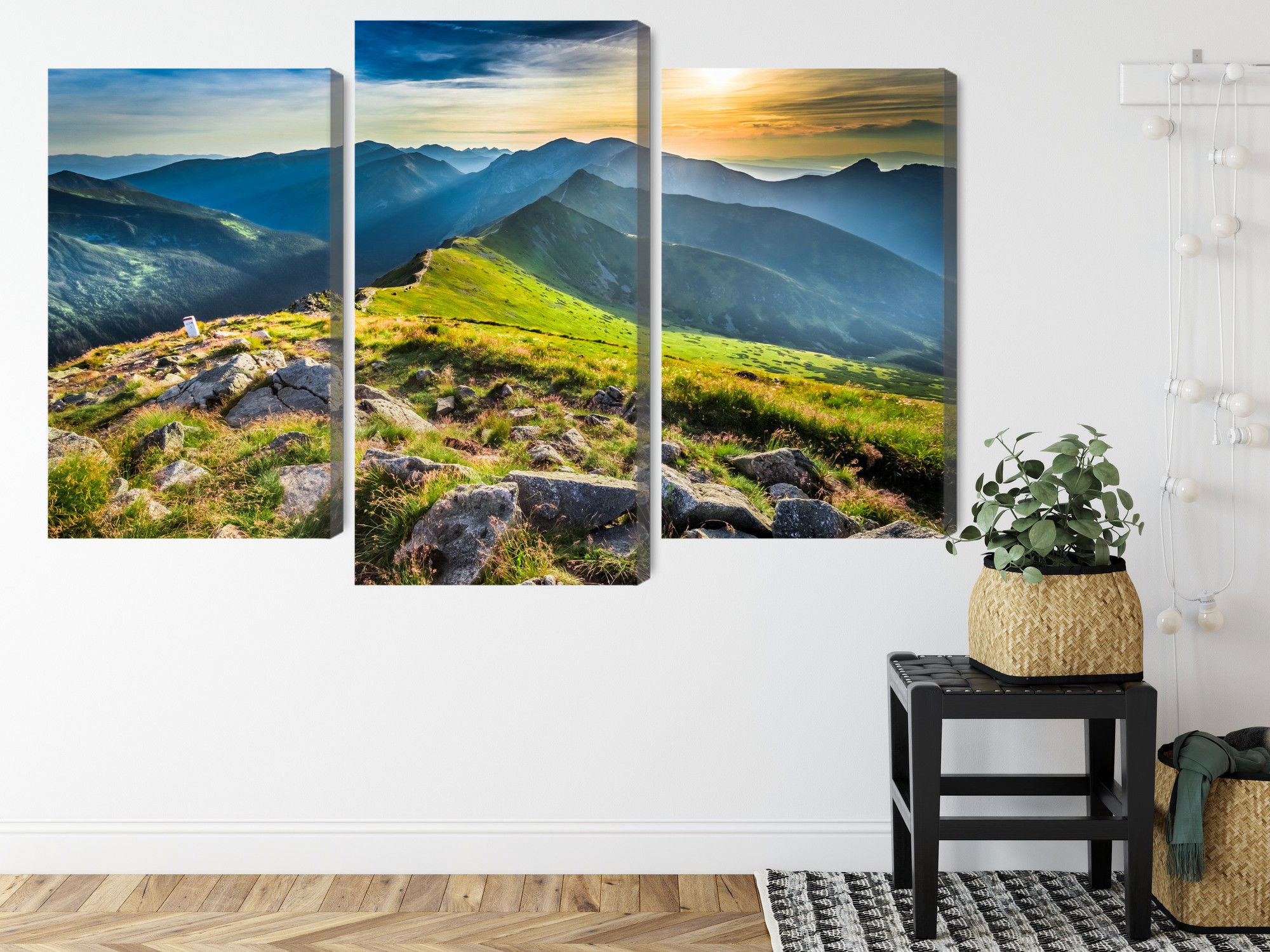 Ljuddämpande tavla – Sunset in the mountains 3d för lugnare rum och mjukare akustik