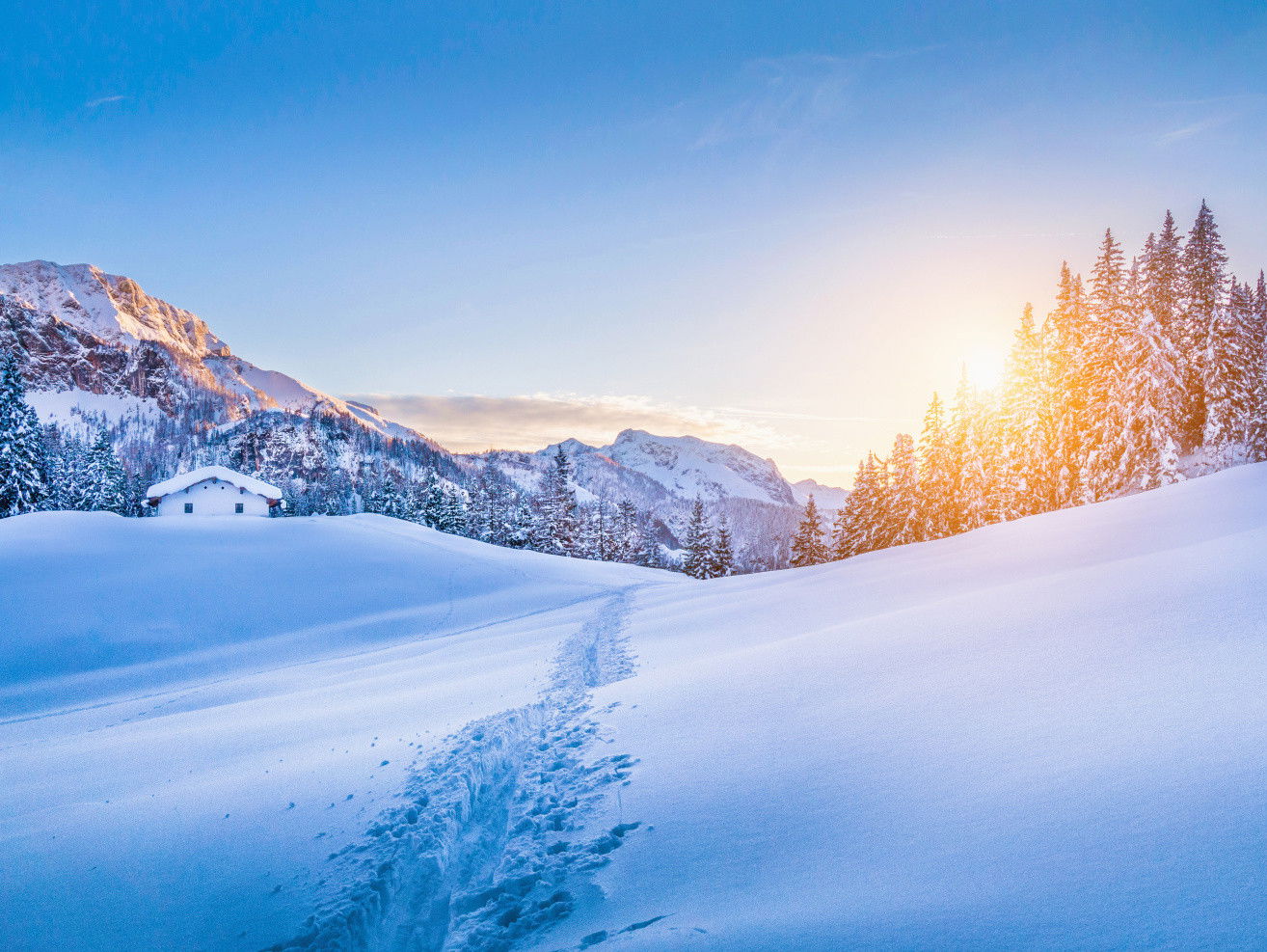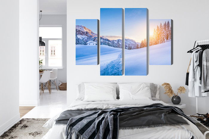 Ljuddämpande tavla – The alps at winter time 3d för lugnare rum och mjukare akustik