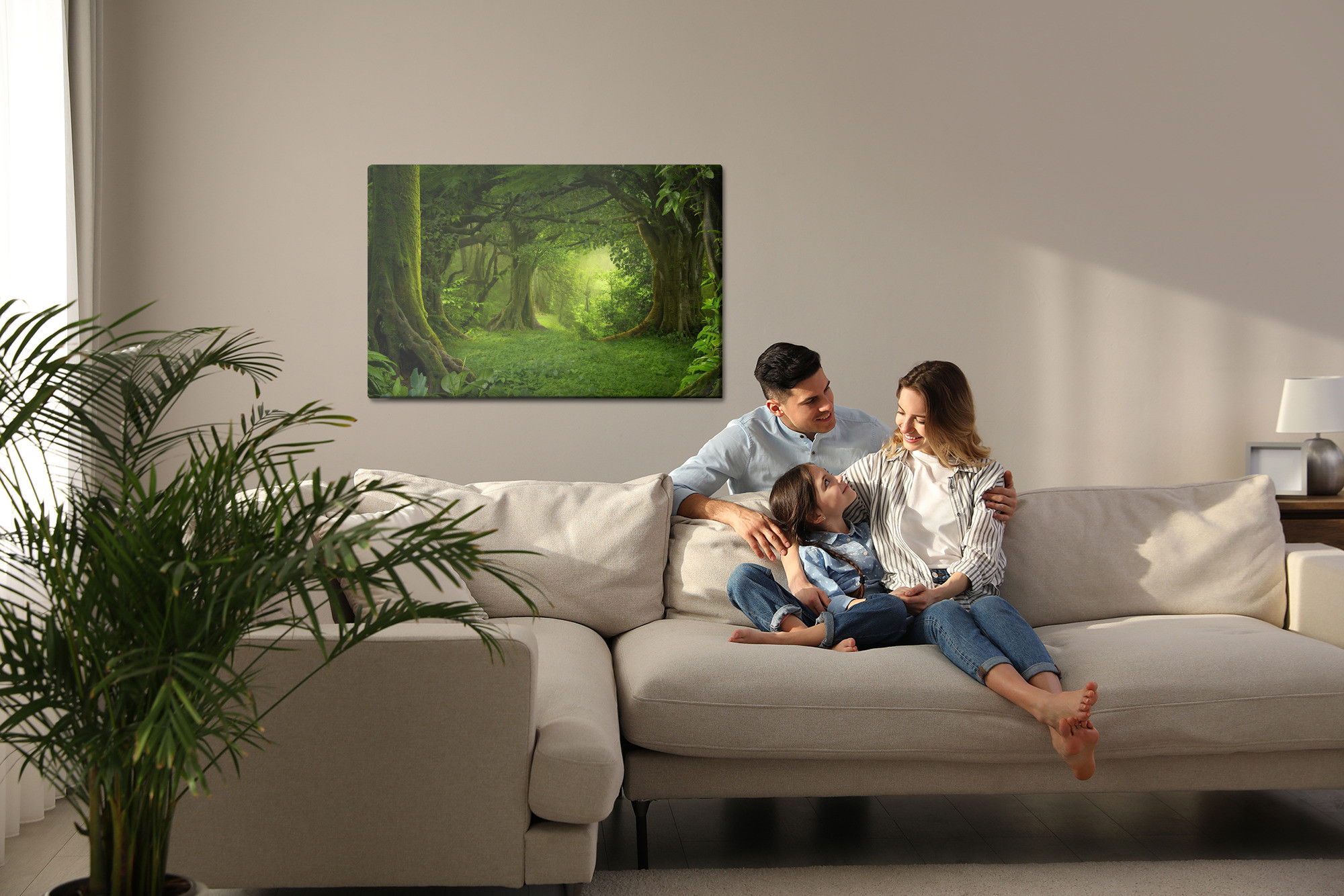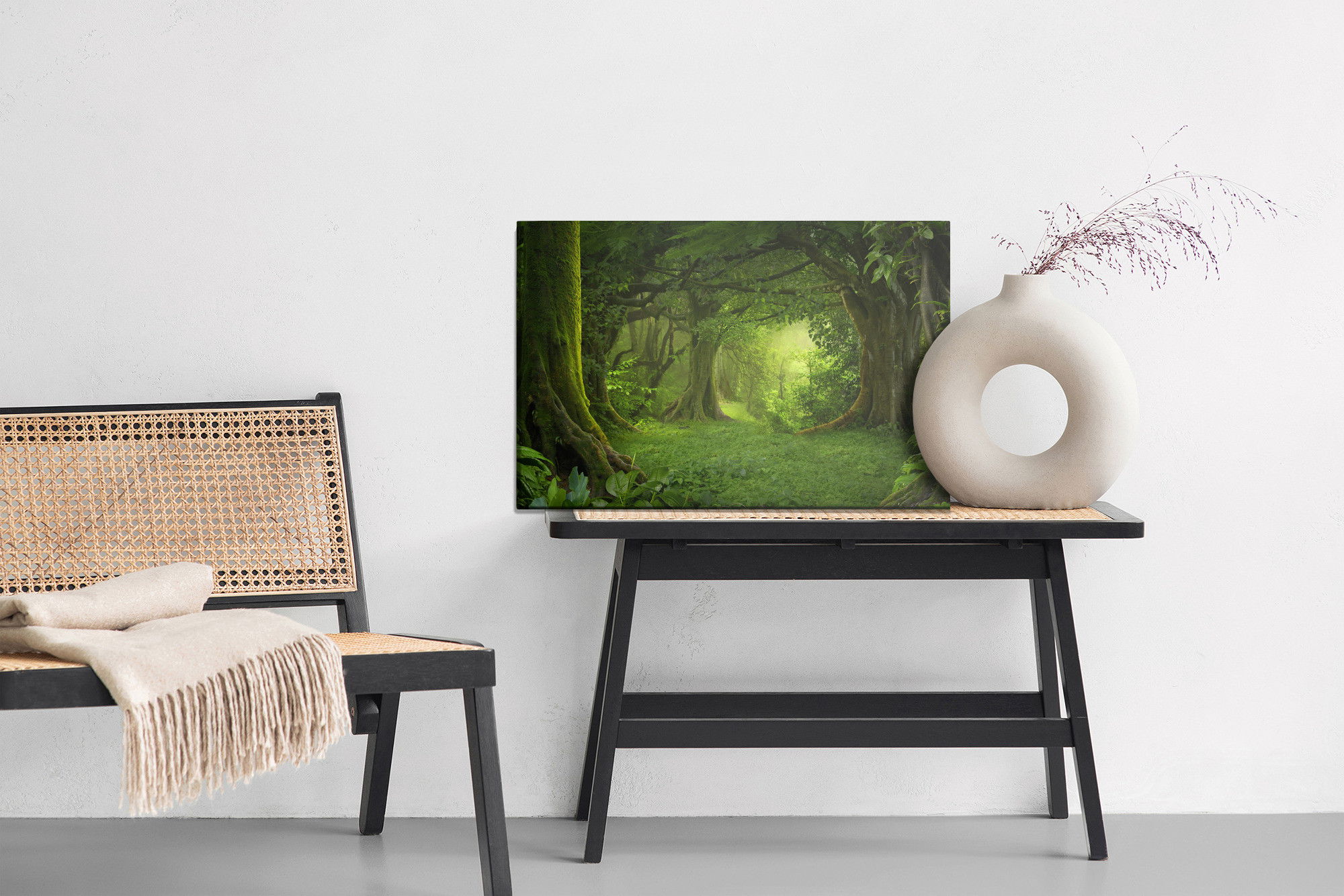 Varje tavla monteras på en massiv fururam. Format upp till 70×50 cm har en ram på 15 mm, medan format från 90×60 cm och uppåt har en ram på 20 mm. Den exakta dukspänningen gör att tavlan håller sin form över tid. Motivet The depth of the tropical trycks runt hela ramen vilket ger ett stilrent galleriuttryck där tavlan är lika vacker från sidan som framifrån. Kombinationen av rak dukspänning, rena linjer och korrekt tryck ger en professionell finish.