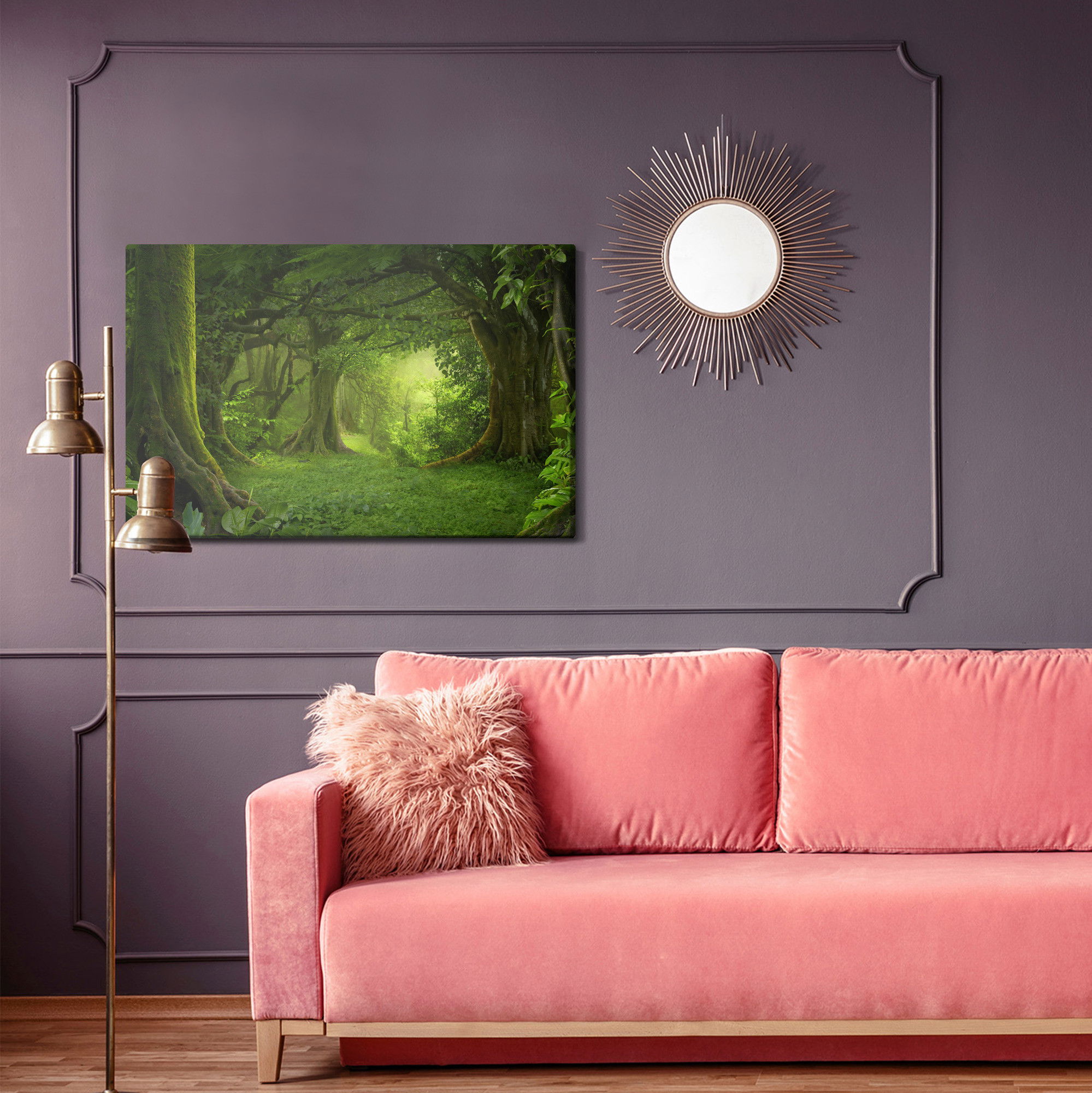 SilentDirects ljuddämpande tavla The depth of the tropical kombinerar ett högupplöst motiv med avancerad akustikteknik. Varje tavla monteras i Sverige och bygger på en stabil canvastavla med fururam, där insidan av ramen fylls med en ljudabsorberande kärna av återvunnen polyester. Konstruktionen gör tavlan till ett både estetiskt och funktionellt inslag i rummet.