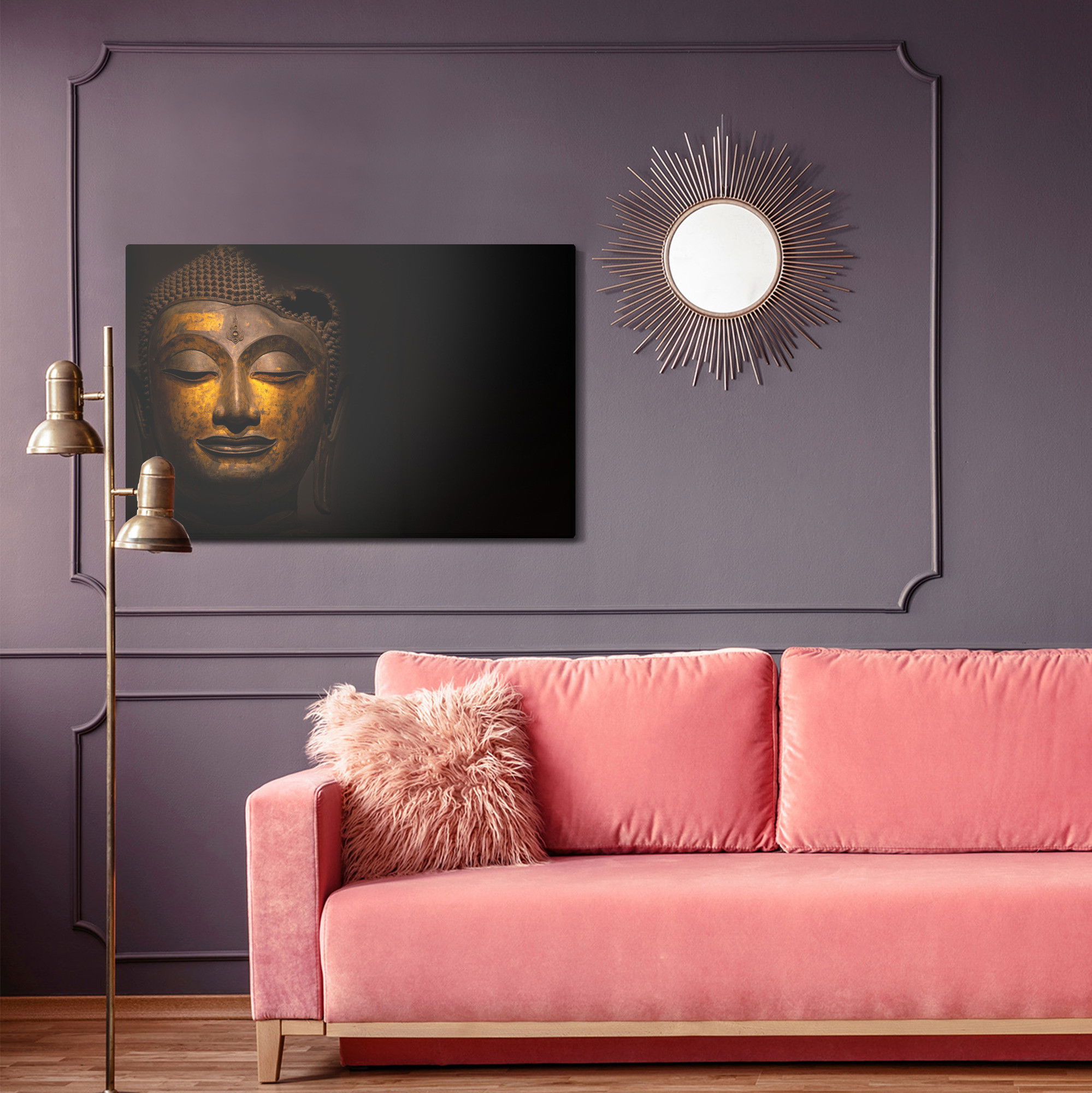 Ljuddämpande tavla – The face of the buddha för lugnare rum och mjukare akustik
