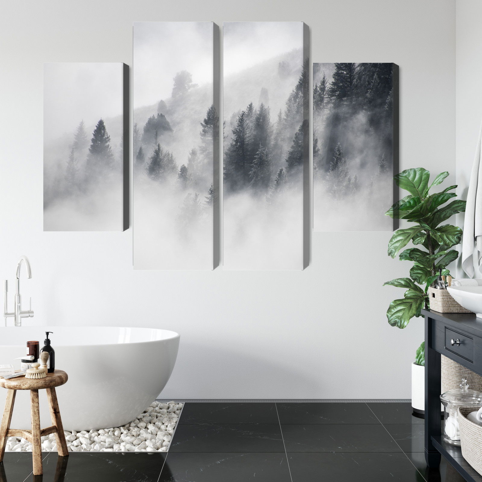 Ljuddämpande tavla – The forest is shrouded in fog för lugnare rum och mjukare akustik
