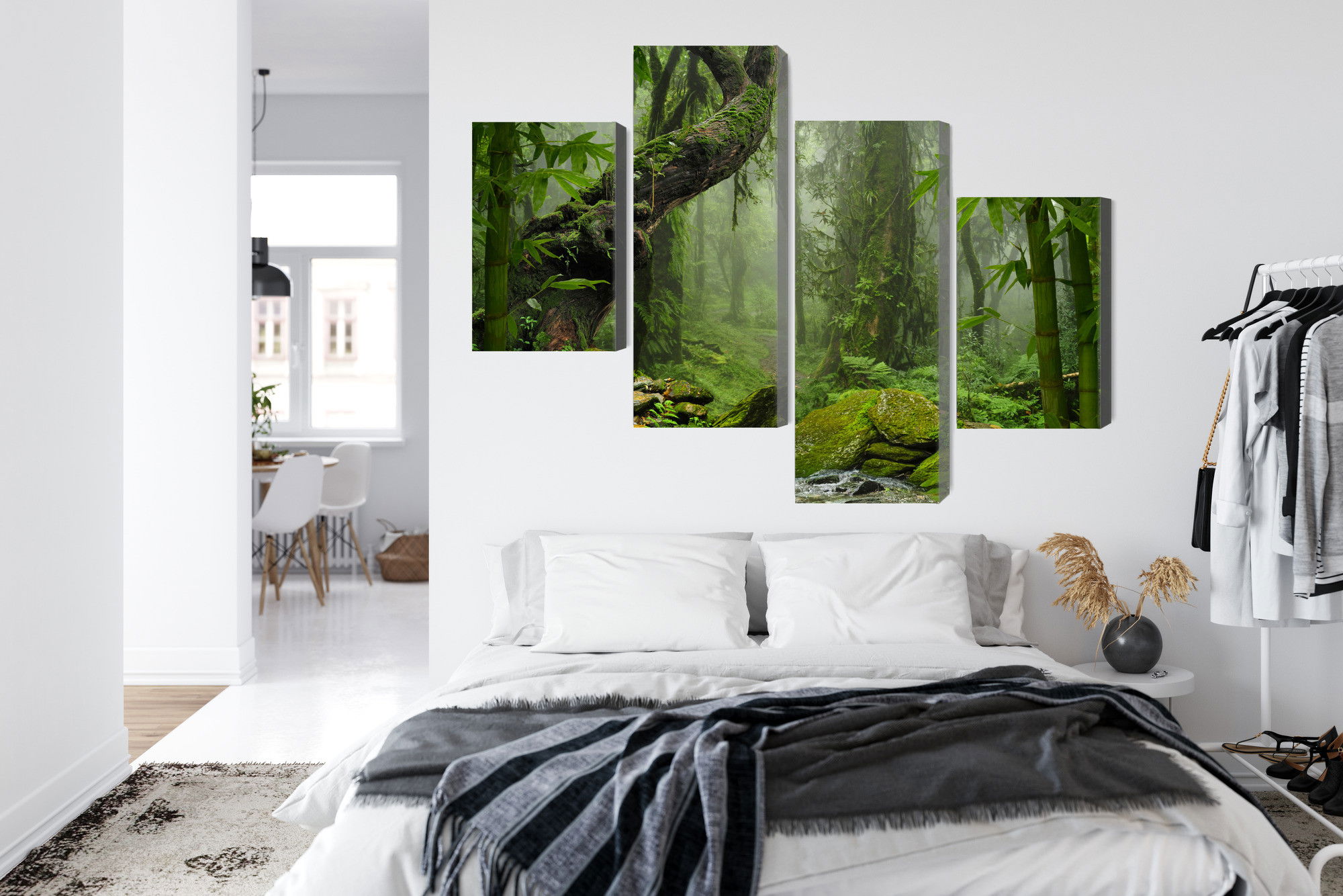 En ljuddämpande tavla The green of the rain forest är mer än en väggdekoration. En ljuddämpande tavla från SilentDirect bidrar till att skapa en mer sammanhållen akustik där störande efterklang minskar och samtal upplevs tydligare. Genom att kombinera akustisk funktion med omsorgsfullt utvalda material och premiumtryck får du en lösning som både förbättrar ljudmiljön och förstärker intrycket av rummet.