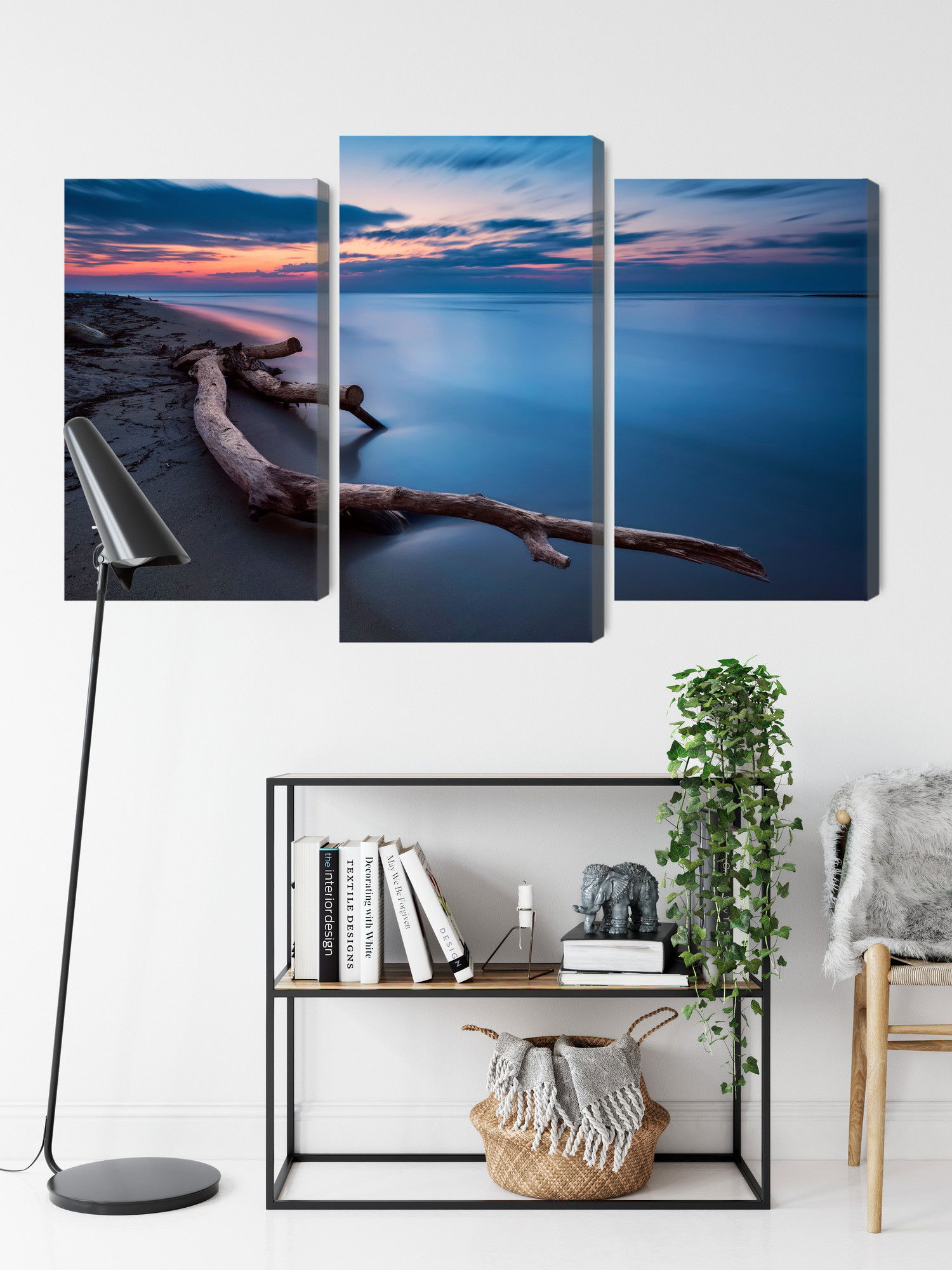 Med SilentDirects ljuddämpande tavla The sea landscape at evening får du både ett stilrent motiv och en akustisk lösning i samma produkt. Tavlan byggs i Sverige och utgår från en canvastavla med fururam som fylls med en återvunnen polyestercell för effektiv ljudabsorption.