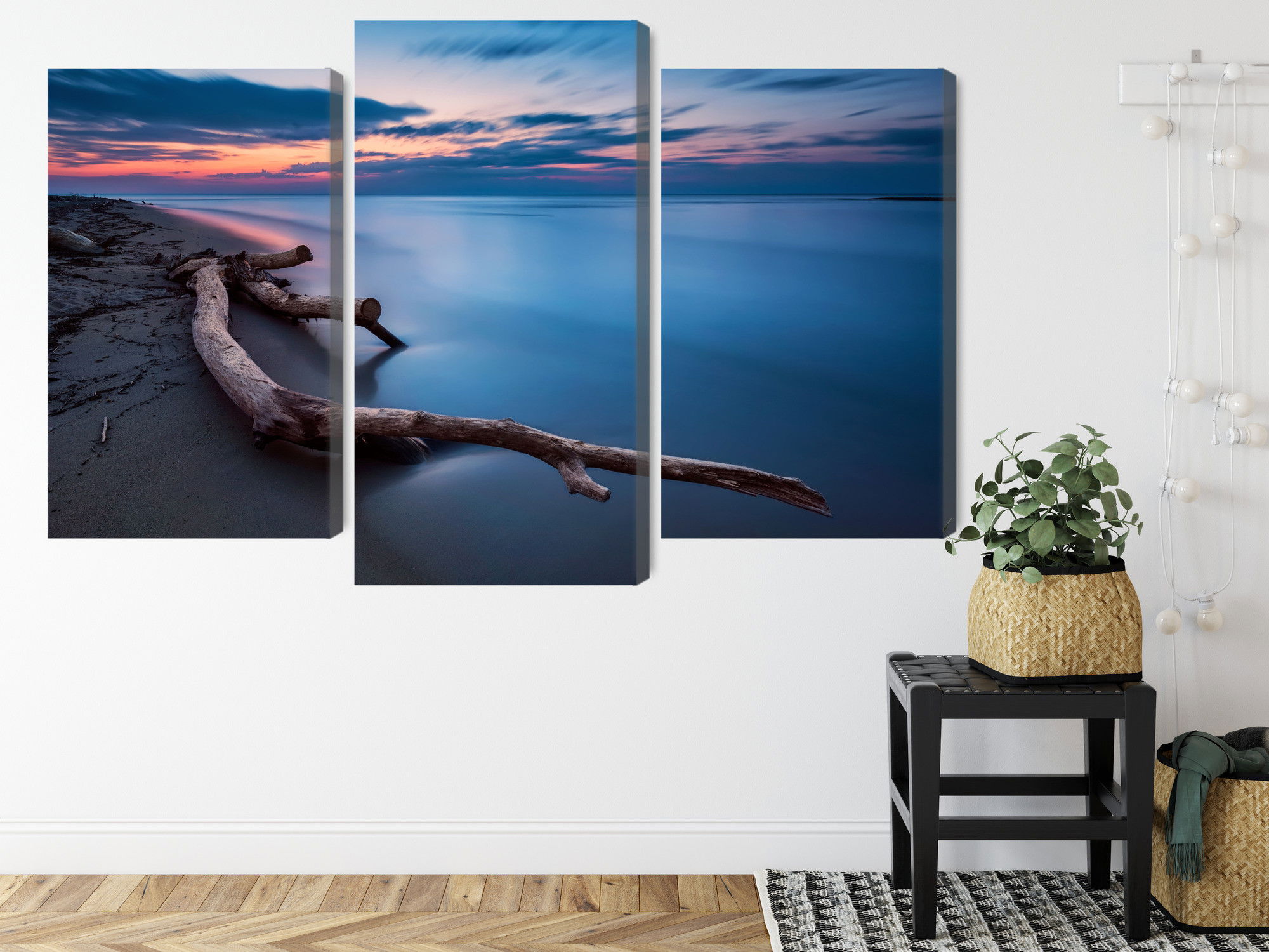 Motivet The sea landscape at evening återges med hög färgprecision och detaljrikedom tack vare HP Latex-teknologi. Trycket sker med vattenbaserade, luktfria och GREENGUARD Gold-certifierade bläck som ger en upplösning på upp till 300 DPI. Färgerna är UV-beständiga och behåller sin styrka även i ljusa rum, vilket gör tavlan lämplig för både hem- och offentliga miljöer.
