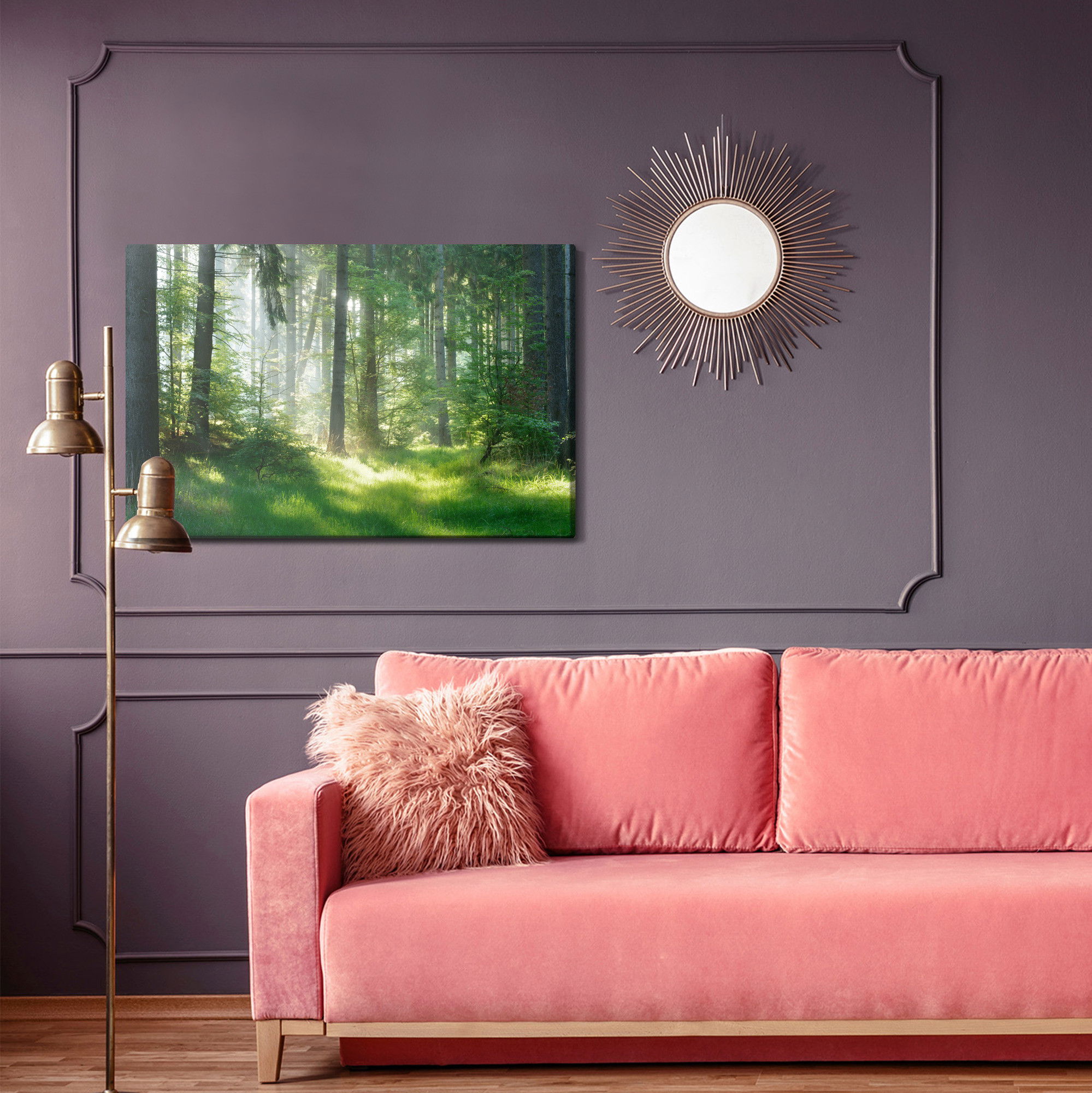Ljuddämpande tavla – The sun peeks into the forest för lugnare rum och mjukare akustik