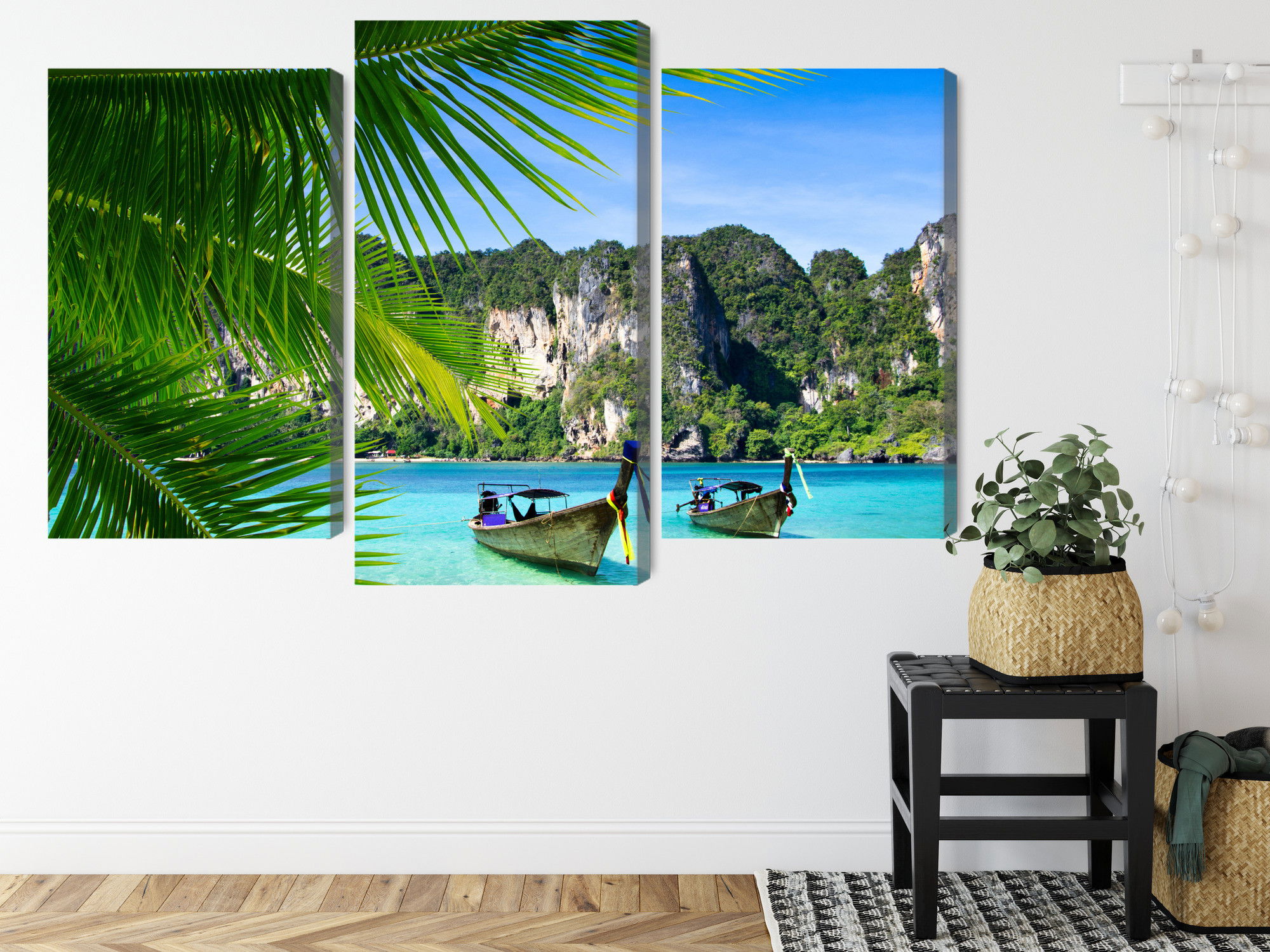 Varje tavla monteras på en massiv fururam. Format upp till 70×50 cm har en ram på 15 mm, medan format från 90×60 cm och uppåt har en ram på 20 mm. Den exakta dukspänningen gör att tavlan håller sin form över tid. Motivet Tropical landscape 3d trycks runt hela ramen vilket ger ett stilrent galleriuttryck där tavlan är lika vacker från sidan som framifrån. Kombinationen av rak dukspänning, rena linjer och korrekt tryck ger en professionell finish.