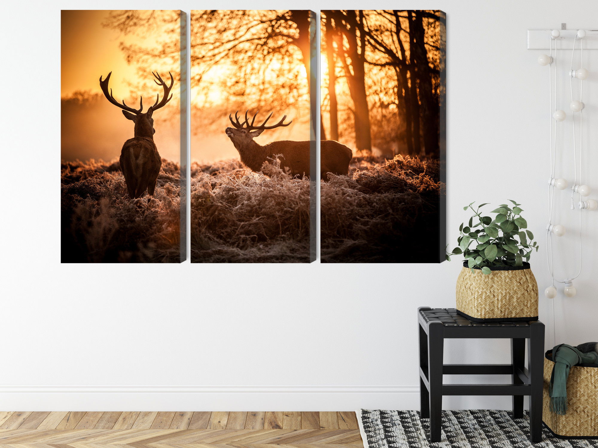 Ljuddämpande tavla – Two deer in the forest för lugnare rum och mjukare akustik