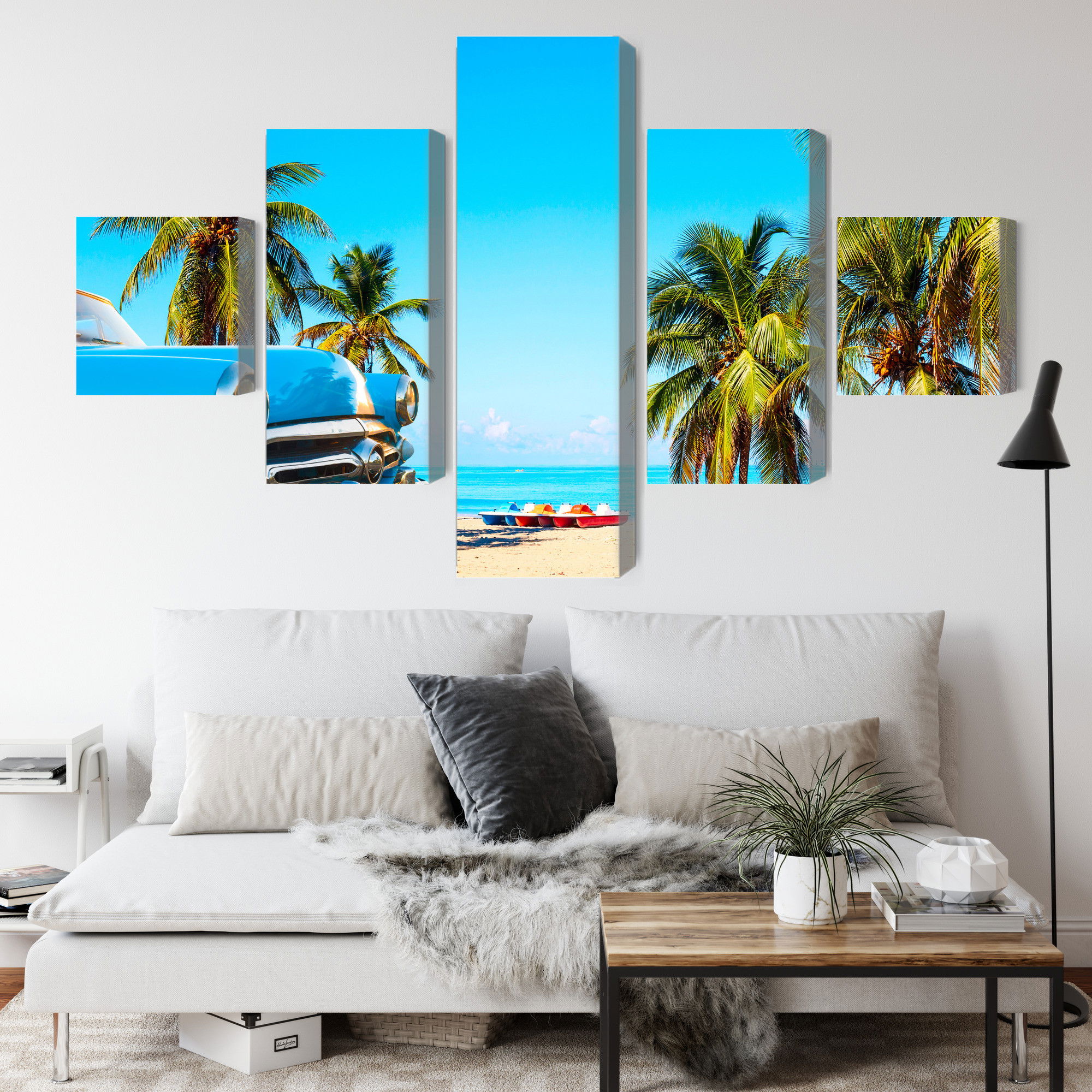 Varje tavla monteras på en massiv fururam. Format upp till 70×50 cm har en ram på 15 mm, medan format från 90×60 cm och uppåt har en ram på 20 mm. Den exakta dukspänningen gör att tavlan håller sin form över tid. Motivet Varadero beach in cuba trycks runt hela ramen vilket ger ett stilrent galleriuttryck där tavlan är lika vacker från sidan som framifrån. Kombinationen av rak dukspänning, rena linjer och korrekt tryck ger en professionell finish.