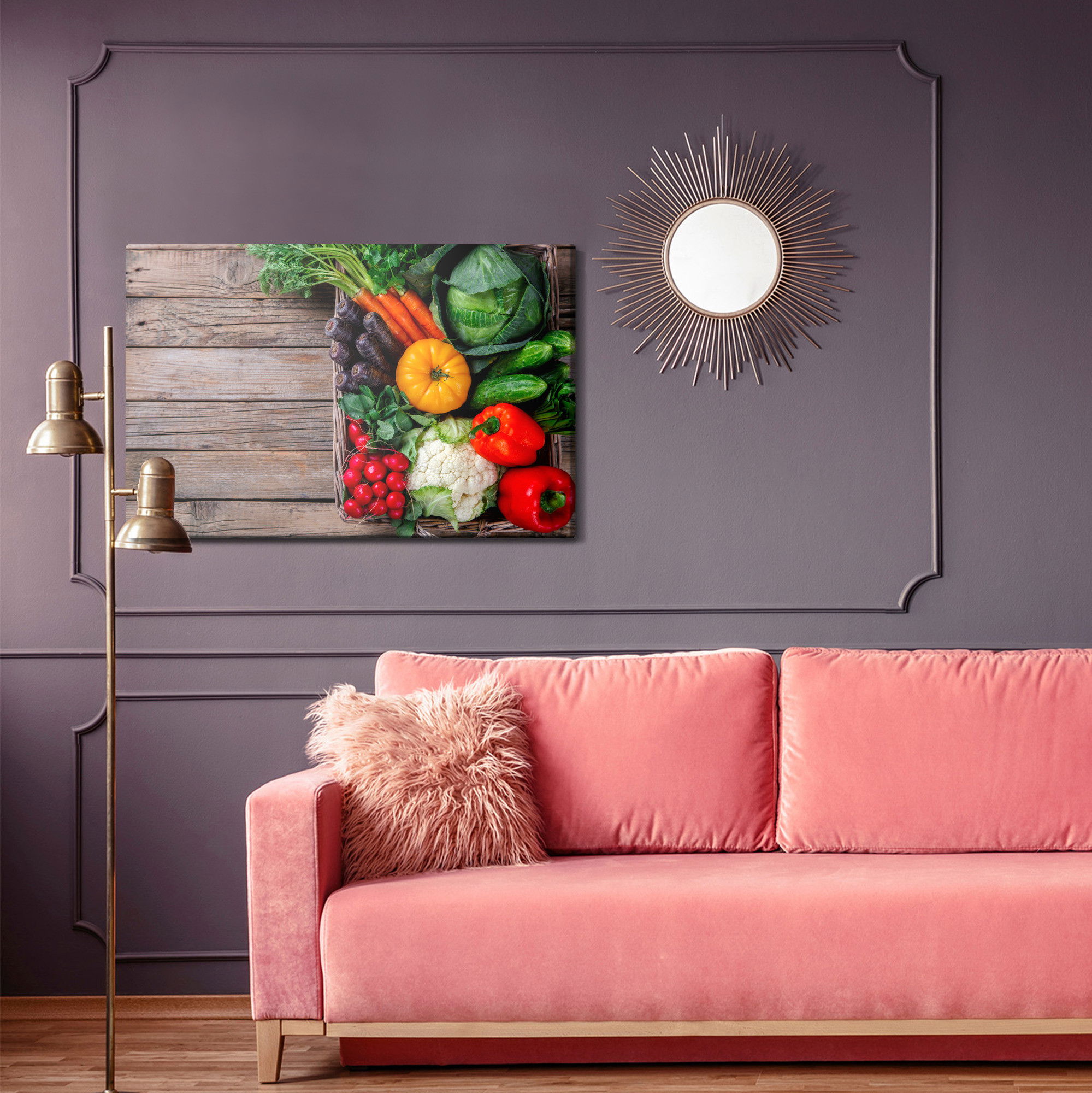 Ljuddämpande tavla – Vegetable basket on the table för lugnare rum och mjukare akustik