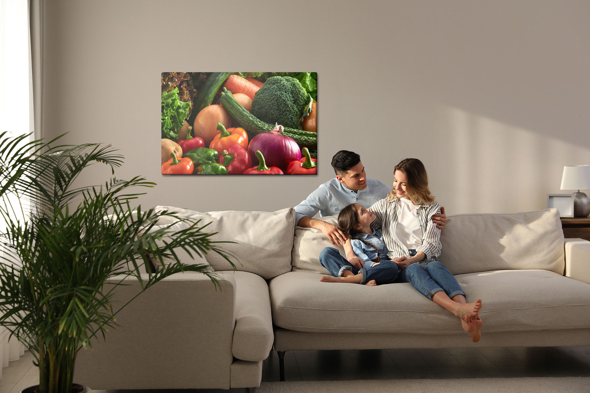 Motivet Vegetables close up återges med hög färgprecision och detaljrikedom tack vare HP Latex-teknologi. Trycket sker med vattenbaserade, luktfria och GREENGUARD Gold-certifierade bläck som ger en upplösning på upp till 300 DPI. Färgerna är UV-beständiga och behåller sin styrka även i ljusa rum, vilket gör tavlan lämplig för både hem- och offentliga miljöer.