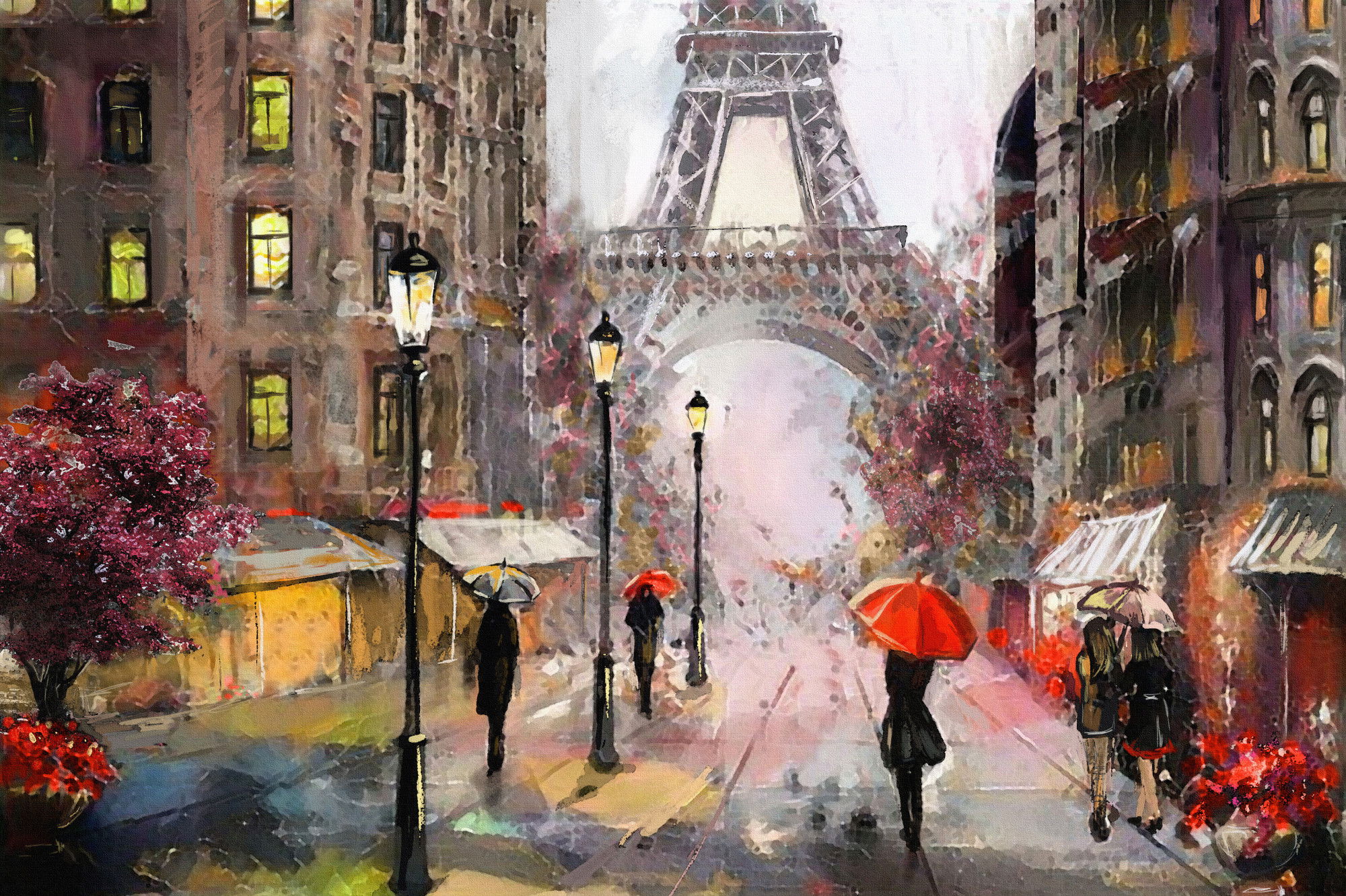 Varje tavla monteras på en massiv fururam. Format upp till 70×50 cm har en ram på 15 mm, medan format från 90×60 cm och uppåt har en ram på 20 mm. Den exakta dukspänningen gör att tavlan håller sin form över tid. Motivet View of the street of Paris trycks runt hela ramen vilket ger ett stilrent galleriuttryck där tavlan är lika vacker från sidan som framifrån. Kombinationen av rak dukspänning, rena linjer och korrekt tryck ger en professionell finish.