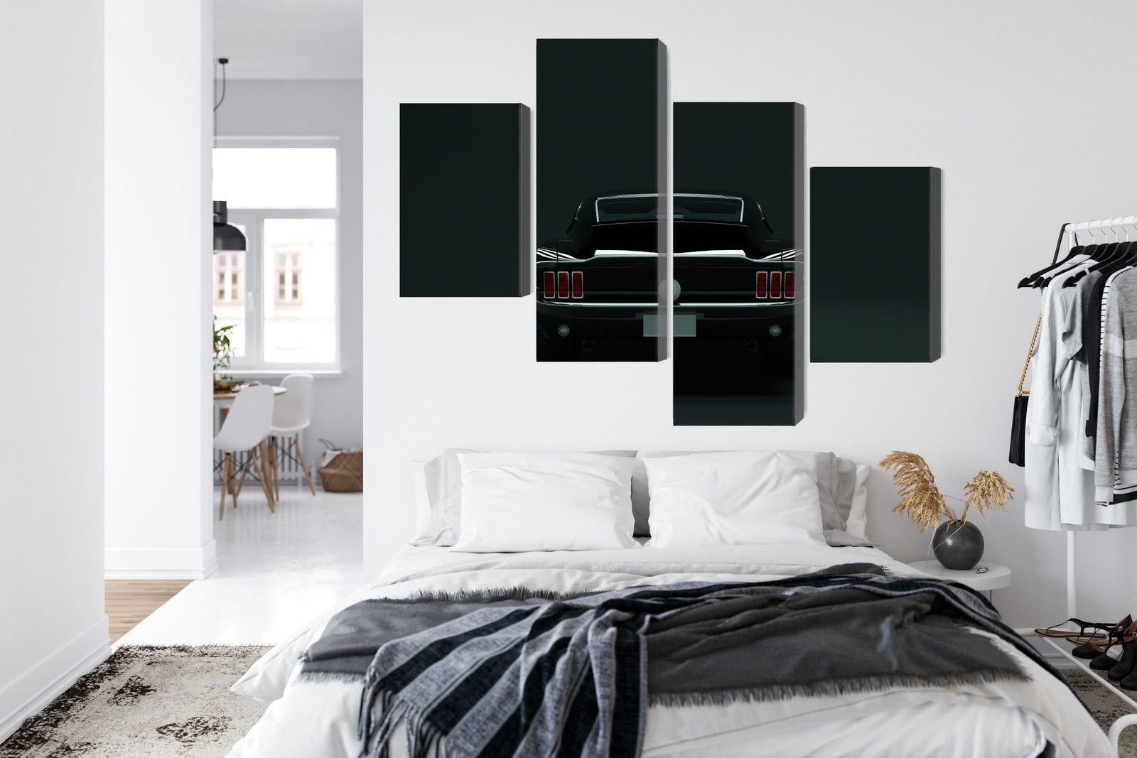 Ljuddämpande tavla – Vintage black muscle car för lugnare rum och mjukare akustik