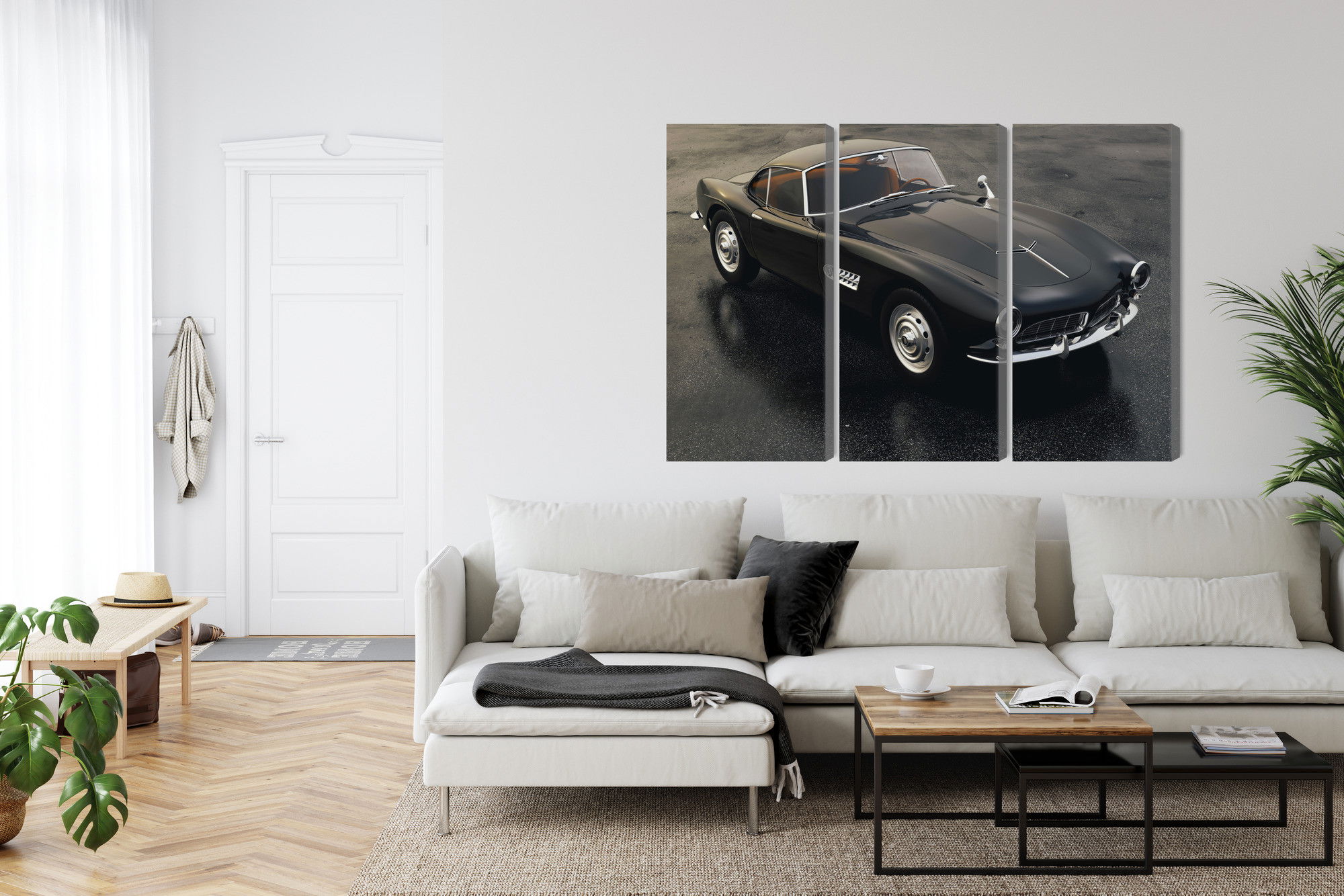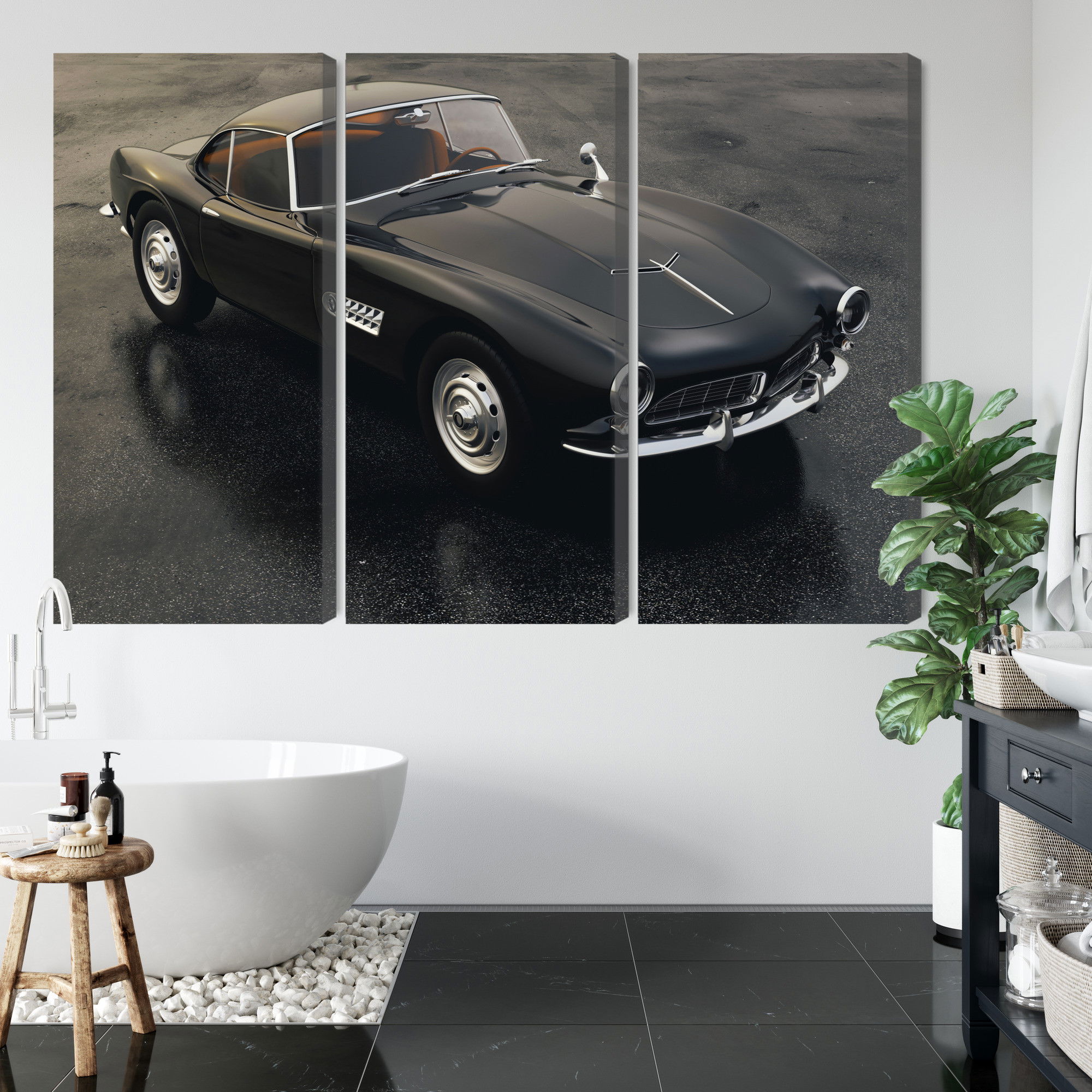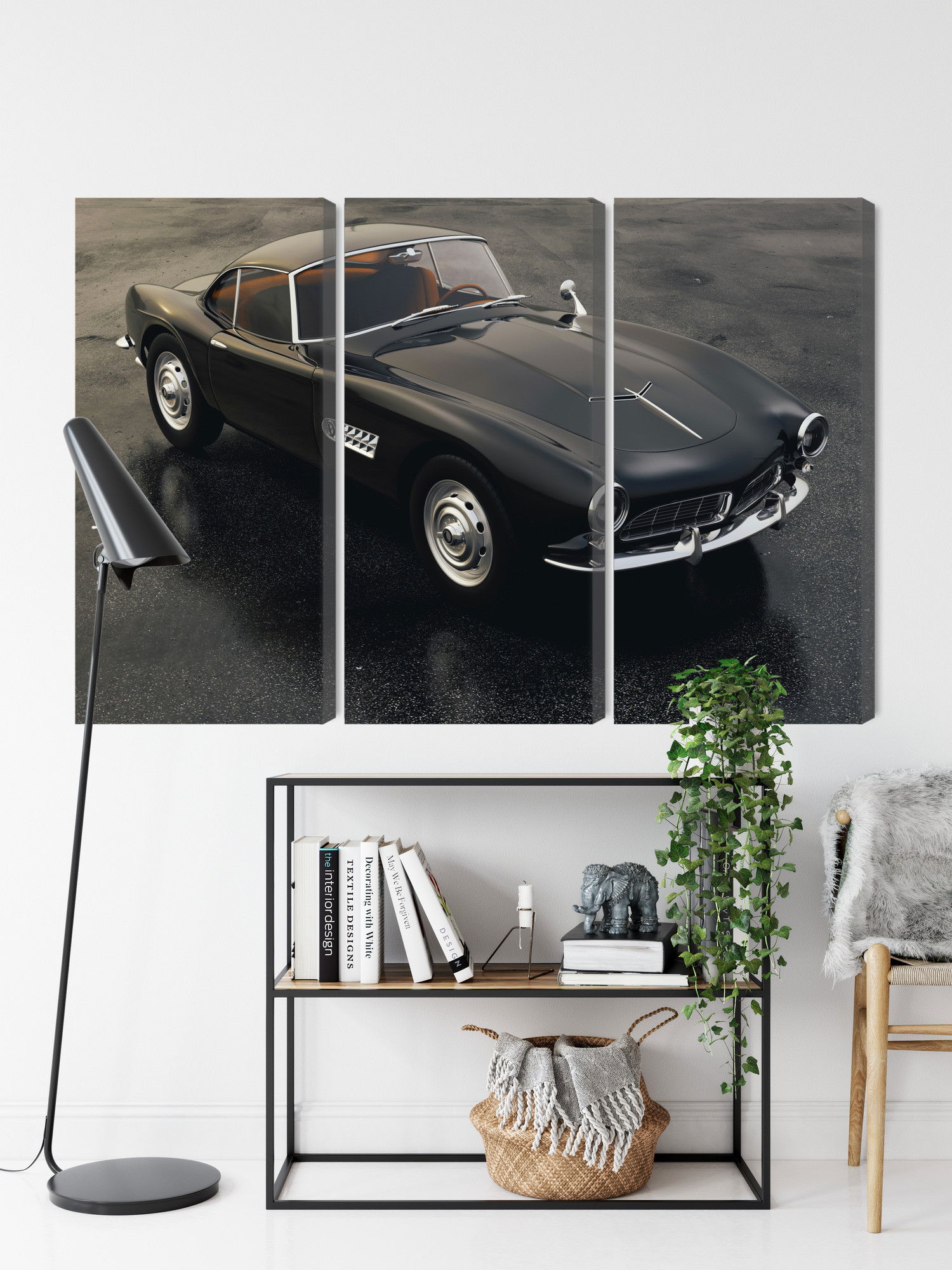 Ljuddämpande tavla – Vintage black sports car för lugnare rum och mjukare akustik