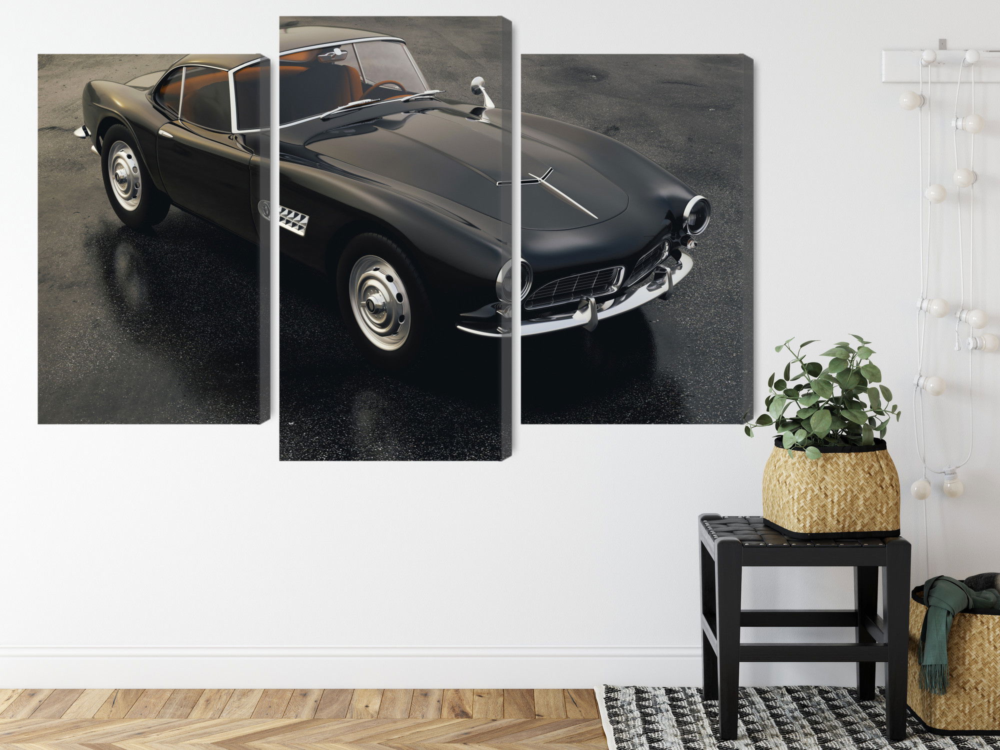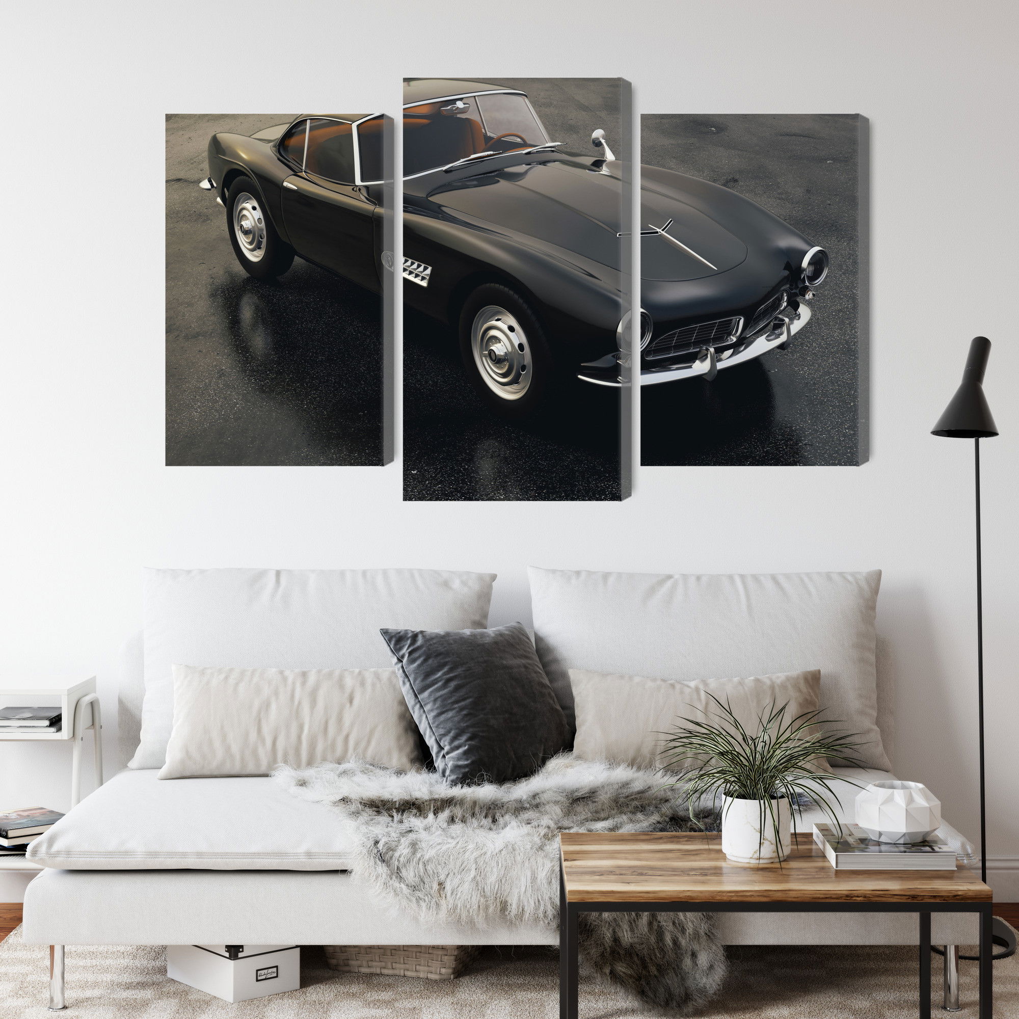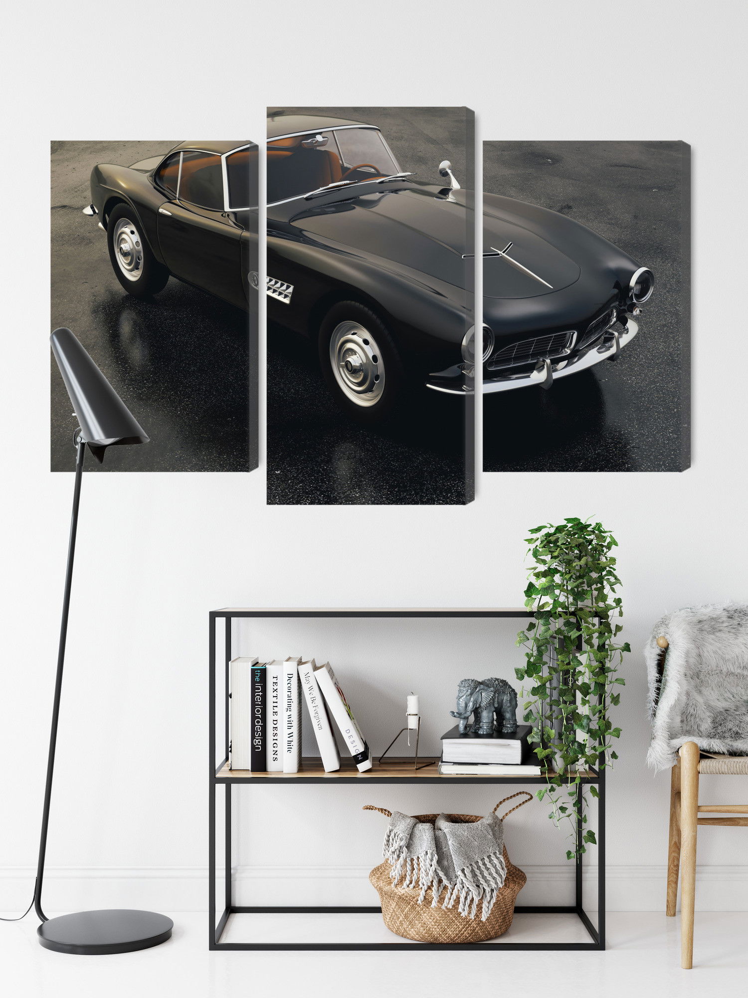 Ljuddämpande tavla – Vintage black sports car för lugnare rum och mjukare akustik