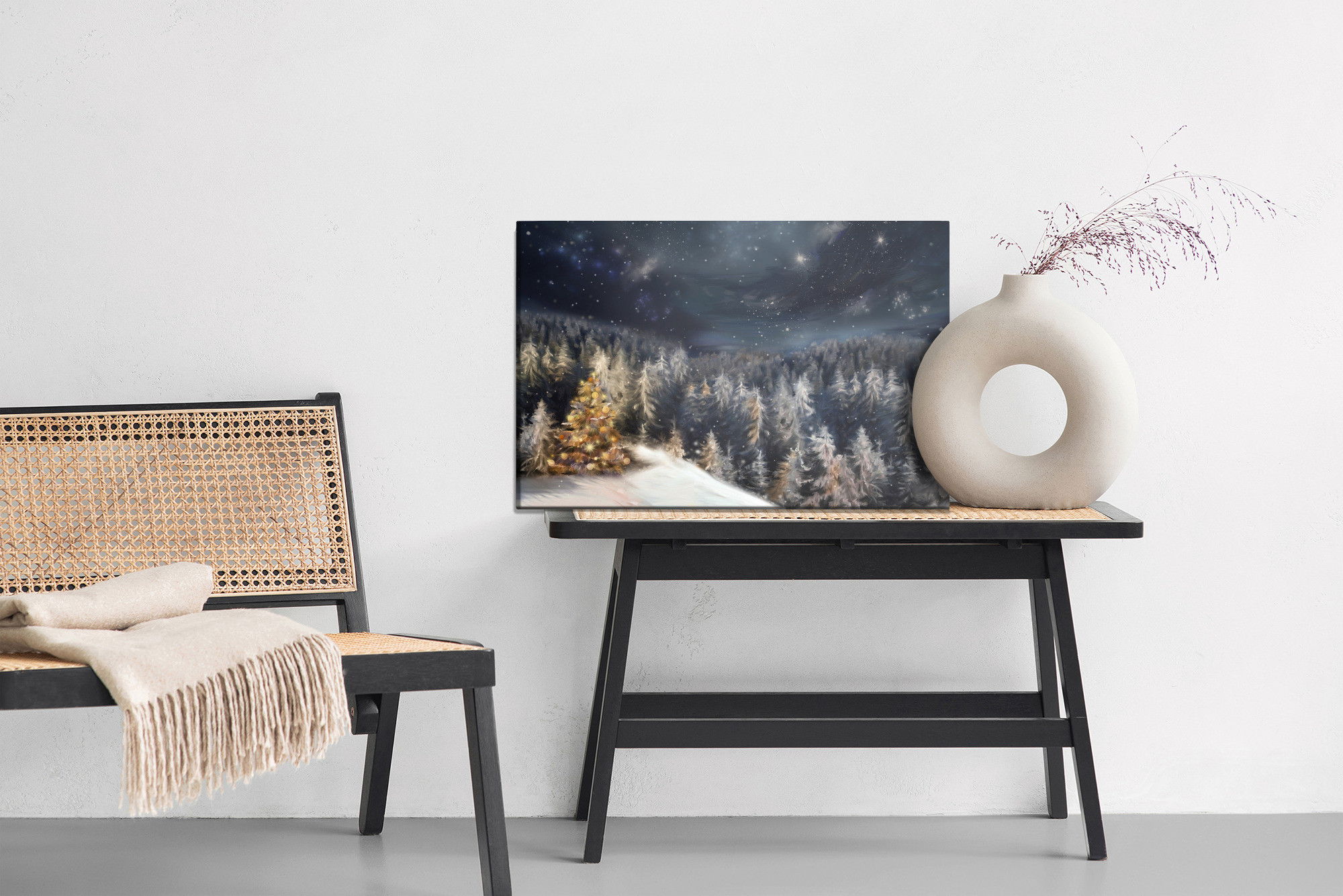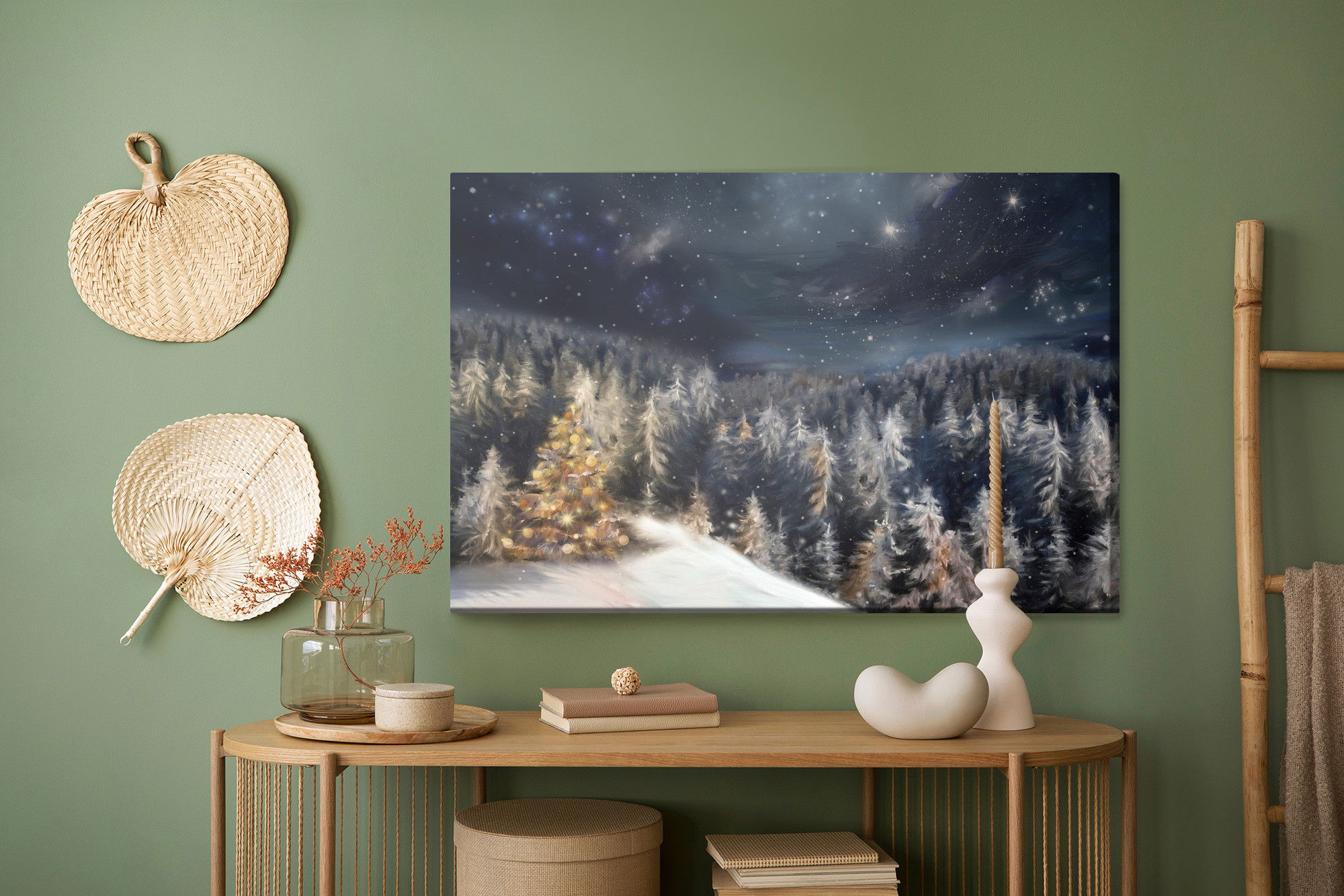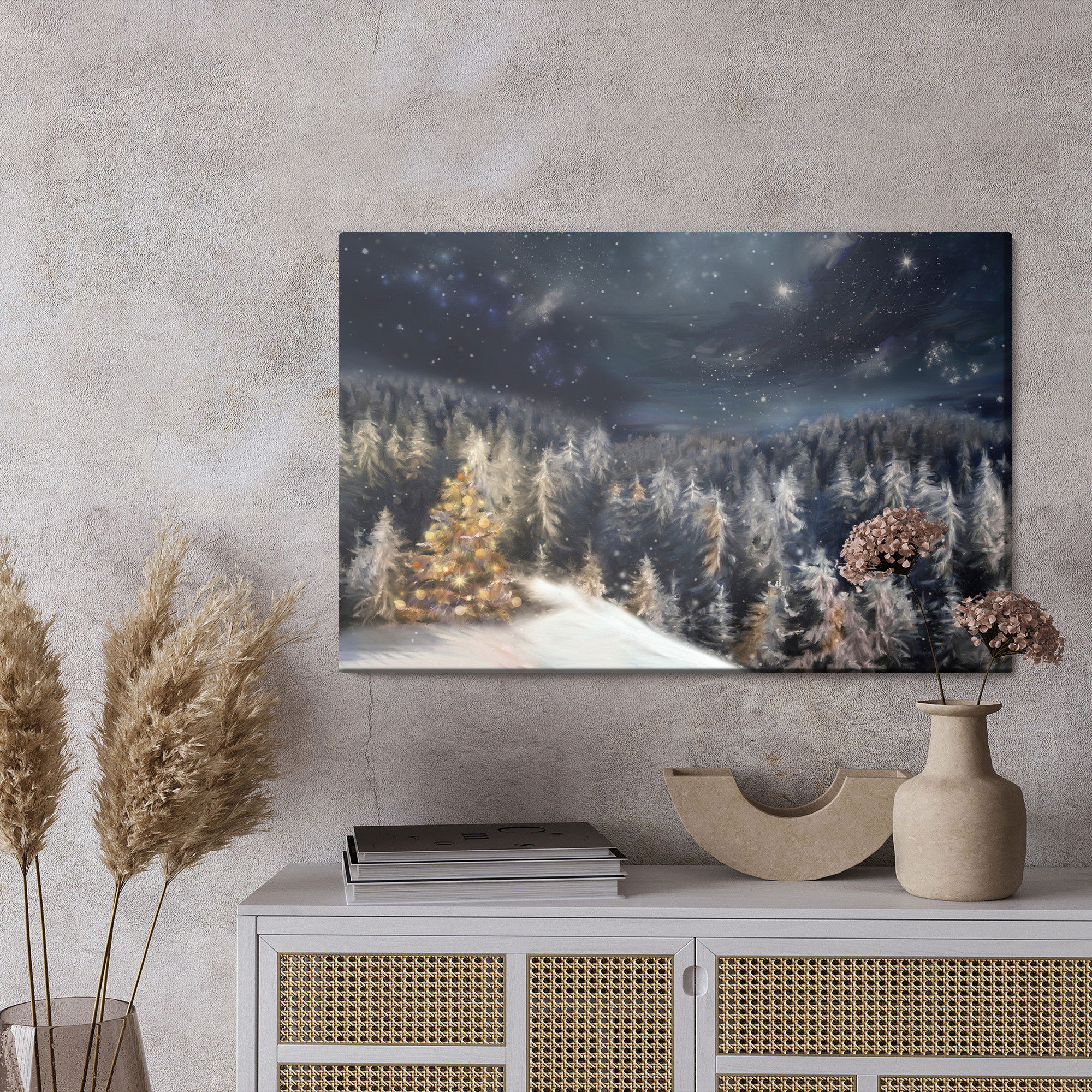 Ljuddämpande tavla – Winter forest at night för lugnare rum och mjukare akustik
