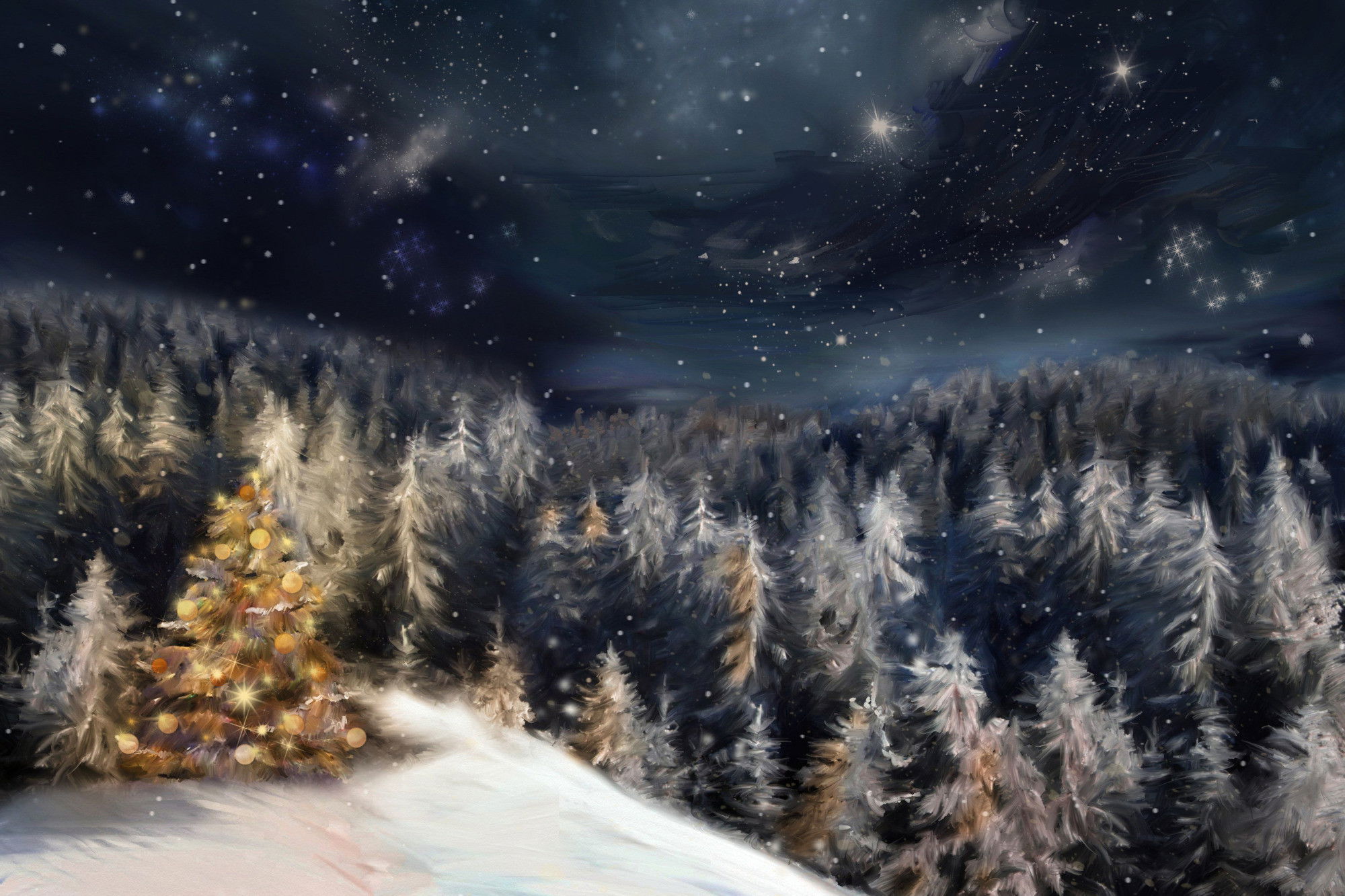 Ljuddämpande tavla - Winter forest at night