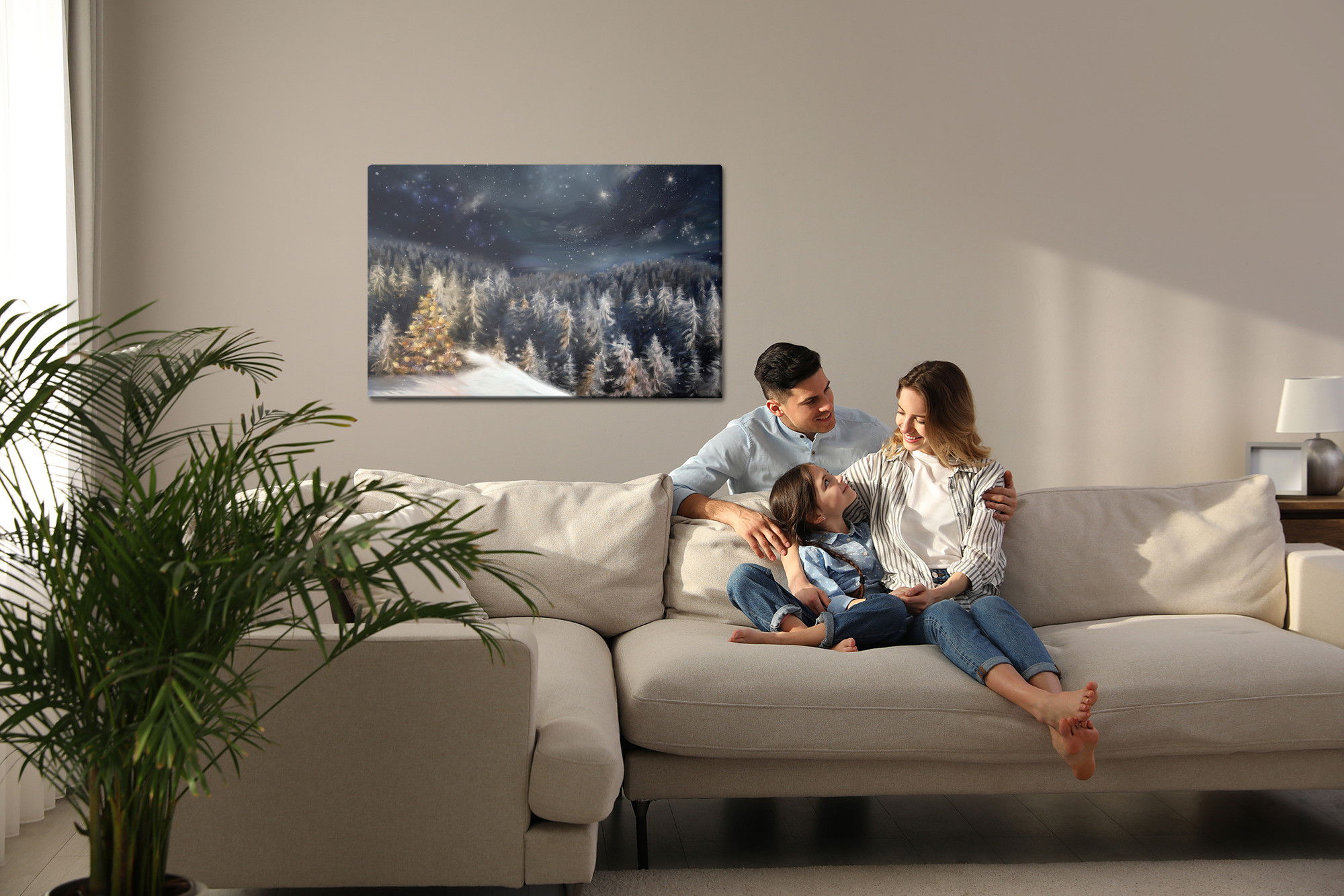 Motivet Winter forest at night återges med hög färgprecision och detaljrikedom tack vare HP Latex-teknologi. Trycket sker med vattenbaserade, luktfria och GREENGUARD Gold-certifierade bläck som ger en upplösning på upp till 300 DPI. Färgerna är UV-beständiga och behåller sin styrka även i ljusa rum, vilket gör tavlan lämplig för både hem- och offentliga miljöer.
