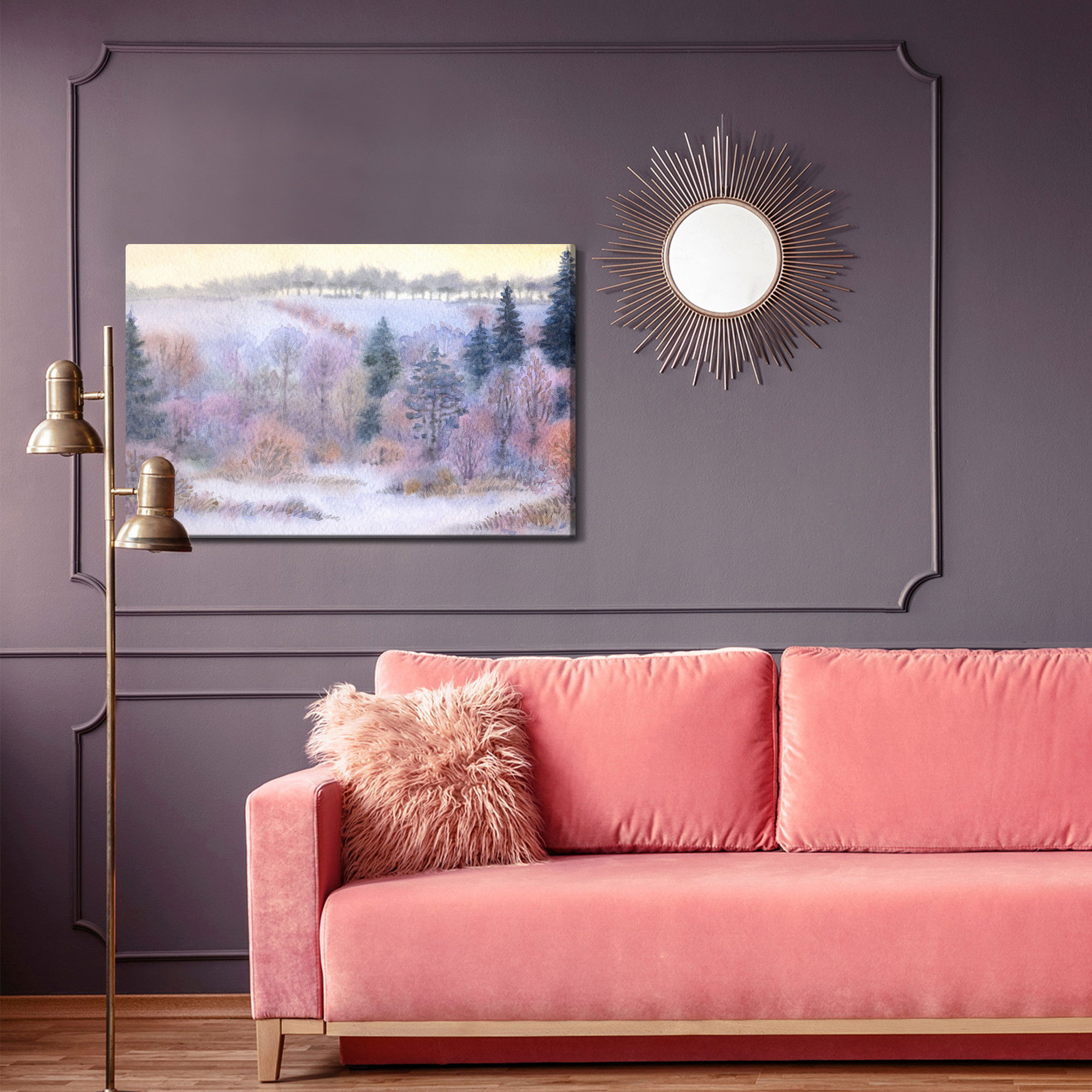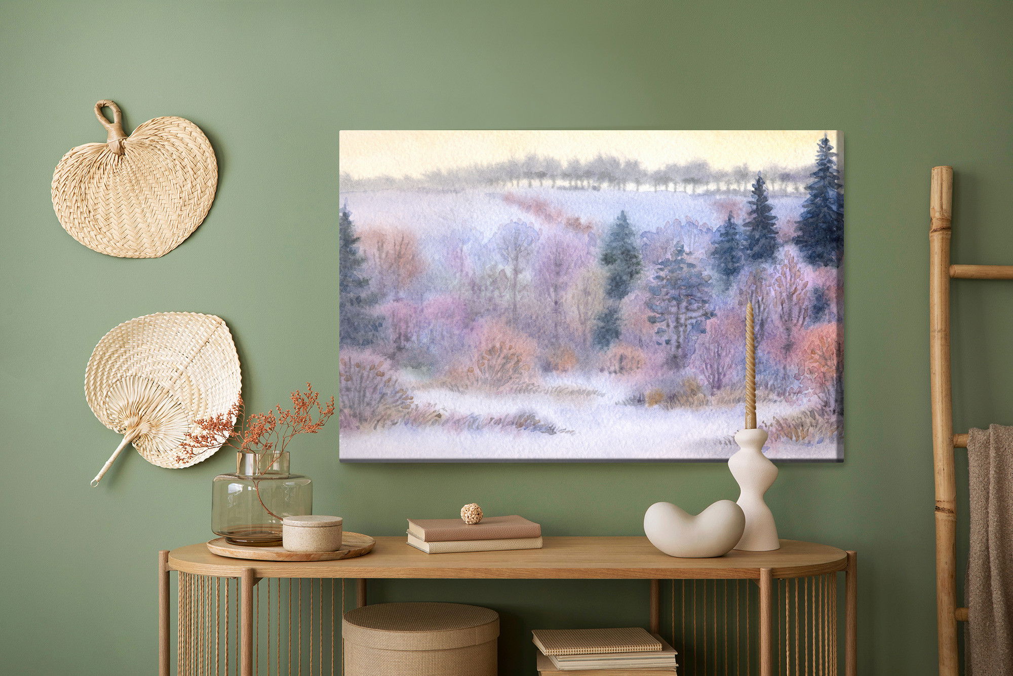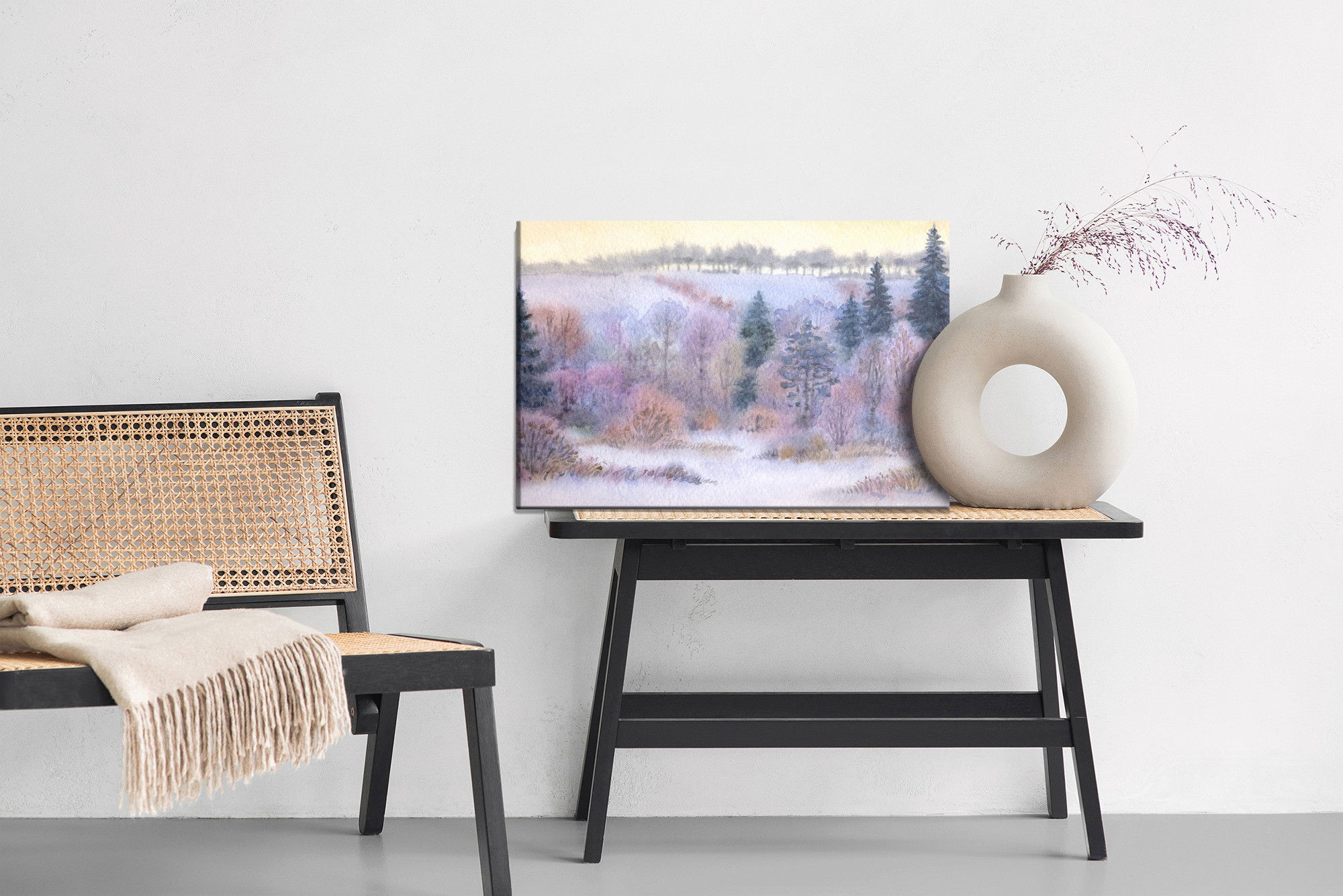 Ljuddämpande tavla – Winter forest in the valley för lugnare rum och mjukare akustik