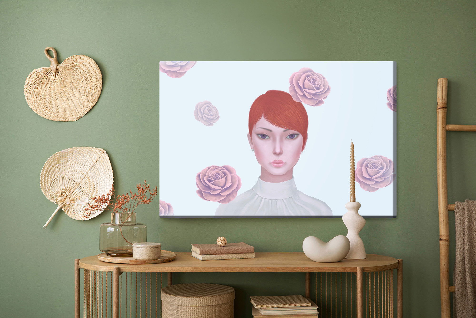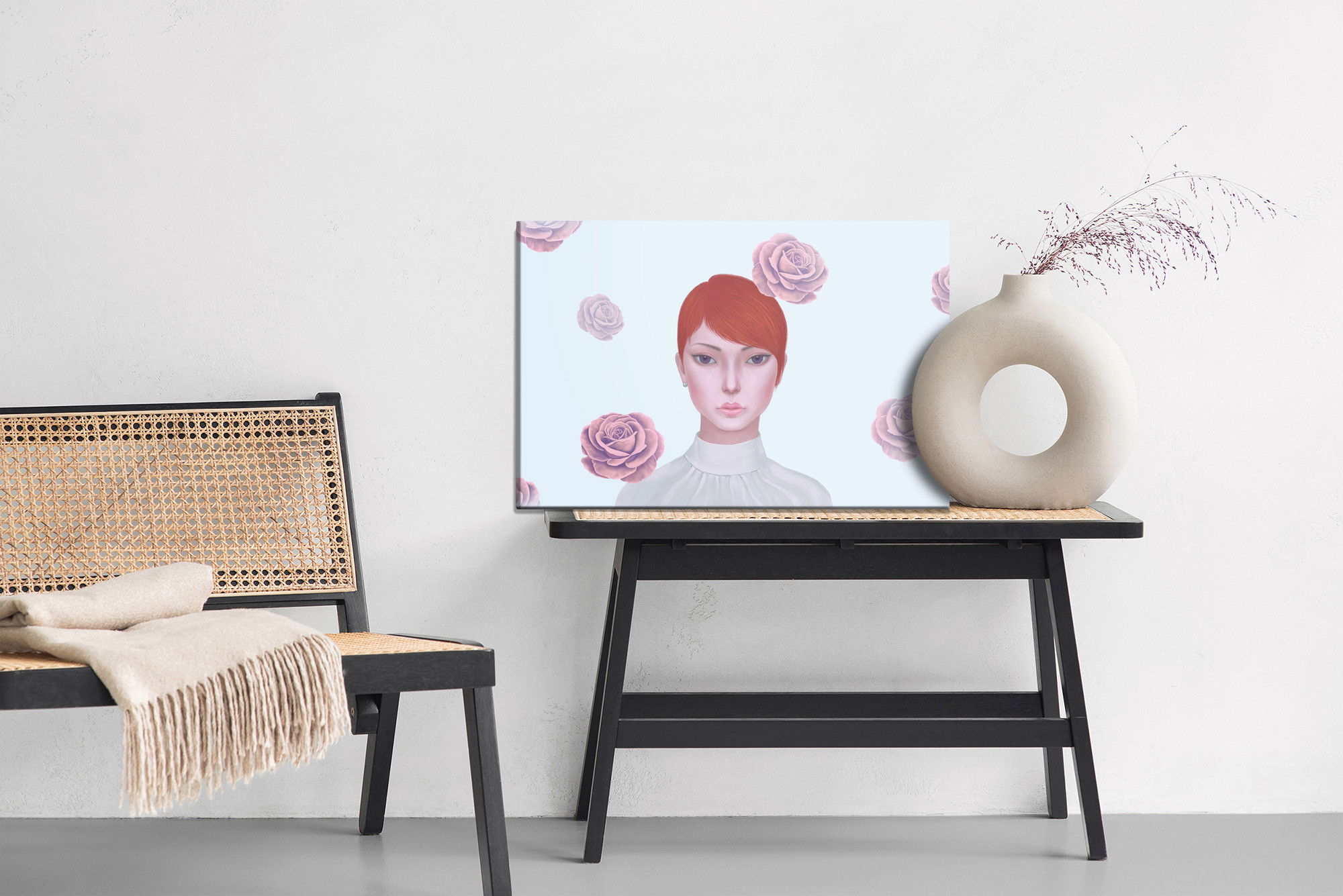Ljuddämpande tavla – Woman and rose flowers för lugnare rum och mjukare akustik