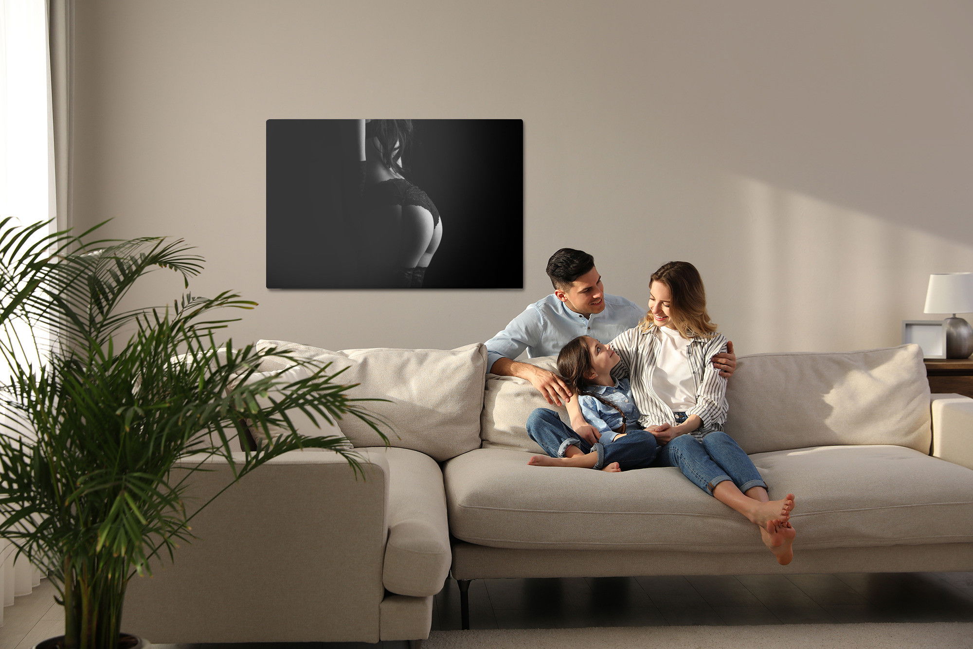 Varje tavla monteras på en massiv fururam. Format upp till 70×50 cm har en ram på 15 mm, medan format från 90×60 cm och uppåt har en ram på 20 mm. Den exakta dukspänningen gör att tavlan håller sin form över tid. Motivet trycks runt hela ramen vilket ger ett stilrent galleriuttryck där tavlan är lika vacker från sidan som framifrån. Kombinationen av rak dukspänning, rena linjer och korrekt tryck ger en professionell finish.