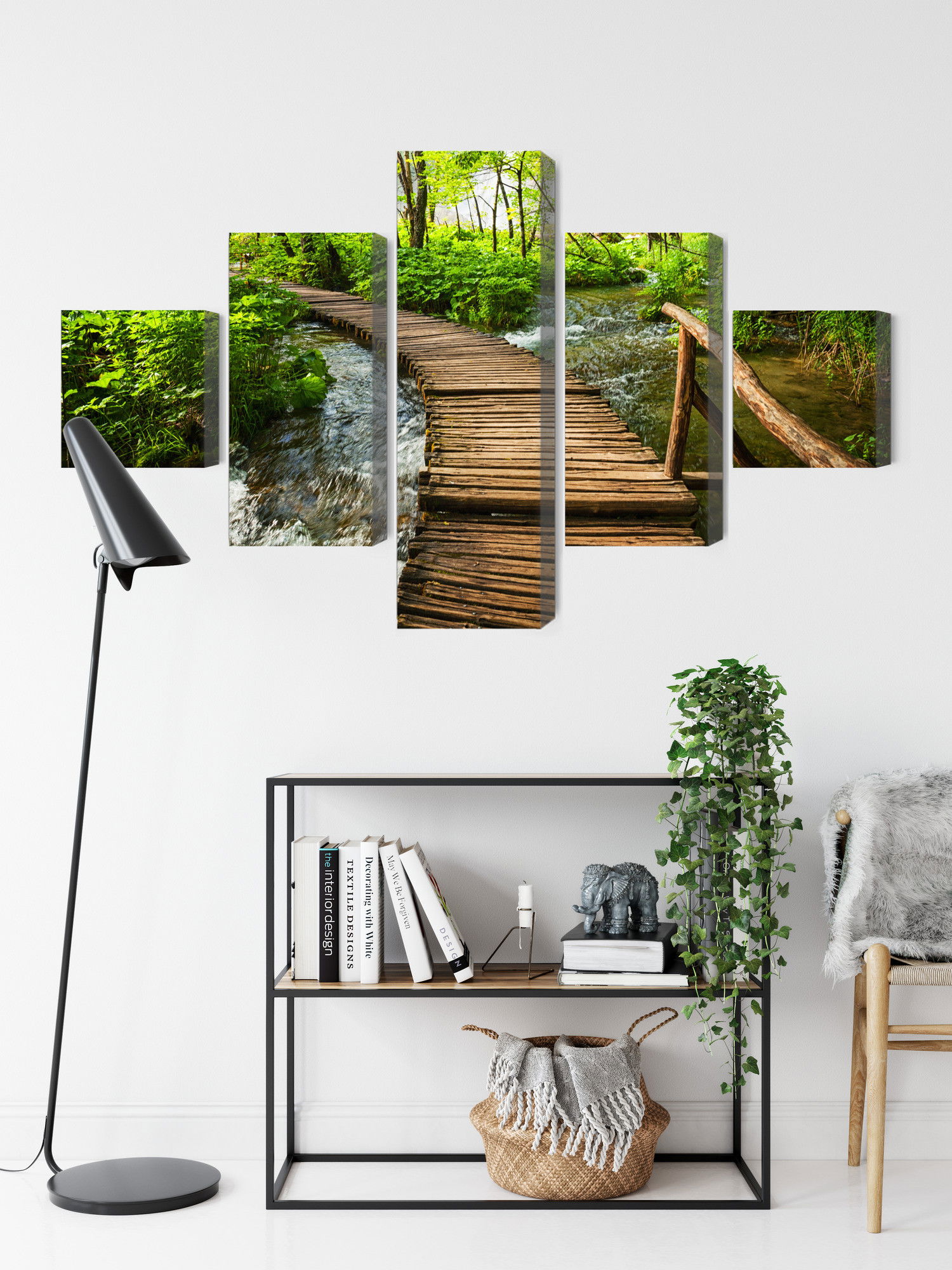 Ljuddämpande tavla – Wooden pier in the forest för lugnare rum och mjukare akustik