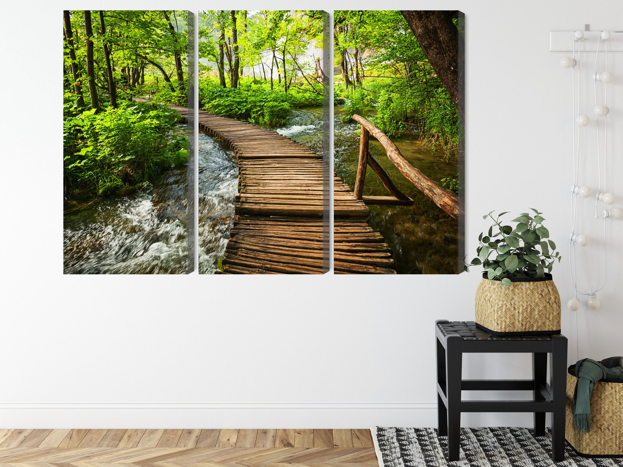 Motivet Wooden pier in the forest återges med hög färgprecision och detaljrikedom tack vare HP Latex-teknologi. Trycket sker med vattenbaserade, luktfria och GREENGUARD Gold-certifierade bläck som ger en upplösning på upp till 300 DPI. Färgerna är UV-beständiga och behåller sin styrka även i ljusa rum, vilket gör tavlan lämplig för både hem- och offentliga miljöer.