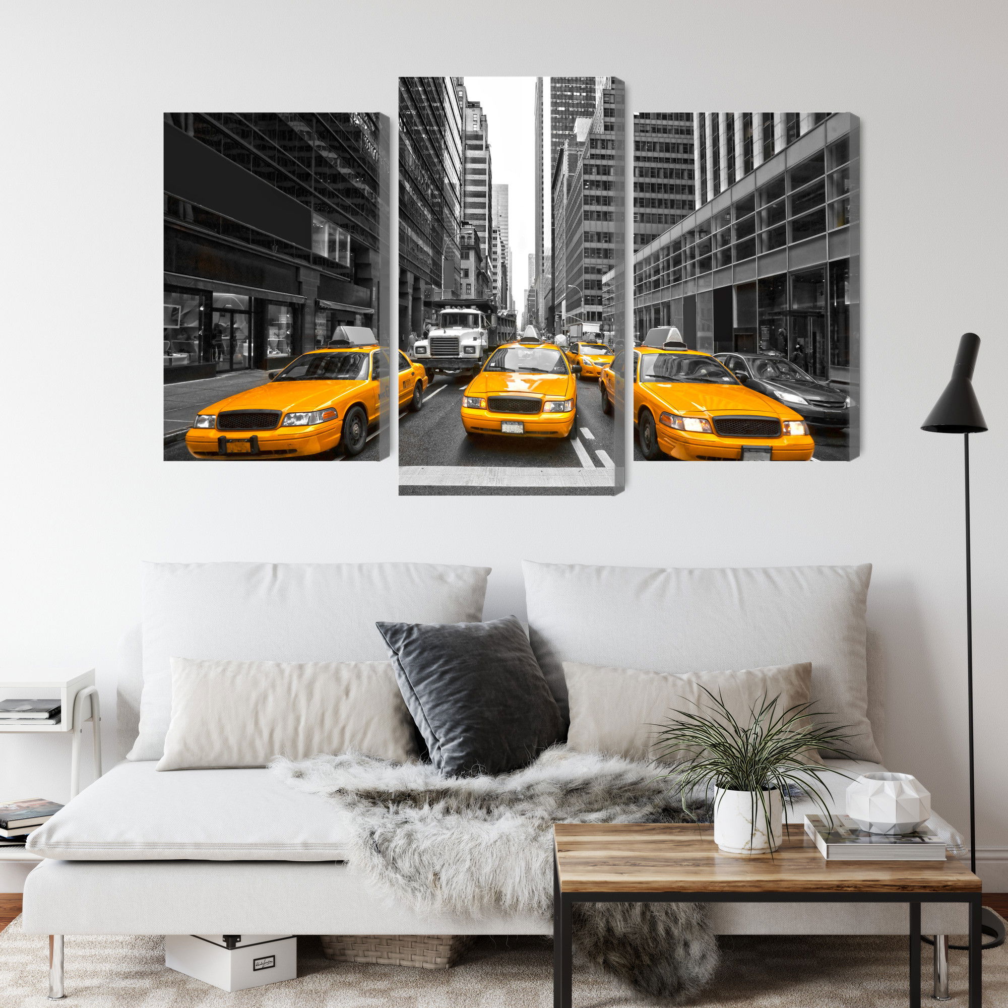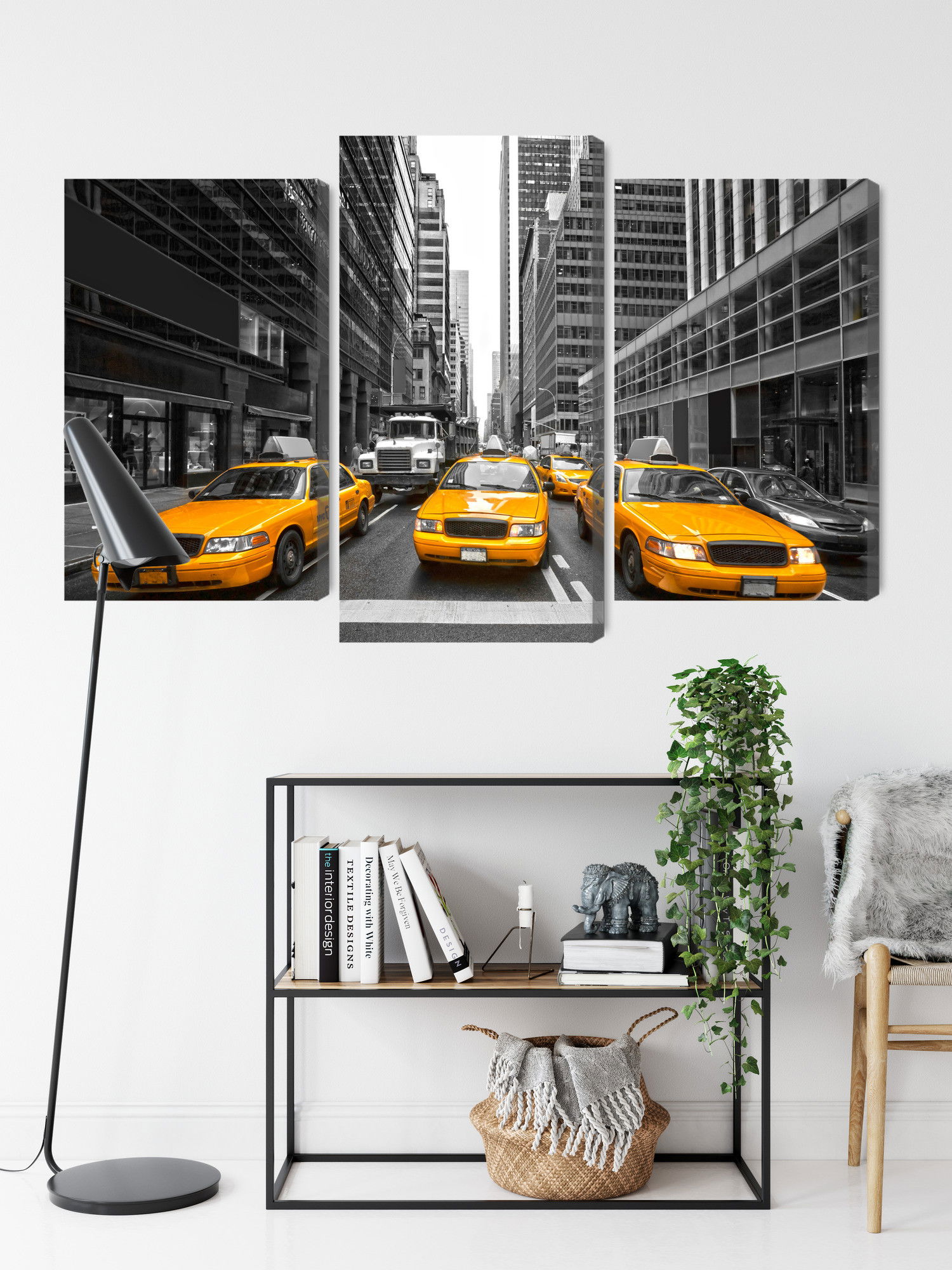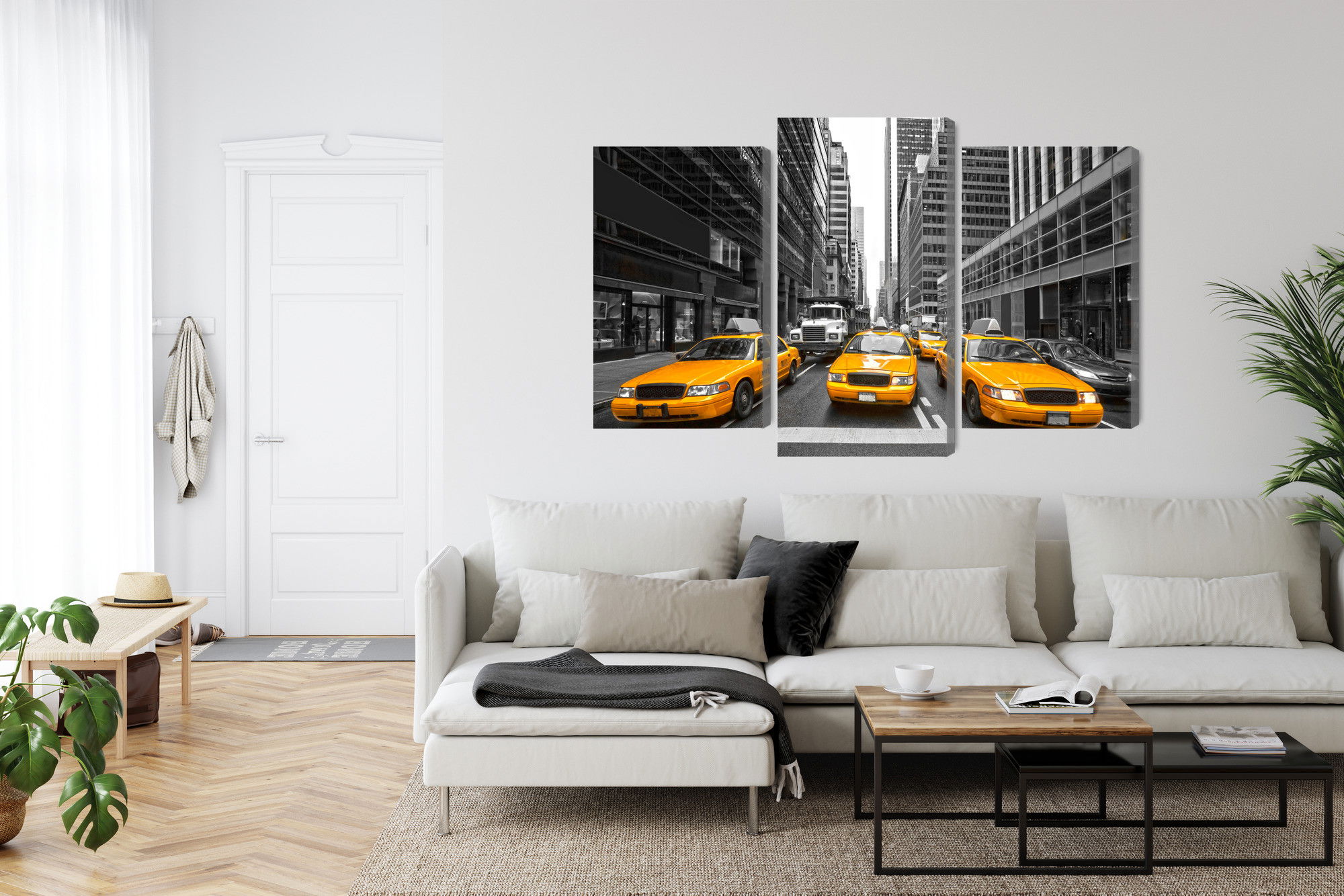 Ljuddämpande tavla – Yellow taxis in New York city för lugnare rum och mjukare akustik