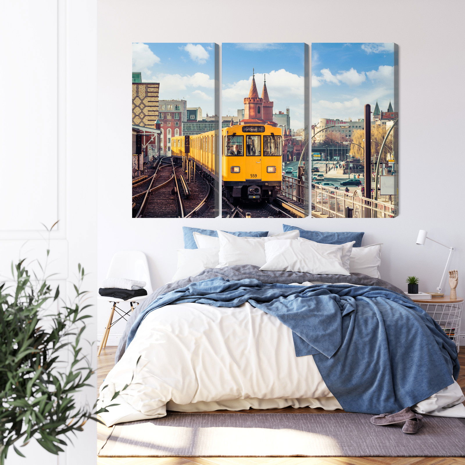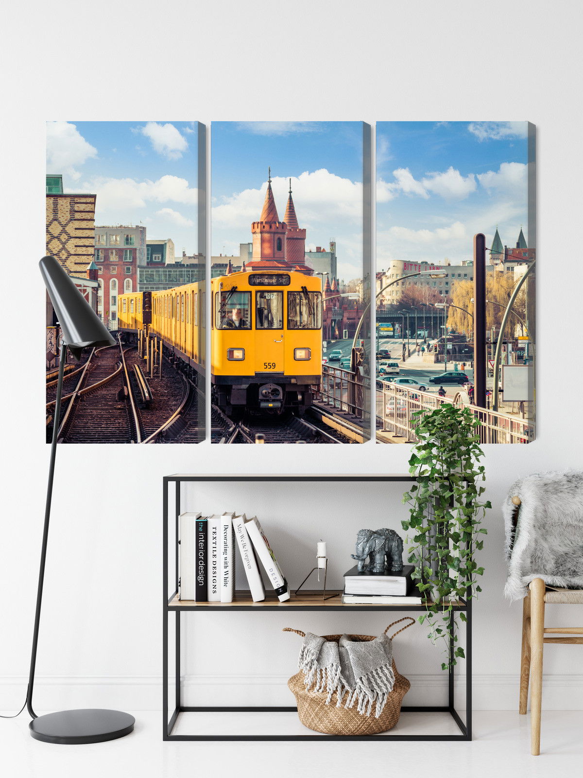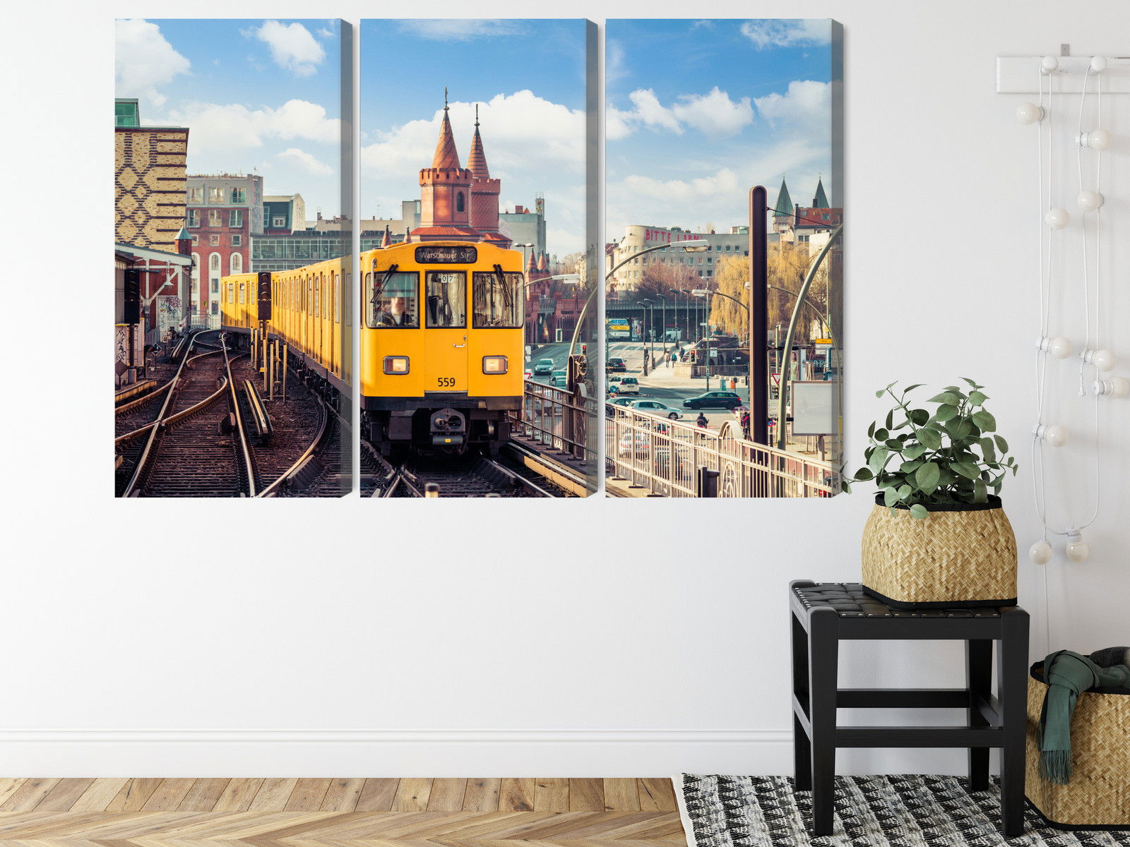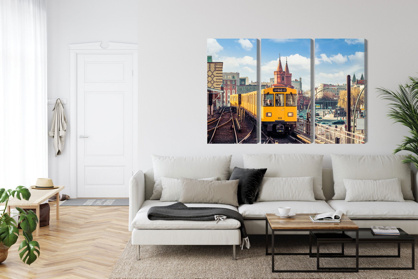 Ljuddämpande tavla – Yellow train in berlin för lugnare rum och mjukare akustik