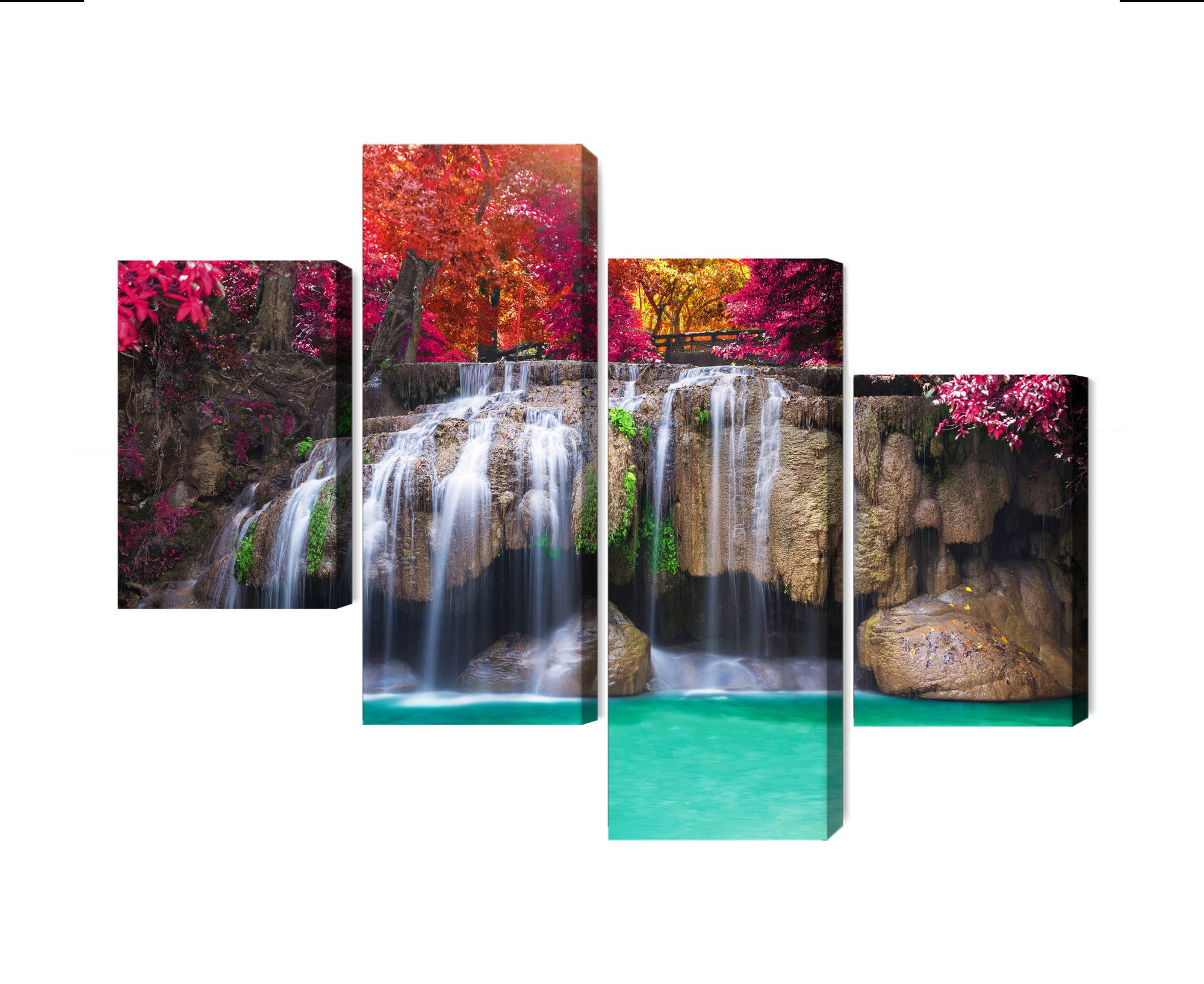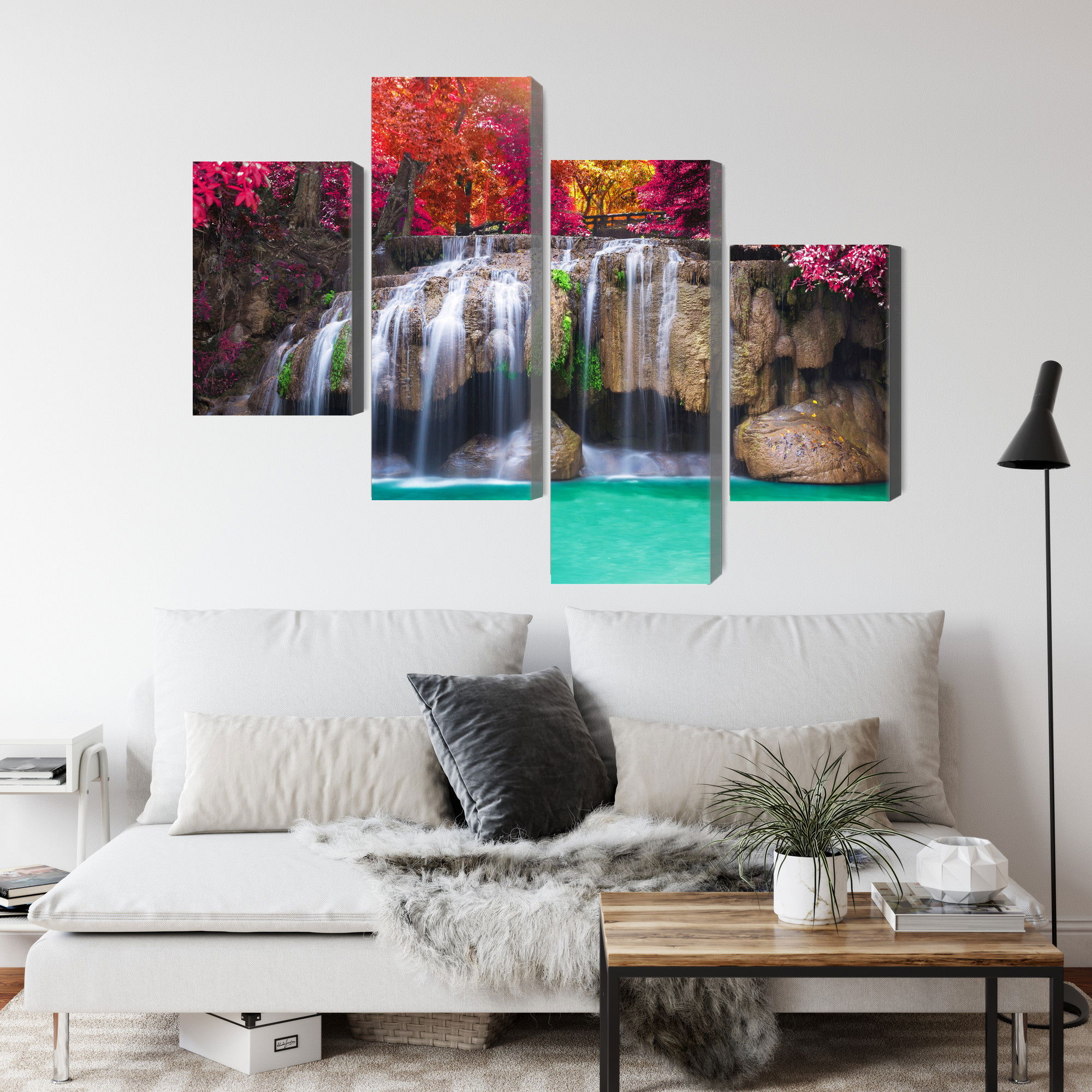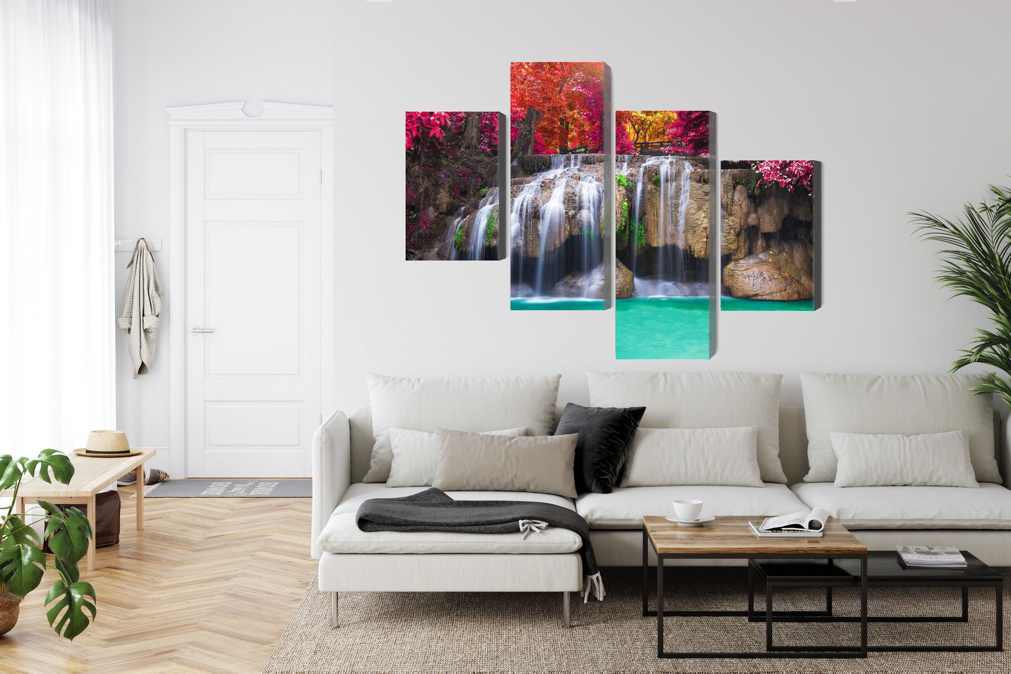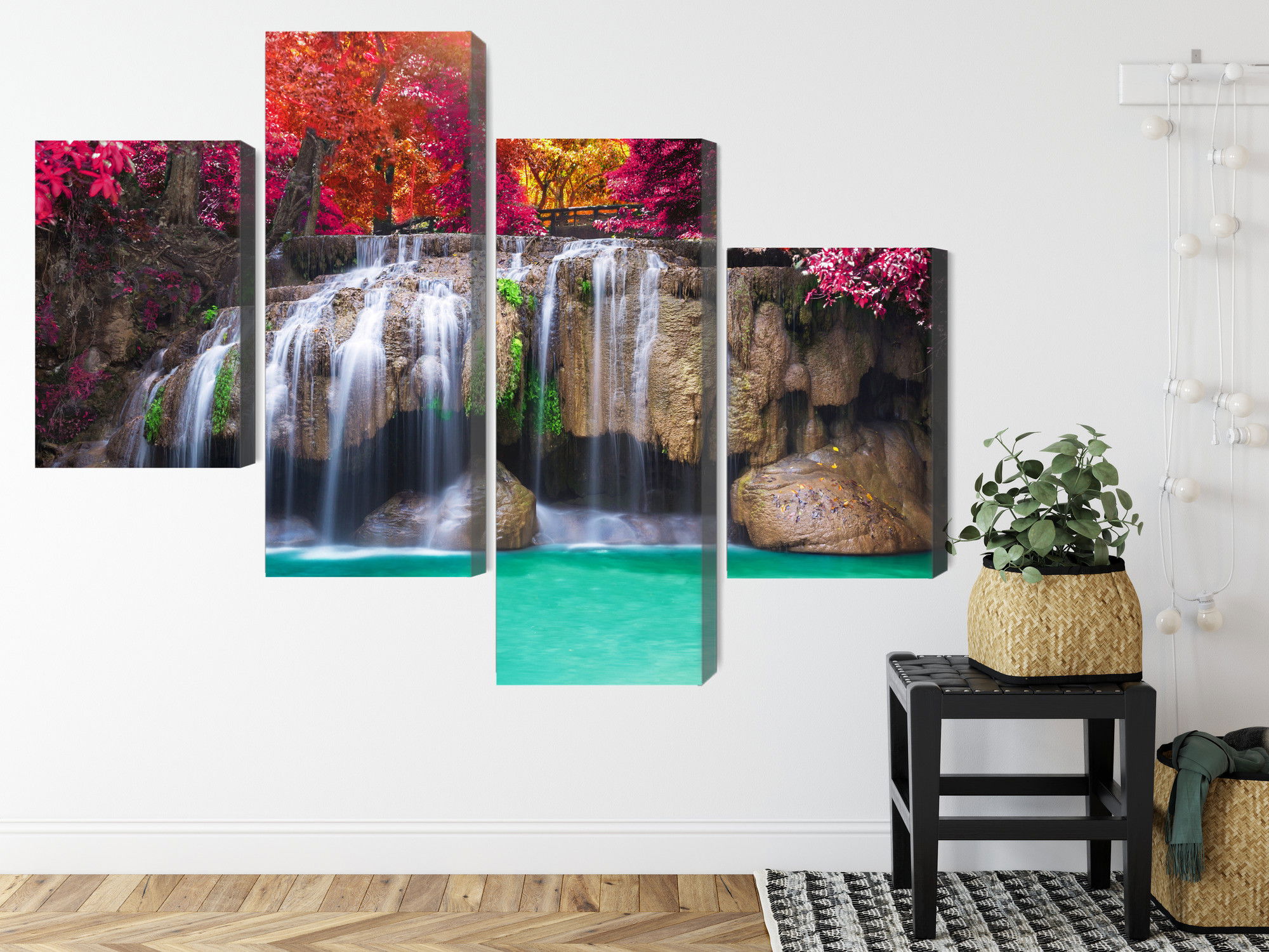 Motivet A waterfall in the deep återges med hög färgprecision och detaljrikedom tack vare HP Latex-teknologi. Trycket sker med vattenbaserade, luktfria och GREENGUARD Gold-certifierade bläck som ger en upplösning på upp till 300 DPI. Färgerna är UV-beständiga och behåller sin styrka även i ljusa rum, vilket gör tavlan lämplig för både hem- och offentliga miljöer.