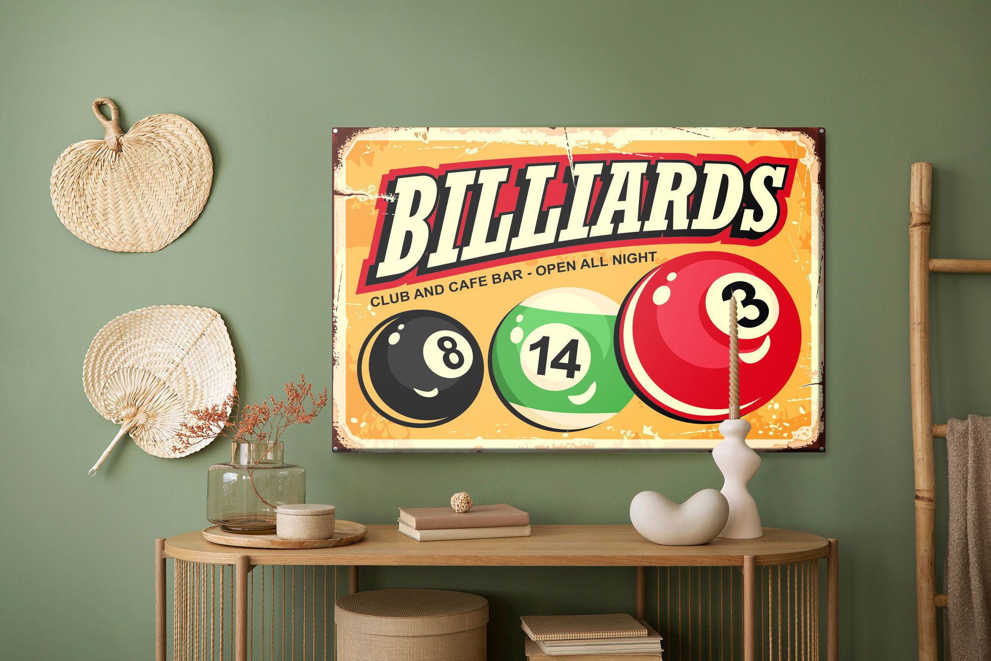 Ljuddämpande tavla – Billiard balls and retro för lugnare rum och mjukare akustik