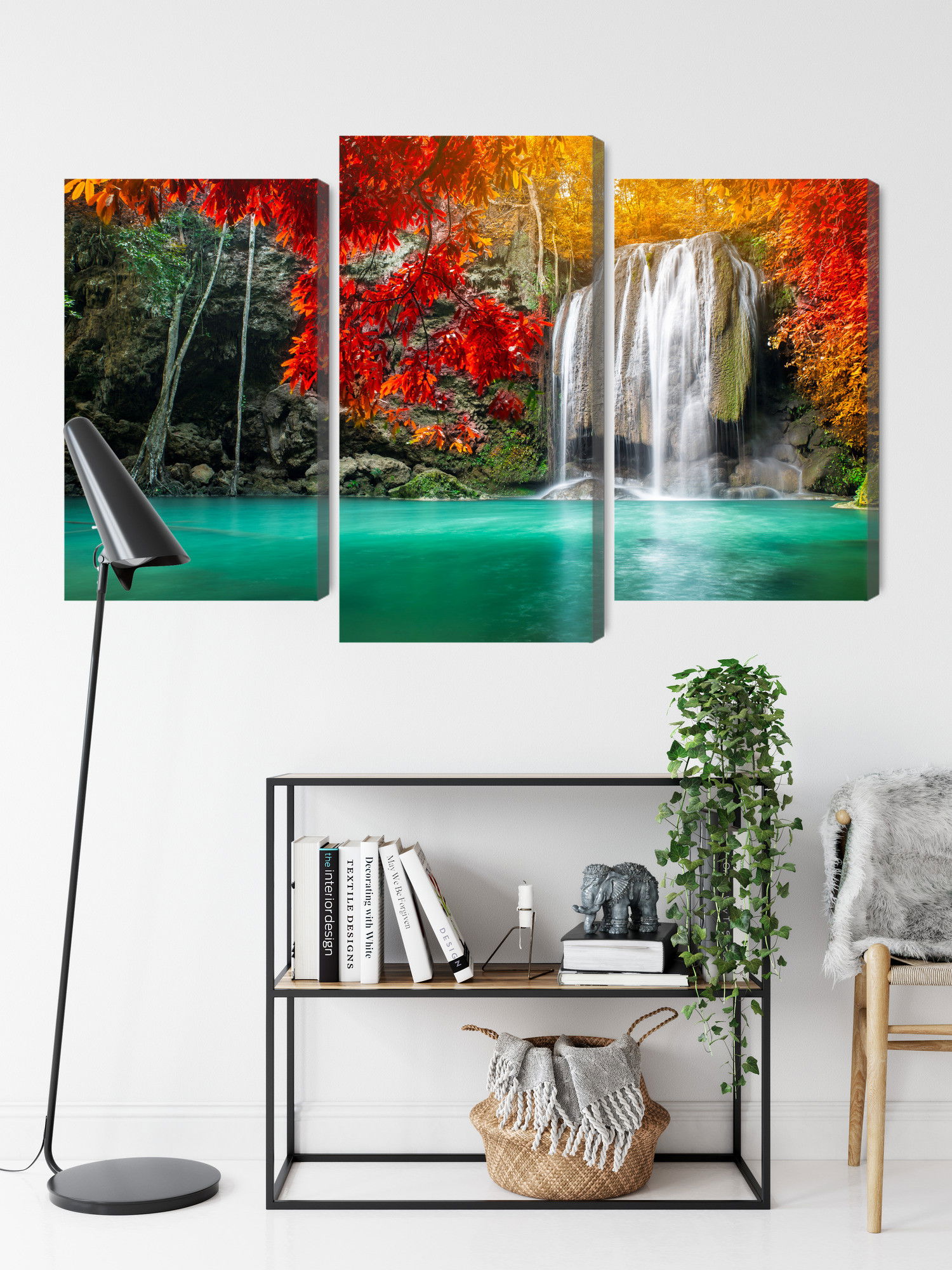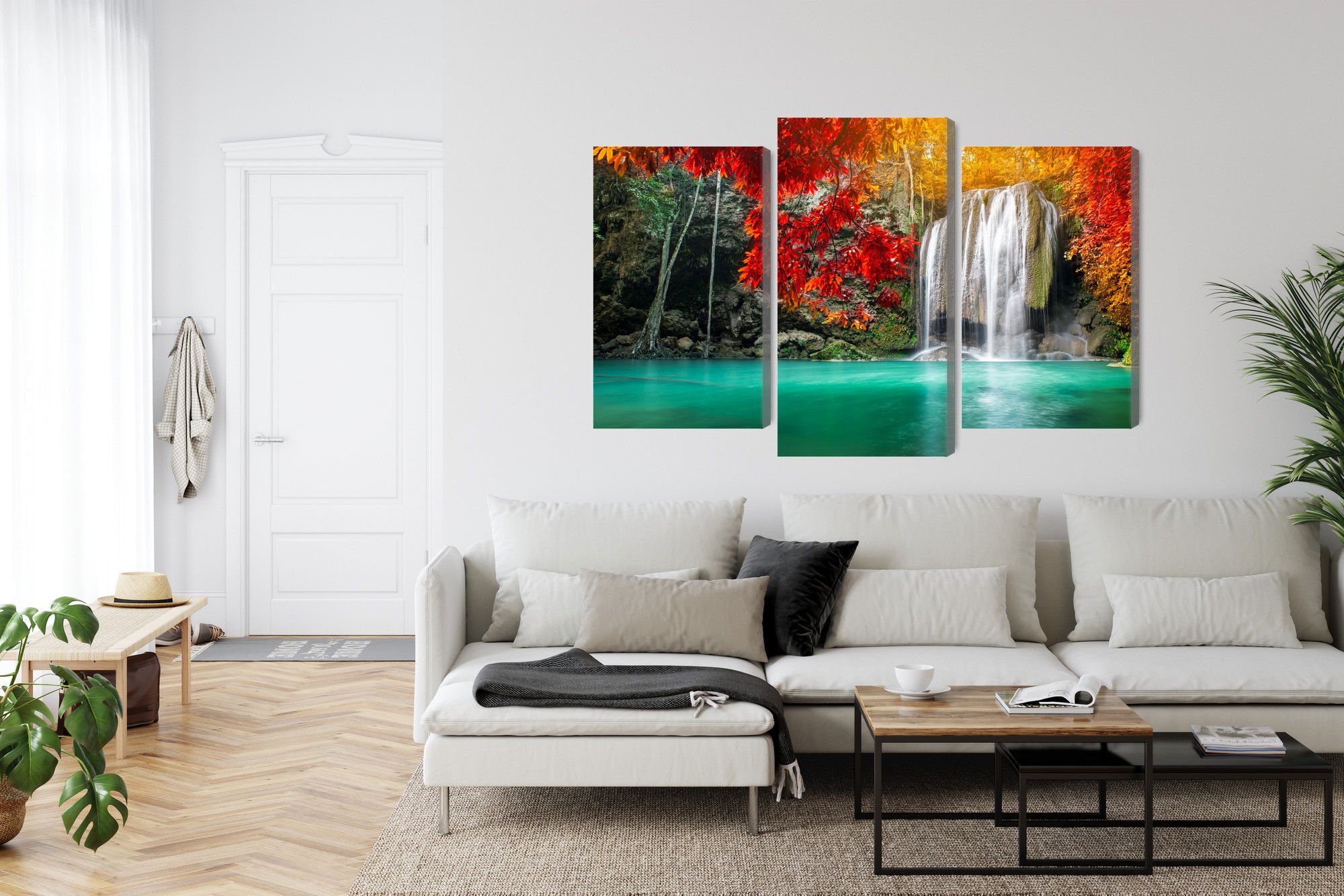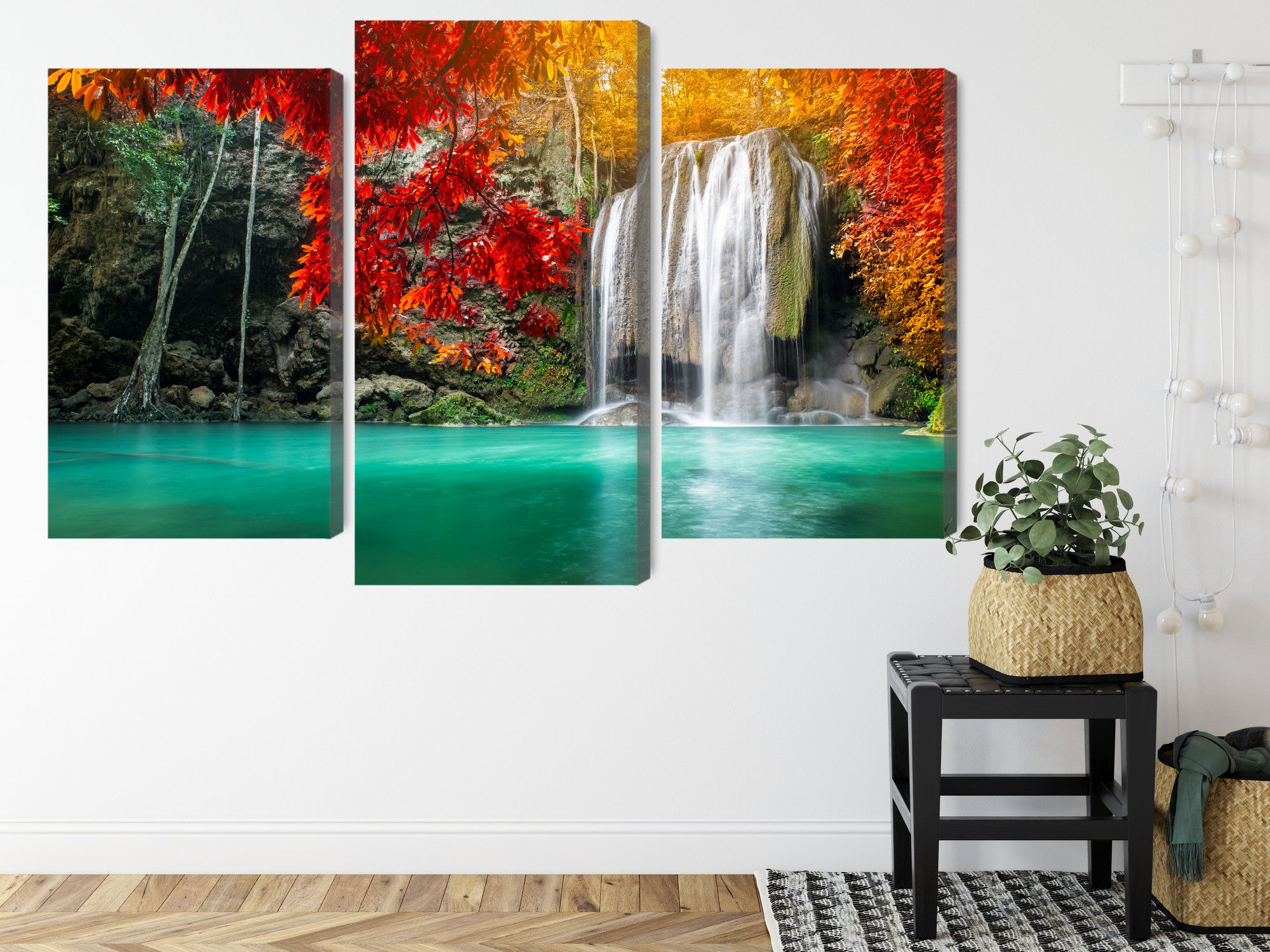 Ljuddämpande tavla – Cascade in the autumn forest för lugnare rum och mjukare akustik
