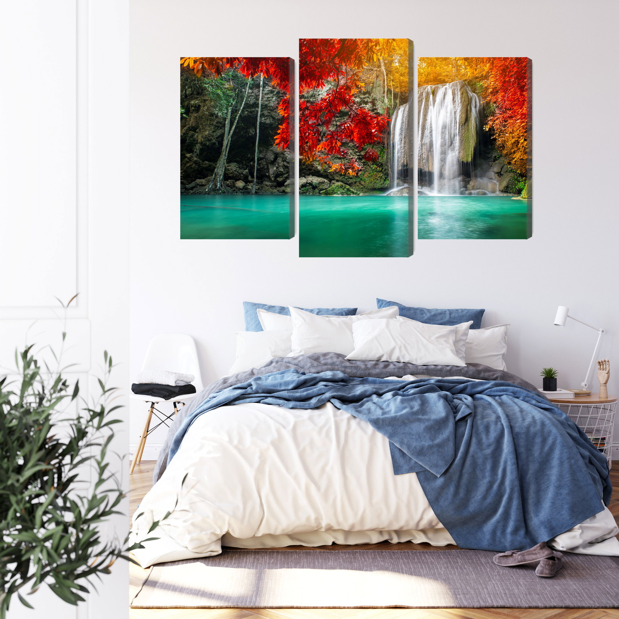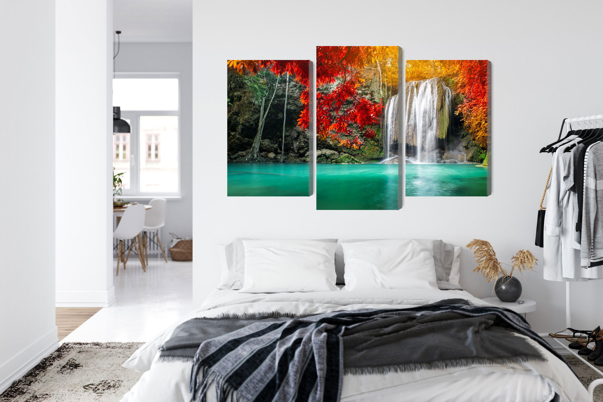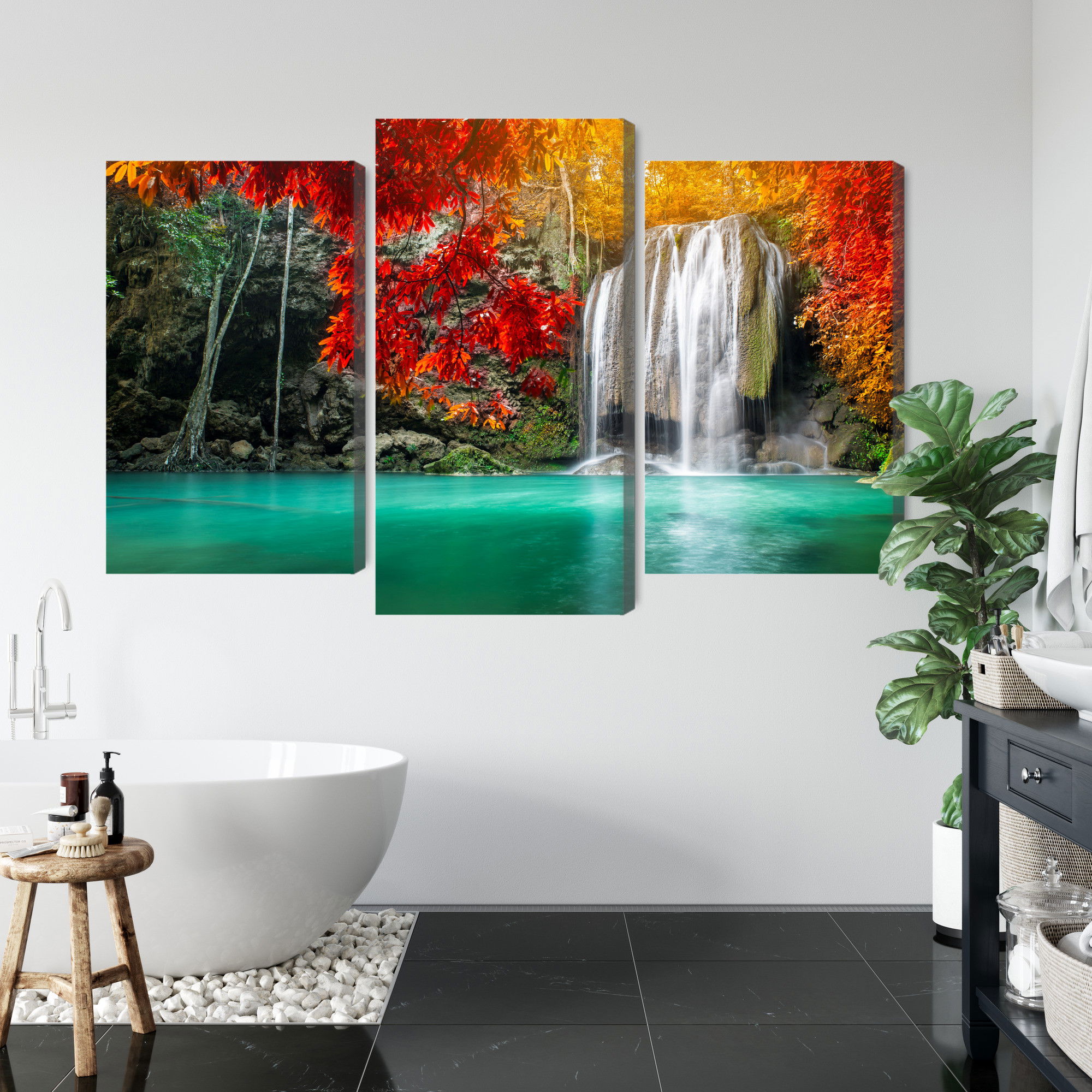Ljuddämpande tavla – Cascade in the autumn forest för lugnare rum och mjukare akustik