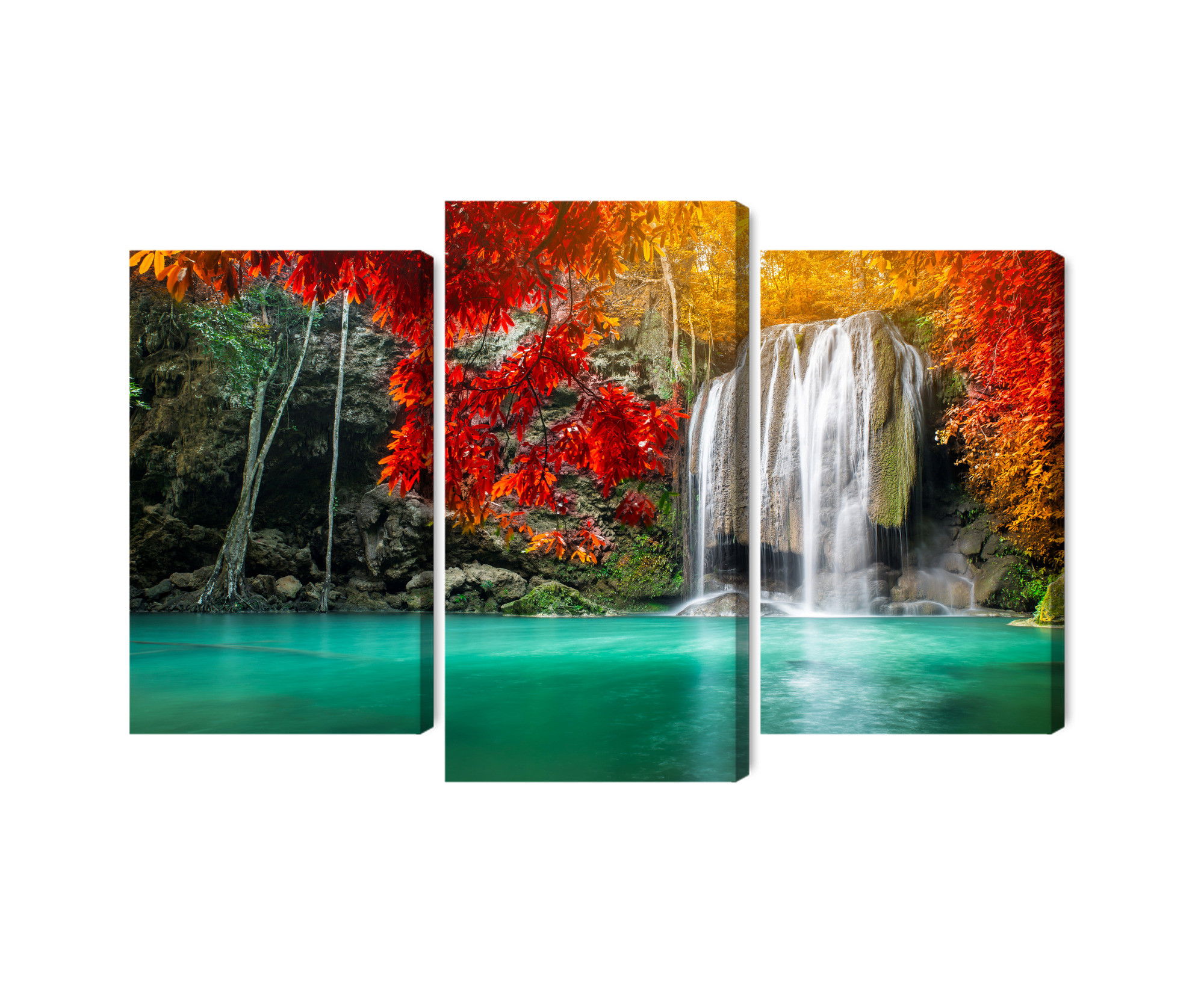 Motivet Cascade in the autumn forest återges med hög färgprecision och detaljrikedom tack vare HP Latex-teknologi. Trycket sker med vattenbaserade, luktfria och GREENGUARD Gold-certifierade bläck som ger en upplösning på upp till 300 DPI. Färgerna är UV-beständiga och behåller sin styrka även i ljusa rum, vilket gör tavlan lämplig för både hem- och offentliga miljöer.