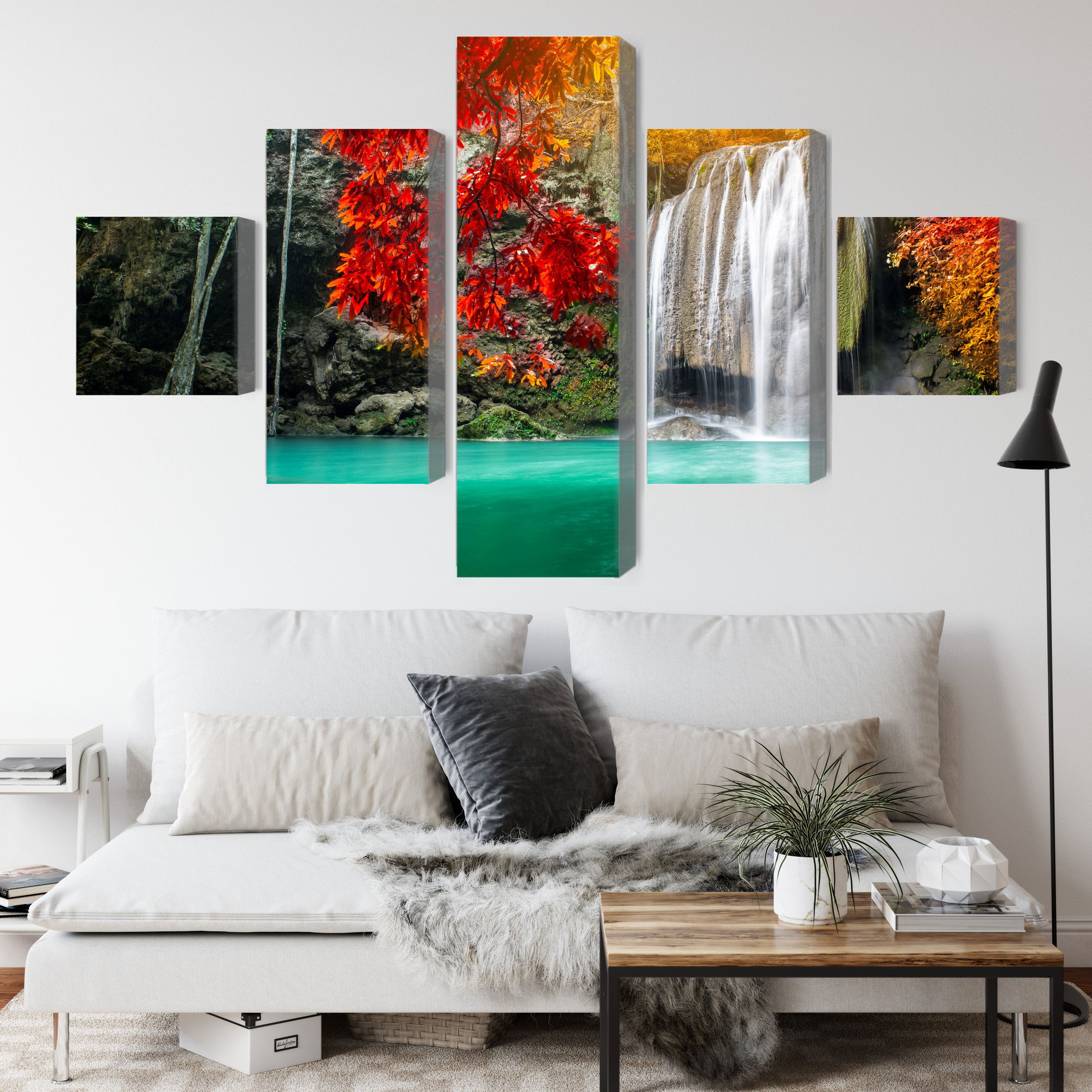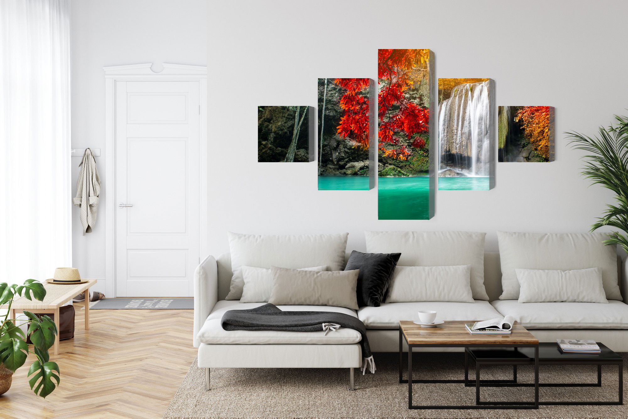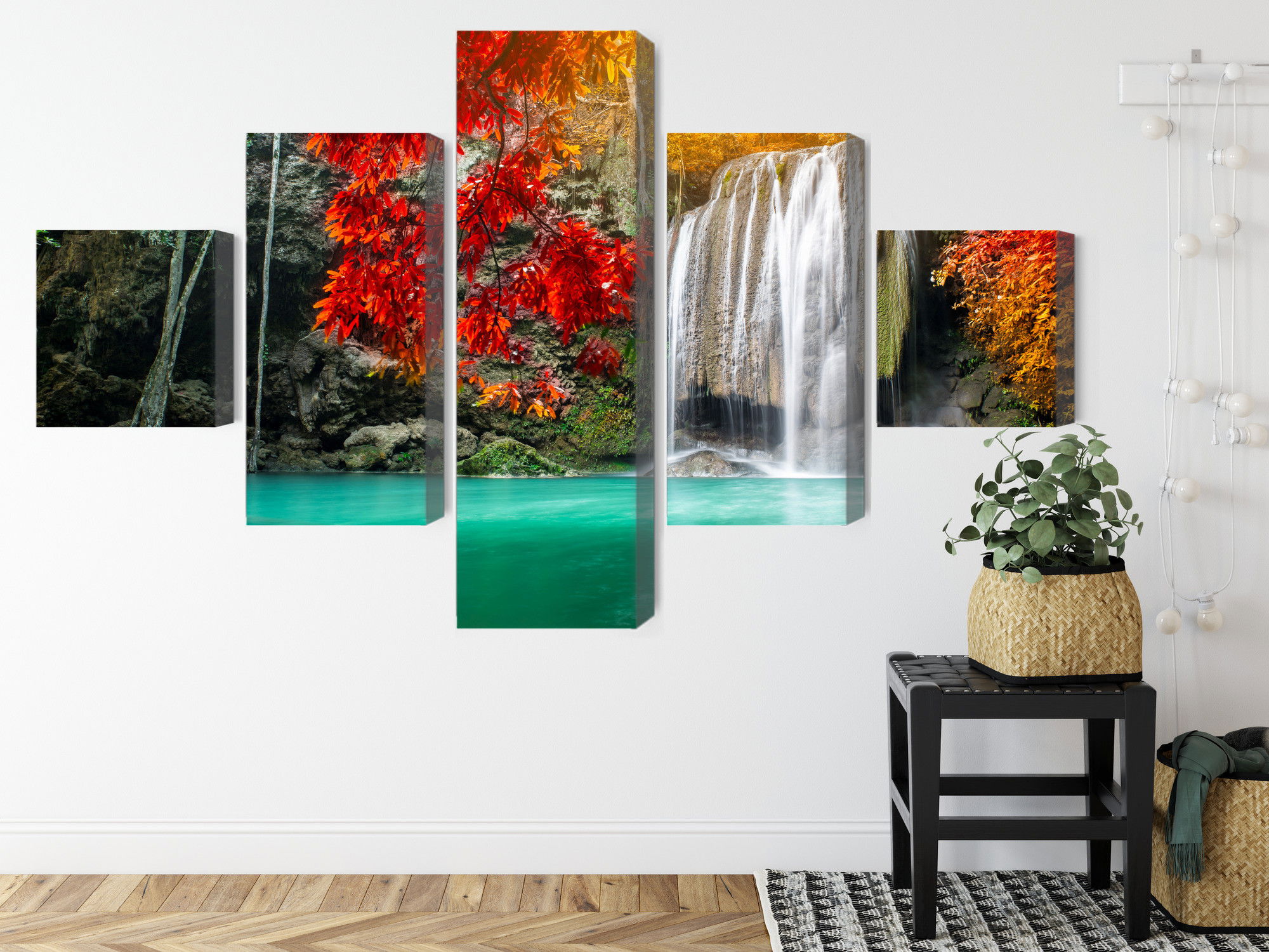 Ljuddämpande tavla – Cascade in the autumn forest för lugnare rum och mjukare akustik