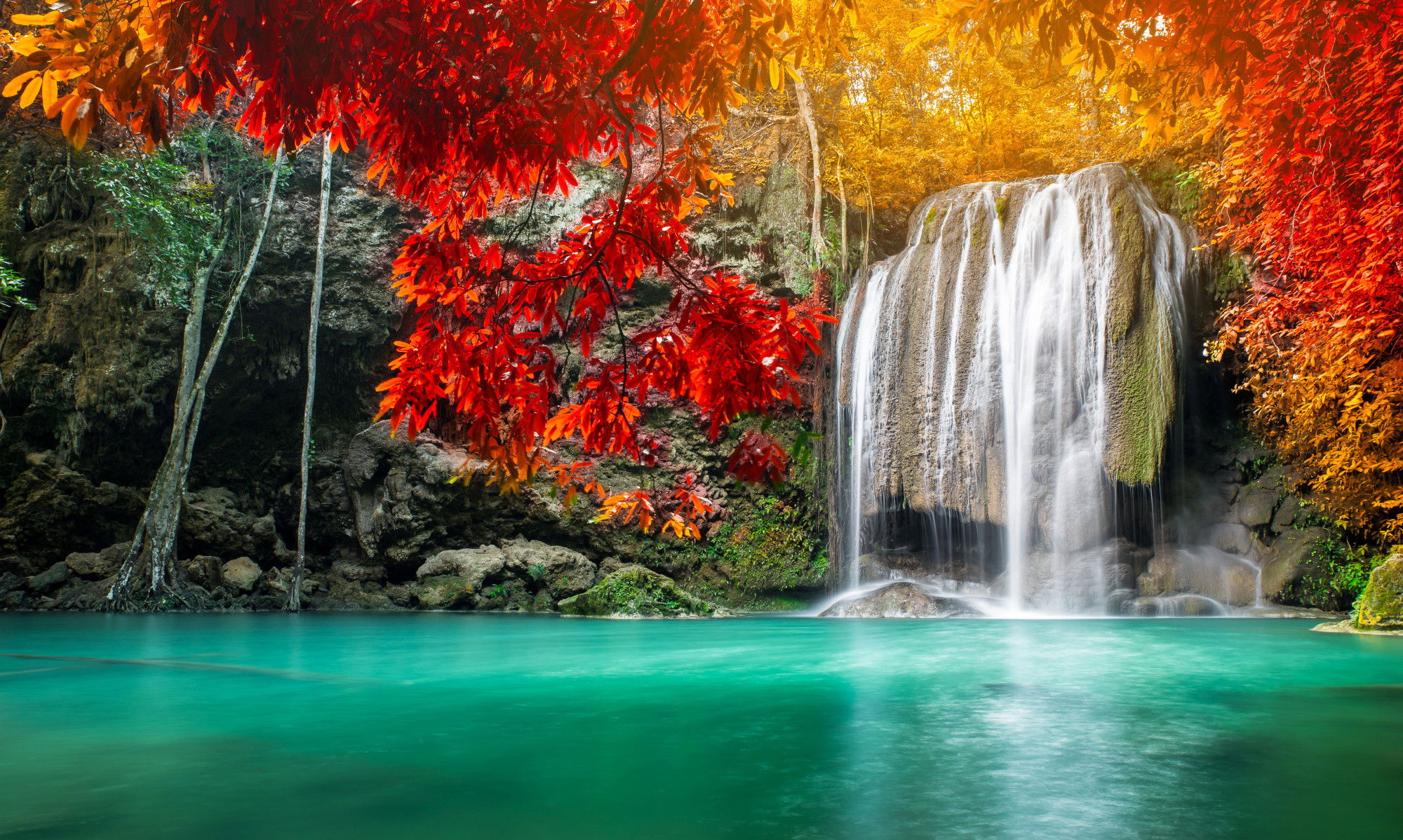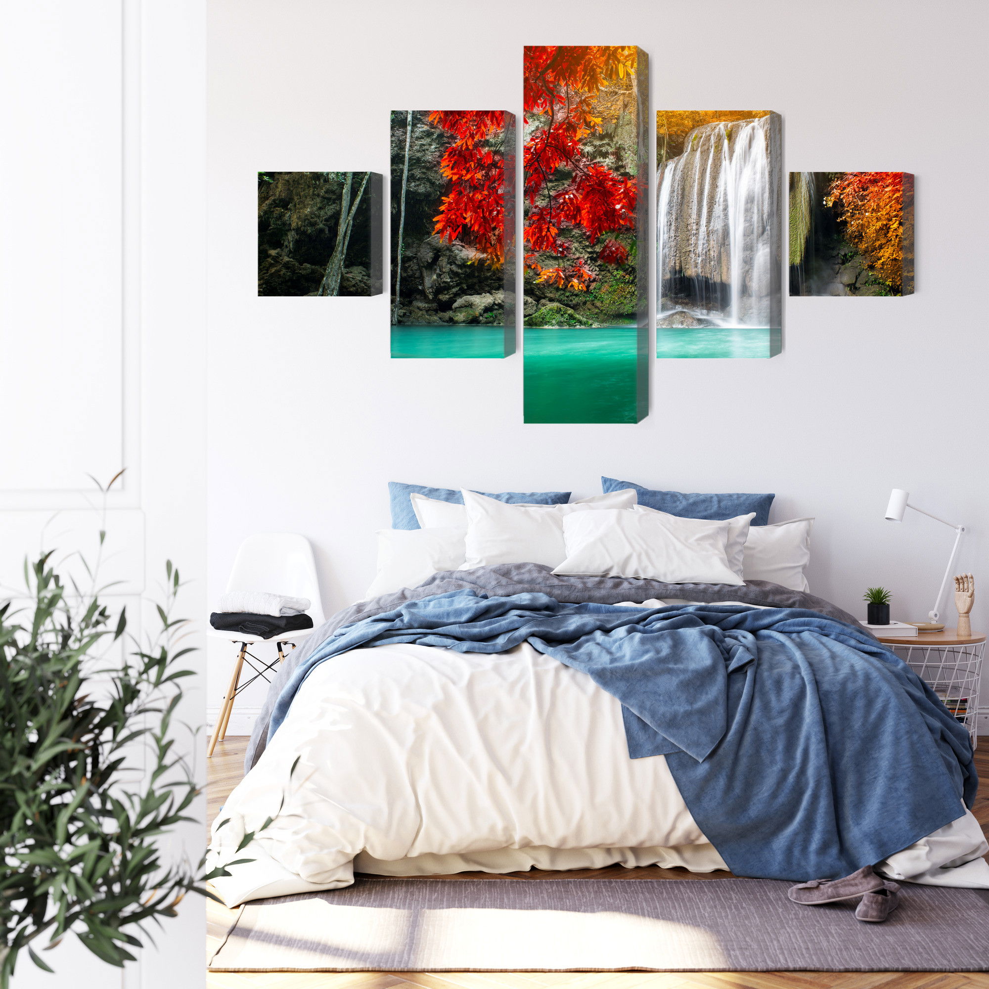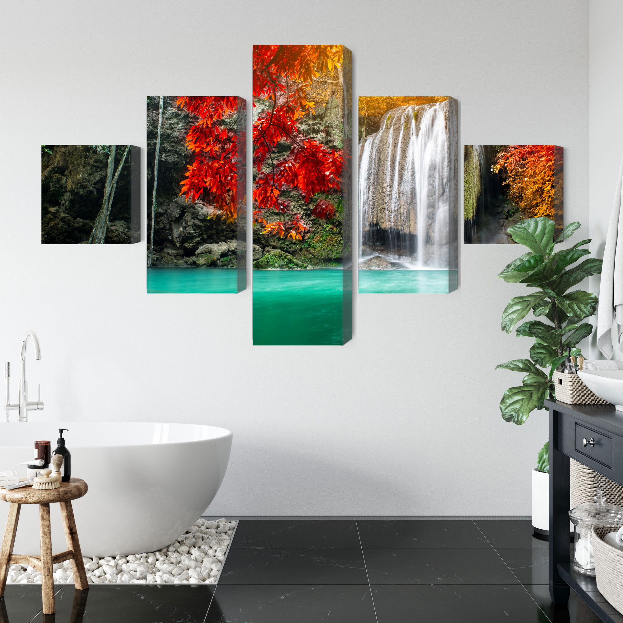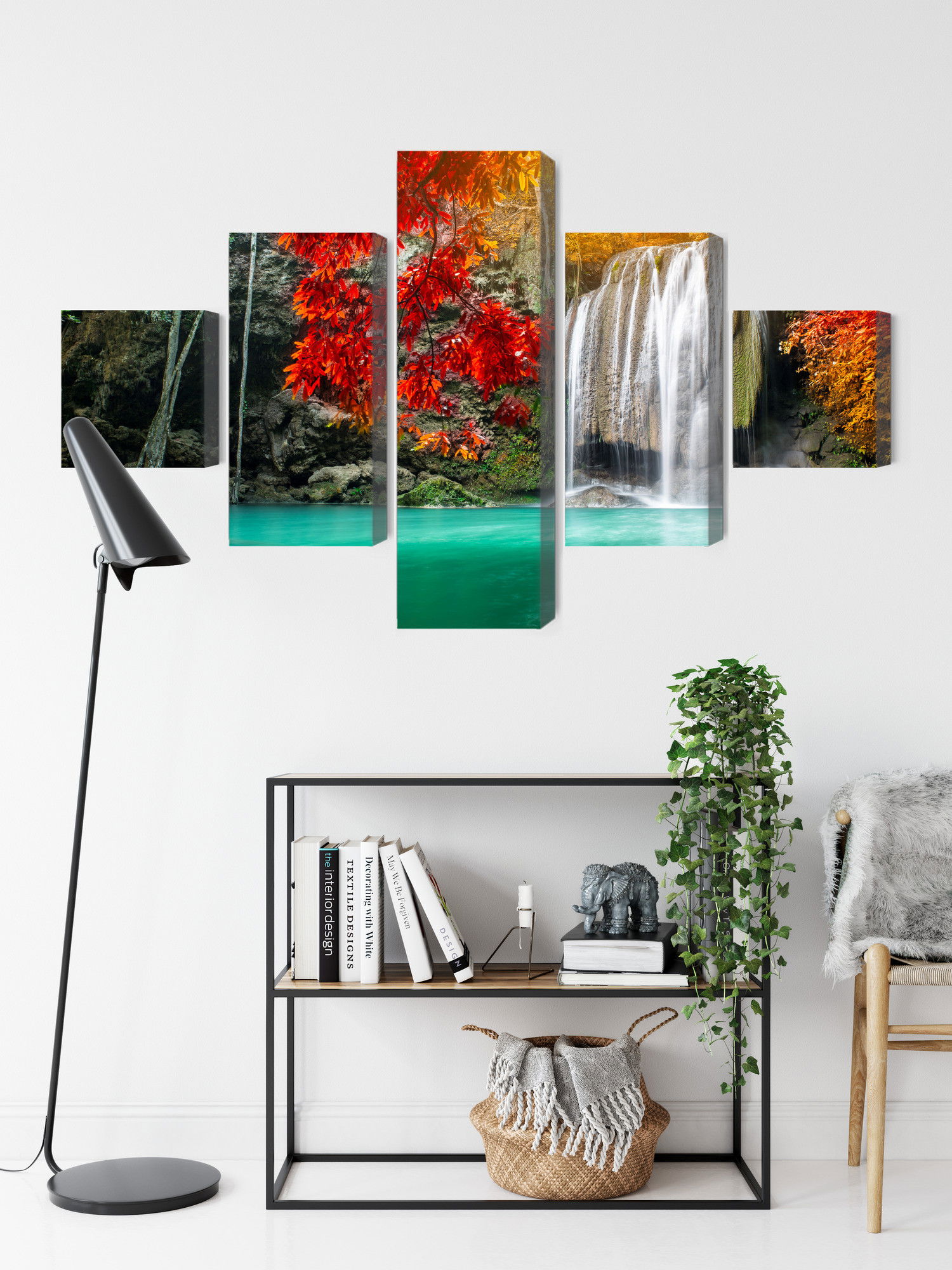 Ljuddämpande tavla – Cascade in the autumn forest för lugnare rum och mjukare akustik